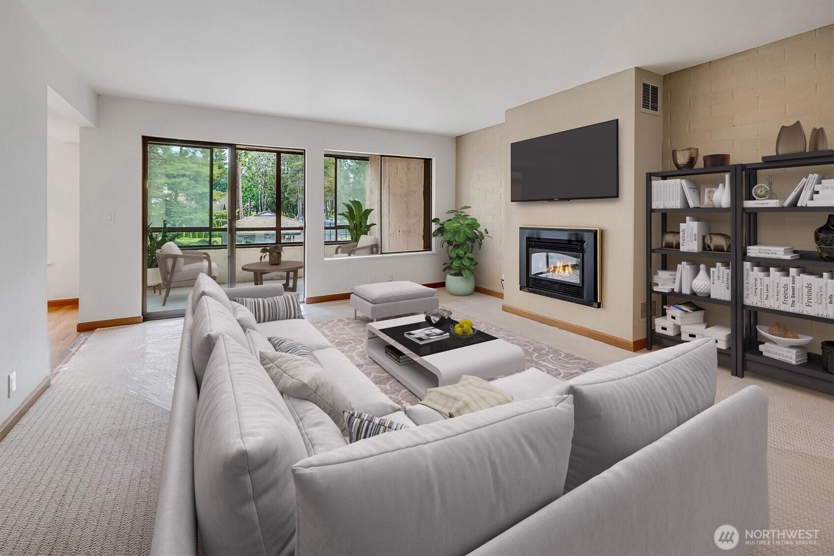 Glen Acres is a 55+ gated community. Ownership includes a golf membership, enjoy the outstanding restaurant and bar, seasonal pool, exercise room, and a workshop. This has covered parking #8, plus space 14, the closest to the elevators and doors. A no-stairs, level-entry from the South end of the building. Ramp and level entry to elevator. Good guest parking too! The enclosed deck acts as a family room, office or extension of the living room. Your gas fireplace will keep you cozy this season. If you'd like extra parking for RV, golf cart or boat, ask for info. Country Club living with easy access to downtown Seattle, Burien, SeaTac Airport, many parks, and all that nearby Puget Sound has to offer. This is one of the best options if you commute to downtown Seattle.
