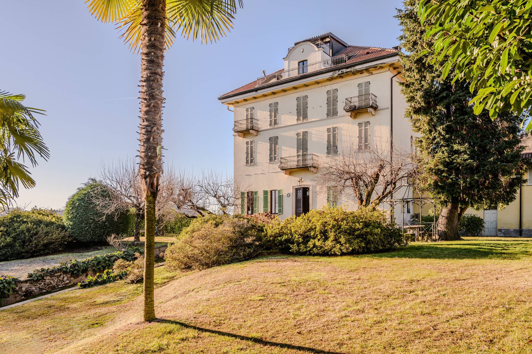 In Dagnente, just steps from the Statue of San Carlo and the center of Arona, this elegant, recently renovated apartment is located on the ground floor of a stately period villa. The entrance leads into a magnificent reception room, adorned with an original fireplace that creates a warm and elegant atmosphere. The living room leads to the exclusive panoramic terrace with unobstructed views of the Rocca di Angera, the valley, and the surrounding greenery. The living area also includes an eat-in kitchen and a bathroom finished with quality materials. The spacious and bright master bedroom offers a charming mezzanine area that can be used as a study, walk-in closet, or additional sleeping space, making the spaces extremely versatile and functional. The apartment retains precious original period details, such as restored historic doors and wooden parquet floors, complemented by modern and refined renovations. The property also includes access to the large communal garden, which surrounds the villa and contributes to a relaxing and prestigious atmosphere. A unique home, surrounded by greenery, with spectacular views and just a few minutes from all the services of Arona.