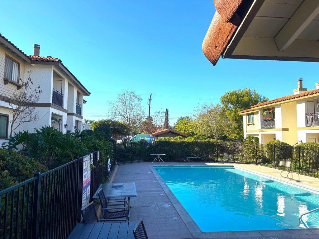 Enjoy life in this rarely available, top floor, 1 bedroom condo with fireplace and PRIVATE GARAGE in serene, parklike setting. Or, buy as a long term, high-performing rental with tenants in place. This quiet complex is just off the 8 and close to everything. The condo is shielded from street noise, and just down a winding pathway from the resort-style pool.