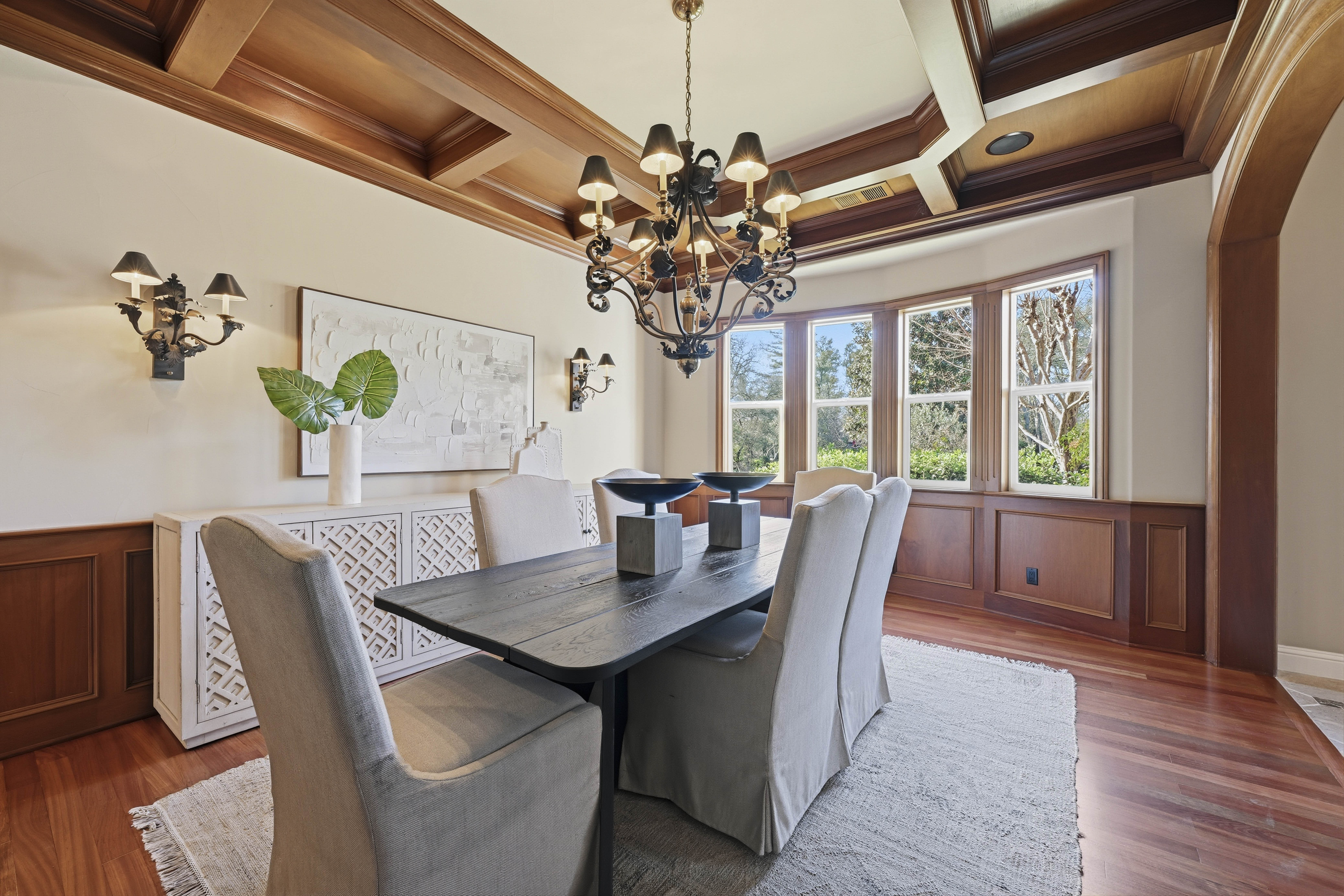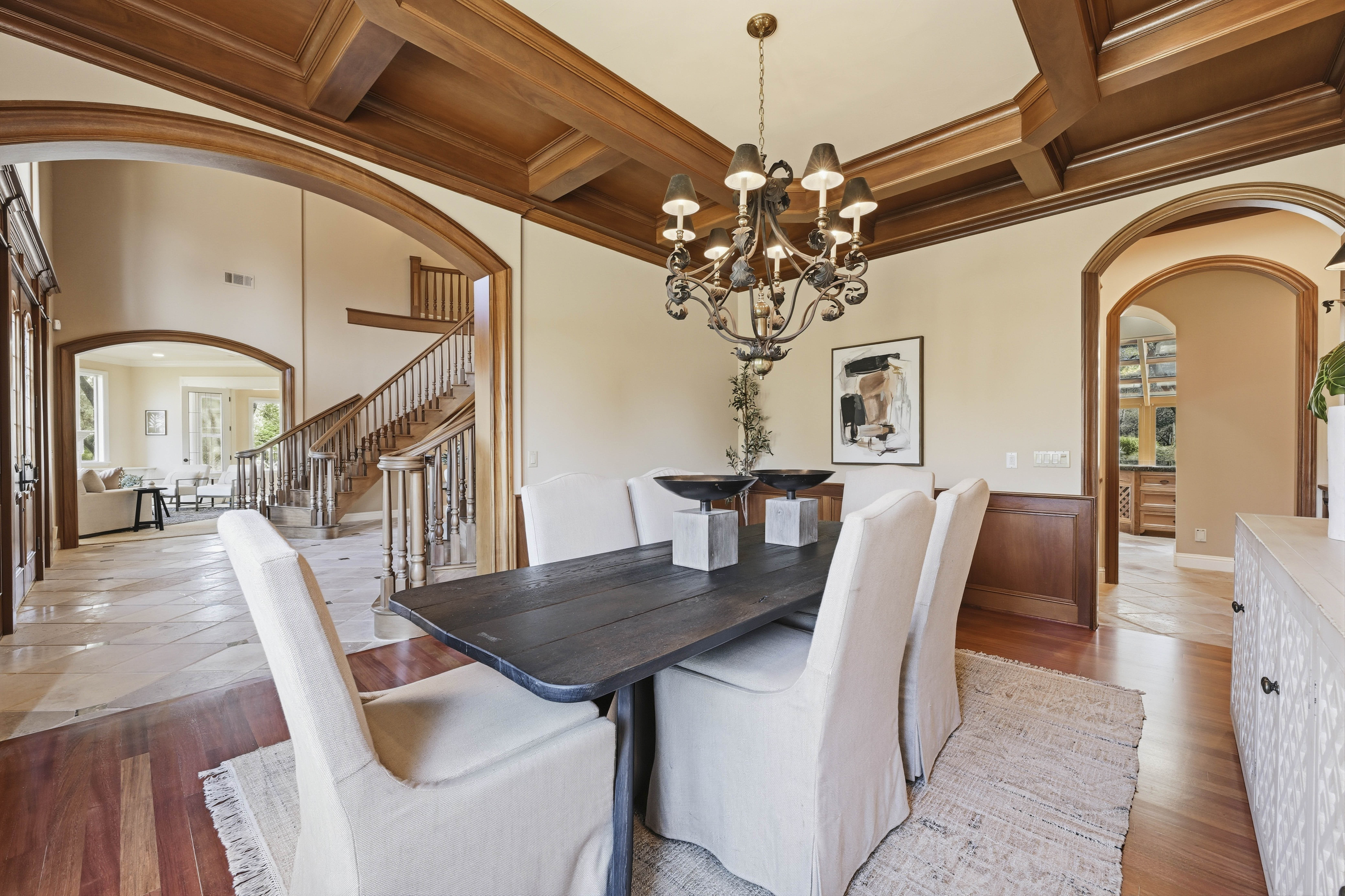 This extraordinary estate checks every box for refined living and grand entertaining. Set on a professionally landscaped 3.6-acre lot, the property boasts resort-style amenities including a sparkling pool and spa, tranquil reflection pool, cabana, sports court, putting green, rose garden, seasonal creek, and private pond. Spanning nearly 6,800 square feet, the home features a stunning glass-ceilinged dining area, one-of-a-kind walk-behind bar, state-of-the-art theater room, formal living room with piano alcove, two spacious flex rooms, and a luxurious primary suite with private balcony. Three additional en suite bedrooms provide comfort and privacy for family and guests. Car enthusiasts will appreciate the expansive 5+ car garage and abundant RV parking. This rare offering blends elegance, recreation, and serenity - truly a must-see global luxury property.