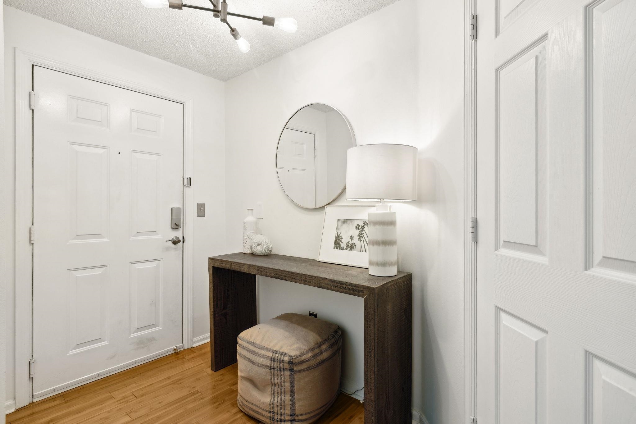 This featured gated, resort-like condo community is ideally located in the vibrant coastal community of St. Augustine. Just minutes from historic downtown St. Augustine, scenic Atlantic beaches, and the campus of Flagler College. This is a perfect location for professionals, students, faculty, and investors. Special features include a light-filled living space, modern updates, and a functional layout designed for comfort and privacy. Step inside to discover a bright, open-concept split floor plan with stylish bamboo flooring, fresh neutral paint, and abundant natural light. The renovated kitchen features granite countertops, stainless steel appliances, updated cabinetry, and a spacious breakfast bar. Sharing this space is no problem as each bedroom has a full bathroom. This layout offers exceptional comfort and flexibility and is ideal for roommates or guests. The private porch with a lake view creates an indoor-outdoor living retreat. Offering a move-in ready opportunity, this condo is being sold partially furnished. It is a great opportunity for housing Flagler college students,a vacation retreat, or an investment property. Las Palmas is a gated community, that includes resort style amenities which include tennis courts, pickleball courts, a volleyball court, fitness center, heated spa, and a community pool with a panoramic marsh view. As an added bonus, this community has a car wash and vacumn station,perfect for cleaning up after the beach. Location is key for Las Palmas as it is a five minute drive to Flagler College, just minutes from the heart of St. Augustine's vibrant uptown scene, a 10 minute drive to Vilano Beach, 15 minutes drive to St. Augustine Beach, and a 30 minute drive to Jacksonville. Enjoy the best of coastal living with easy access to local dining, shopping, galleries, and events. This is truly a unique condominium resort. Come live the Florida lifestyle in this resort-like oasis!