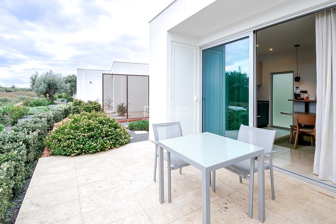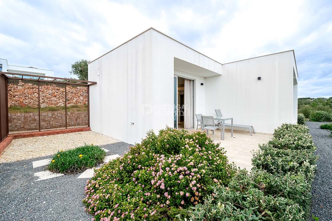 A Distinctive Algarve LifestyleSet among rolling, vine-covered hills in the heart of the Western Algarve, The Vines is an exclusive development located within an award-winning wine estate. Combining contemporary design, natural beauty, and professional management, it offers a rare opportunity to own a refined holiday retreat with strong lifestyle and rental appeal.This offering relates to one individual suite, ideal for buyers seeking privacy, tranquillity, and a truly distinctive vineyard setting.The Villa SuiteDesigned for relaxed, modern living, the one-bedroom Villa Suite features an open-plan kitchen, dining, and living area filled with natural light. Floor-to-ceiling glass doors open onto a private terrace and garden, creating a seamless indoor–outdoor connection.From the terrace, enjoy peaceful views across the vineyards and surrounding countryside - the perfect backdrop for unwinding with a glass of estate wine.The interiors reflect the natural environment, with soft greens inspired by the vineyards and calming blues echoing the Algarve sky and nearby coastline. Clean architectural lines are paired with natural textures for an elegant, understated finish.Areas & Layout