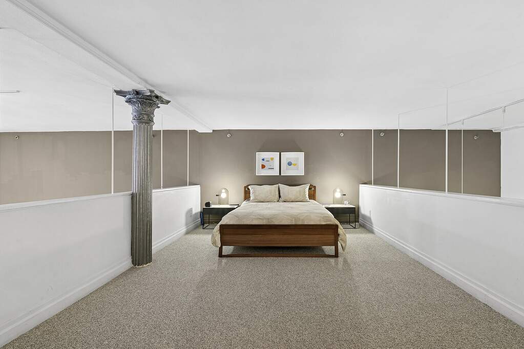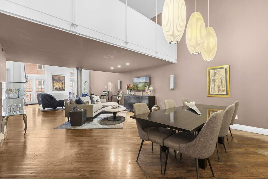 Residence 2D at 121 West 20th Dztreet is a striking two-bedroom, two-bathroom duplex loft that captures the essence of classic Chelsea living. Set within a storied pre-war condominium, this home pairs dramatic volume with refined finishes, offering an impressive sense of scale rarely found in today's market. With ceilings rising to approximately 15 feet and beautifully preserved architectural elements throughout, the residence feels both grand and deeply inviting. The main level opens into a spectacular great room anchored by oversized north-facing windows that bathe the space in soft, consistent light throughout the day. French doors lead to a charming Juliet balcony, subtly extending the living space outdoors. Designed with entertaining in mind, the expansive living and dining area easily accommodates gatherings large and small, while original cast-iron columns, a gas fireplace, and rich hardwood floors lend texture, warmth, and unmistakable loft character. The kitchen is thoughtfully proportioned and well-equipped, featuring extensive custom cabinetry, granite countertops, stainless-steel appliances, and excellent storage. A discreetly placed washer and dryer enhance everyday convenience without disrupting the clean aesthetic of the space. On the lower level, a spacious secondary bedroom offers a quiet retreat with two generous closets and immediate access to a full bathroom that also functions seamlessly as a guest powder room. Above, the mezzanine level is dedicated entirely to the primary suite-a private, loft-like haven overlooking the living space below. There is ample room for a seating area or home office, complemented by an oversized, custom walk-in closet. The en-suite bathroom is finished in marble and outfitted with a double vanity, a soaking tub, and a separate rain shower, creating a spa-like atmosphere at home. Additional features include custom built-ins, recessed lighting, through-the-wall air conditioning, and the authentic details that define true downtown loft living. Built in 1875 and converted to condominiums in 1991, 121 West 20th Street is a boutique, five-story pre-war building offering part-time doorman/security service, a full-time superintendent, a beautifully appointed common roof deck, and notably low monthly charges. Located in the heart of Chelsea, moments from Flatiron, Union Square, and the West Village, this home is surrounded by acclaimed restaurants, galleries, cultural landmarks, and green spaces such as the High Line and Madison Square Park. Multiple subway lines nearby provide effortless access to the rest of Manhattan. This is an exceptional opportunity to own a sophisticated and character-rich loft in one of the city's most dynamic neighborhoods.
