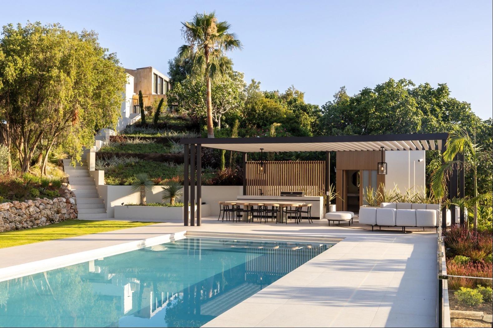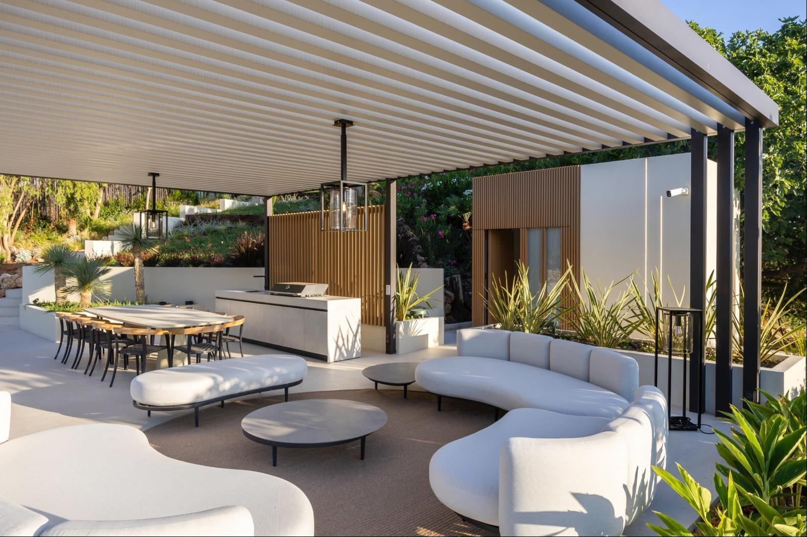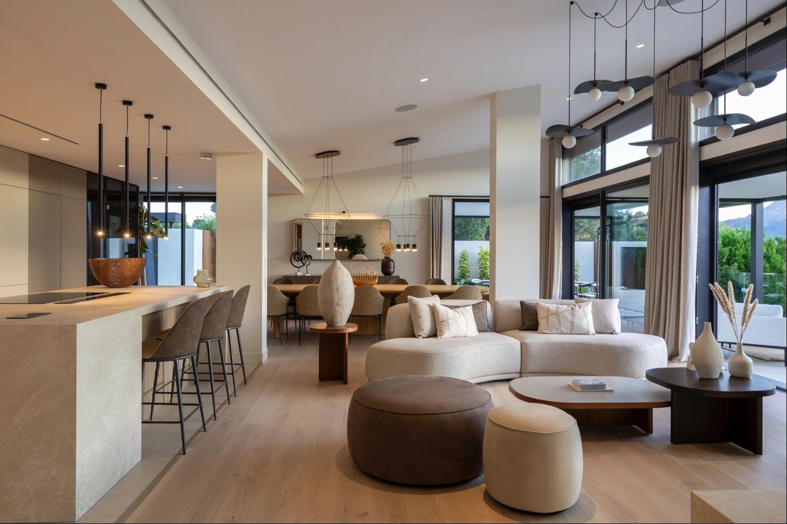 Set within a secure, 24-hour guarded estate, the villa enjoys open views over the surrounding countryside and natural landscape, offering total privacy, tranquility, and a refined lifestyle. The architecture is contemporary and elegant, with clean lines, generous volumes, and large windows designed to maximise natural light and connection with the outdoors. High-end materials, premium finishes, and meticulous construction standards define every space.