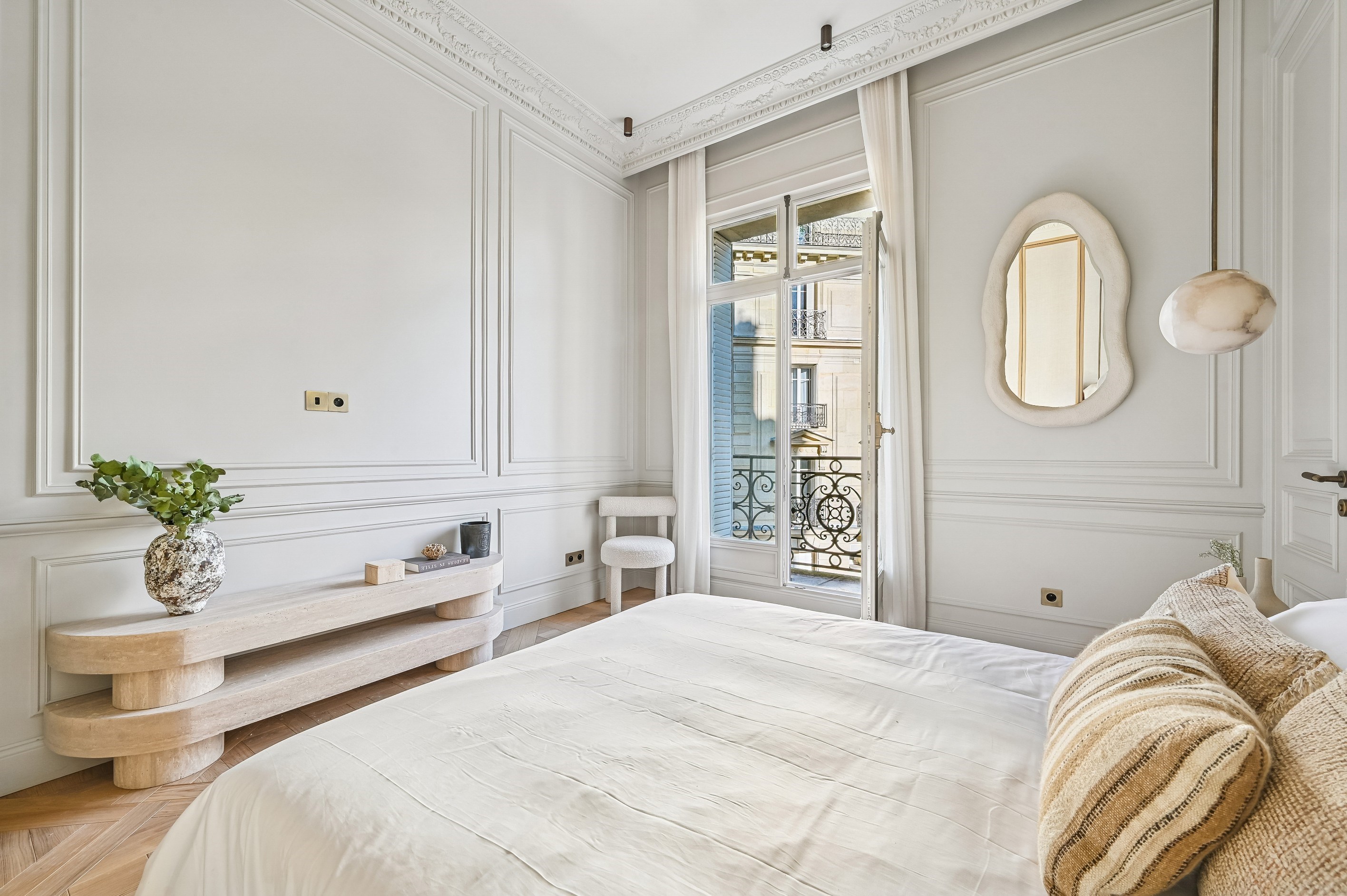 CHAILLOT – GOLDEN TRIANGLE :Located in the prestigious Chaillot district, bordering the iconic Golden Triangle and a short stroll from the Musée Galliera, this exceptional apartment offers a rare opportunity to experience Paris at its most refined. Situated on the second floor of a beautifully preserved 19th-century hôtel particulier with elevator access, the property has undergone a complete high-end renovation and is delivered fully turnkey, ready to move in and enjoy. Perfectly positioned near top-tier transport links, designer boutiques, and cultural landmarks, this residence combines convenience with exclusivity. The apartment is flooded with natural light thanks to ceiling heights surpassing 3.20 meters, creating a luminous, spacious, and welcoming environment that feels both grand and intimate. Designed for sophisticated living and entertaining, the expansive reception area seamlessly integrates a stylish living room and formal dining space, centered around a striking Taj Mahal marble kitchen that serves as both a functional workspace and a design statement. The two sumptuous bedroom suites each feature elegant granite shower rooms and private bathrooms, ensuring privacy, comfort, and a hotel-like experience at home.Classic Parisian details including Versailles parquet floors, intricate moldings, and white marble fireplaces, add warmth, character, and timeless elegance, making this apartment feel both historic and impeccably modern. One of the property’s most captivating features is its full-length balcony overlooking the lush gardens of surrounding private mansions. Imagine starting each morning here, sipping a freshly brewed coffee while reading the headlines in the gentle glow of early sunlight, surrounded by quiet beauty—an everyday luxury reserved for a select few. The residence is also equipped with premium security features, including a secure intercom system, reinforced door, and climate control, ensuring both comfort and peace of mind. In pristine condition and bathed in exceptional light, this apartment represents a rare blend of heritage, luxury, and contemporary lifestyle,an extraordinary Parisian address for discerning buyers seeking elegance, prestige, and effortless living.