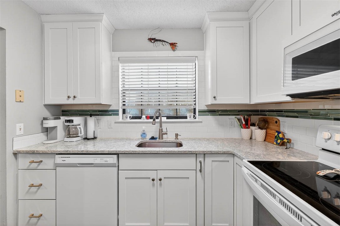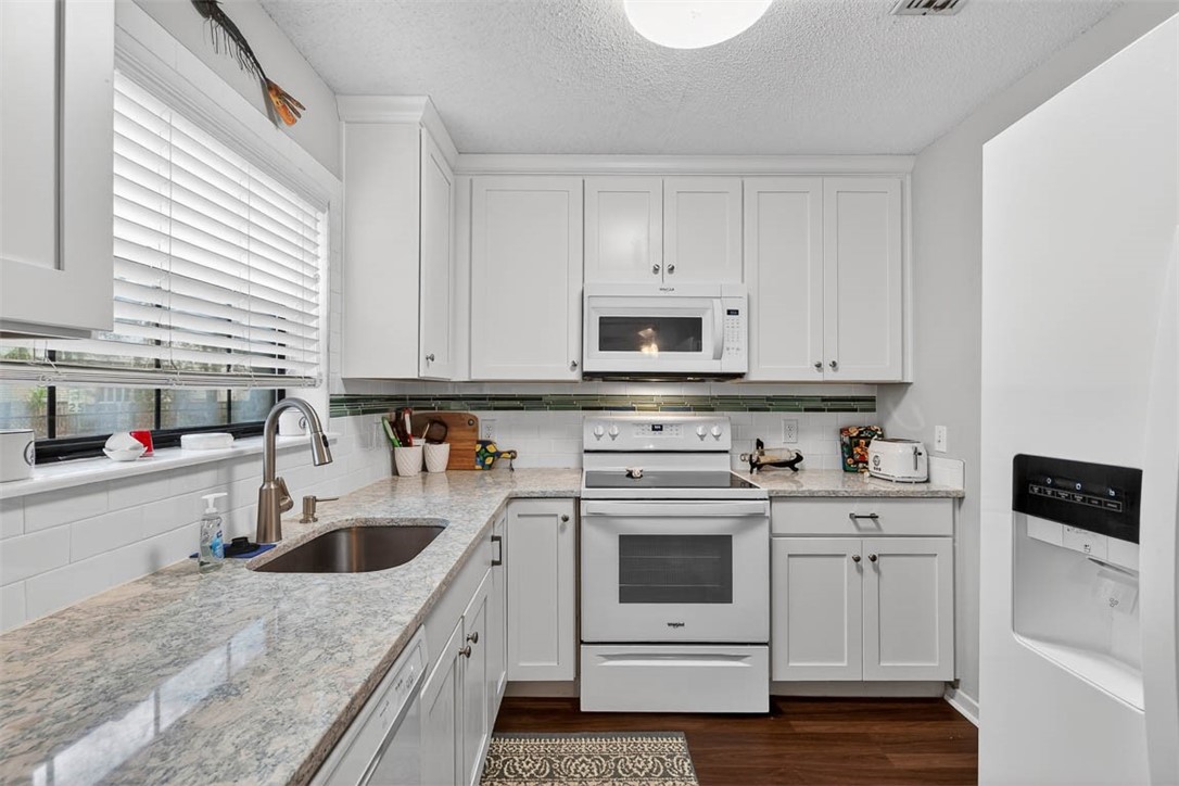 Welcome to your island getaway! Nestled on the desirable south end of St. Simons Island, this inviting Brockinton South condo is perfectly situated off idyllic Brockinton Drive, where majestic oak trees line the neighborhood sidewalks and create a classic coastal Georgia setting. Step inside to discover stylish new luxury vinyl plank flooring throughout the entire home - no carpeting anywhere - offering both durability and a clean, modern feel. The thoughtfully designed floor plan includes a separate dining space, perfect for gathering with family and friends. The updated kitchen features quartz countertops, Shaker-style cabinetry, updated appliances, and a classic subway tile backsplash, creating a bright and functional space for everyday living or entertaining. A convenient separate laundry and pantry area adds extra storage and practicality. The primary bedroom is located on the main level, providing easy access and privacy. It includes a walk-in closet and an updated ensuite bath with a beautifully tiled walk-in shower. Upstairs, you'll find two spacious guest bedrooms that share a full adjoining bath with a linen closet, providing comfortable accommodations for family or visitors. Additional attic storage offers plenty of space for seasonal items. Outside, spend mornings with coffee, evenings grilling, or just relaxing on the spacious back deck. And enjoy the convenience of two assigned parking spaces and a private exterior storage unit - perfect for bikes, beach gear, or island toys. Brockinton South is one of the island's most popular communities thanks to its ideal location close to shopping, restaurants, and everyday amenities. Whether you're heading to the beach, the Village, the Pier, or the Lighthouse, everything is just a short drive away, and the south-end location provides easy access on and off the island. Whether you're searching for a primary residence, second home, or investment property, this charming island condo offers the perfect blend of comfort, style, and coastal convenience in one of St. Simons Island's most desirable settings.