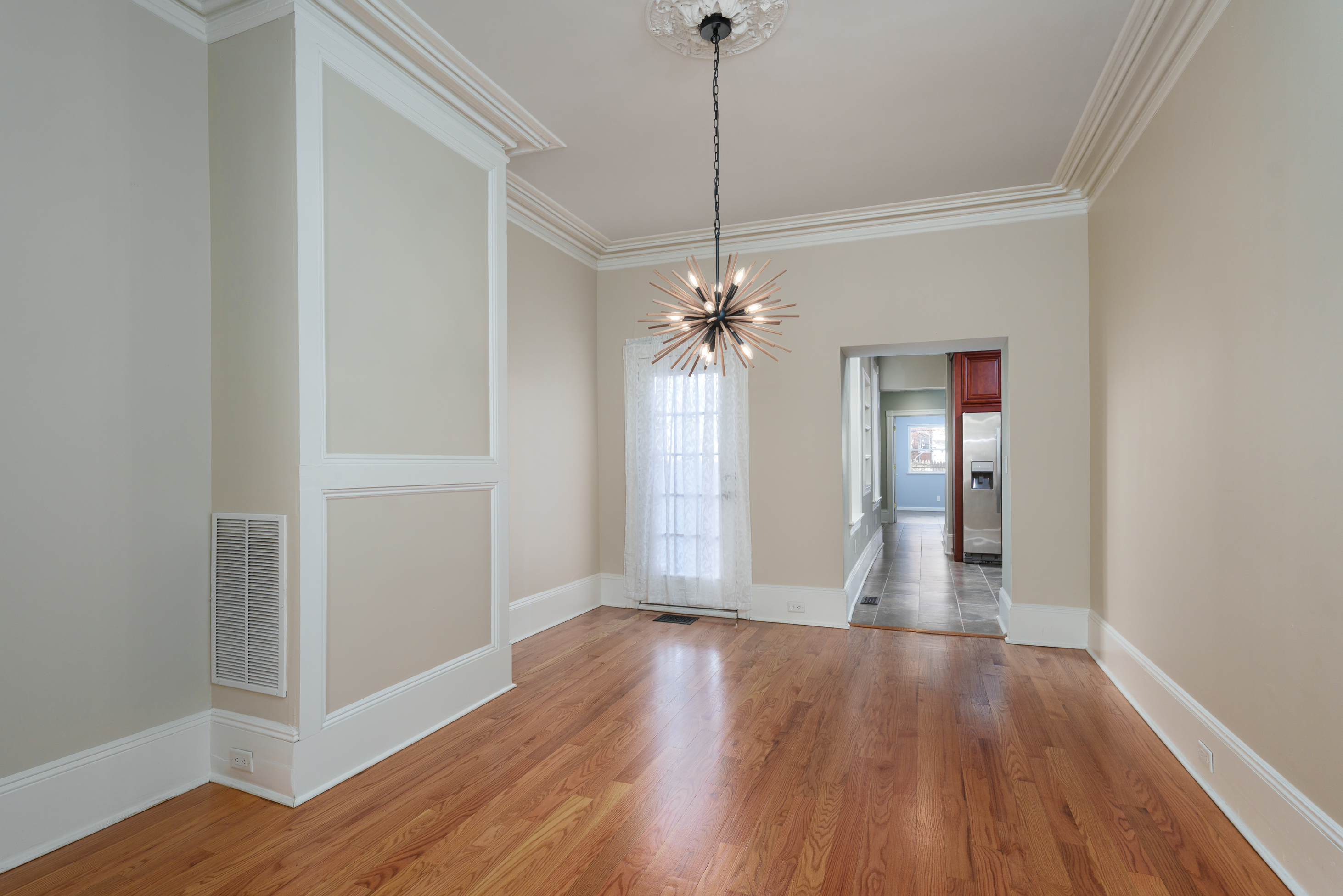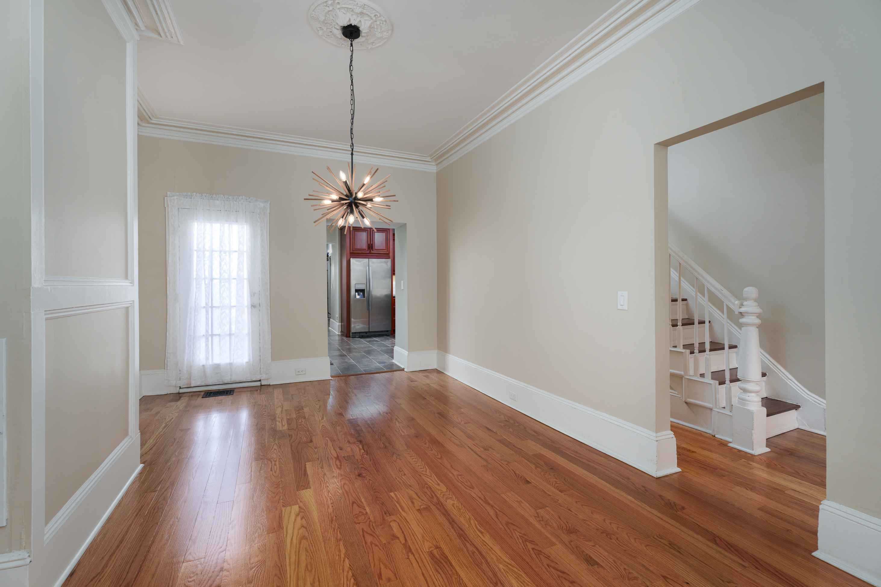 What began as a traditional two-bedroom townhouse has been reinvented into a gracious four-bedroom, 2.5 bath showpiece in historic Mill Hill, expertly reconfigured while preserving the soul of its 19th-century roots. The pumpkin pine floors, the tall ceilings, and period craftsmanship all remain, but are now paired with a layout and style that feels unmistakably modern. The home opens into classic living and dining rooms, both sporting gorgeous woodwork, ceiling medallions, and eye-catching lighting. Move deeper in, and the vibe shifts to a spacious cherry kitchen, a half bath, a laundry room, and a den that spills out onto a private patio. That patio doubles as a rare off-street parking option, a true find in this historic neighborhood. The second floor offers a two-room suite, a full bath, and a generous primary bedroom up front, framed by tree-top views of Mercer Street. The third floor features yet a second option for use as a primary bedroom with an all new bathroom, and the fourth bedroom which could flex as a home office or whatever life demands. Natural light pours through every level through oversized windows, highlighting the blend of old-world charm and crisp, modern updates. The result is a home that feels refined yet effortlessly livable, rooted in history but undeniably current. And with the State Capitol buildings and Trenton Transit Center just blocks away, it’s as connected as it is beautiful.