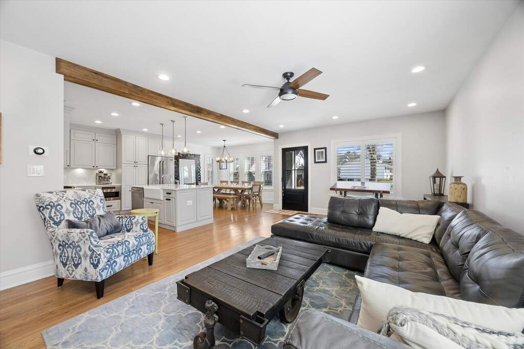 Stunningly updated 4-bedroom, 4-bathroom home featuring designer-inspired finishes, an open-concept layout, and modern farmhouse style. Originally rebuilt by the previous owners in 2014, and then thoughtfully remodeled again in2020, the updates created a warm, stylish, and highly functional living space. The kitchen was opened and expanded with warm-toned cabinetry, quartz countertops, a marble backsplash, and updated appliances. Solid oak hardwood floors run throughout the main/upper levels and is complemented by new custom plantation shutters. A modern front door welcomes you into the inviting living room featuring a newly added fireplace (2020) and custom built-ins. The main level also includes a versatile fourth bedroom with a full bath, along with a thoughtfully designed mudroom with custom built-ins. Upstairs you'll find three spacious bedrooms, including a beautifully reimagined primary suite with dual custom closets and an expanded spa-like bath featuring heated floors, porcelain flooring and shower walls, quartz countertops, new cabinetry, and updated plumbing fixtures and lighting. The basement was also fully remodeled and now includes a full bathroom and laundry room, providing additional functional living space. Mechanical and exterior improvements include a new A/C (2020), zoned HVAC system (2021), Trex deck (2020), Trex front porch (2022), new fence (2021), sump pump (2022), updated backyard grading and drainage, and Nest thermostats. Located on a quiet street in a charming pocket of North Downers Grove, this home is within the highly sought-after Whittier Elementary and Downers Grove North High School districts.