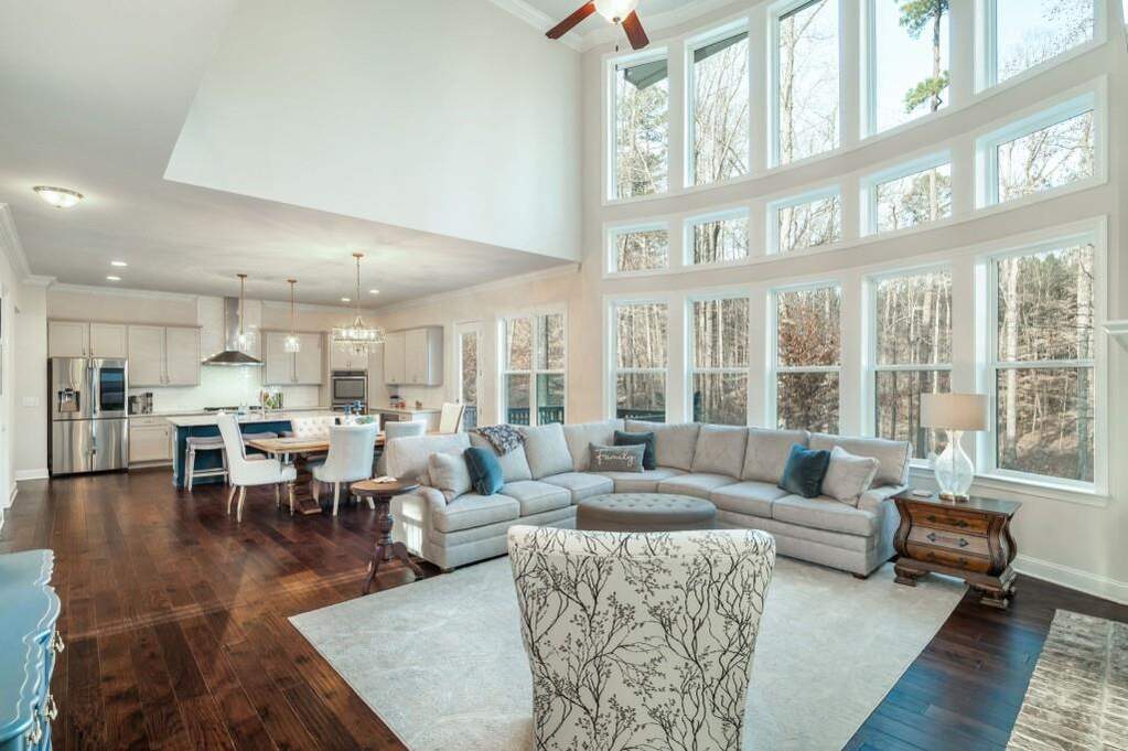 A welcoming front porch, timeless curb appeal, and a resort-style backyard set the stage for this exceptional six-bedroom, five-full-bath home in Milton, located within a highly sought-after award-winning school district. Freshly painted on the exterior in 2024 and featuring a brand-new roof installed in Summer 2025, this home blends refined design with thoughtful updates for lasting peace of mind. The foyer opens to a private office on one side and a flexible dining or sitting room on the other, with a butler's pantry connecting seamlessly to the heart of the home. The great room is a true showstopper, highlighted by soaring two-story windows, a dramatic stone fireplace flanked by custom cabinetry and floating shelves, and breathtaking views of the private backyard and natural surroundings. This impressive space flows effortlessly into the kitchen and central gathering area, making it perfect for both everyday living and entertaining. The chef's kitchen features an oversized iron-accented island with stone countertops and seating, stainless steel appliances, a spacious walk-in pantry, and access to the deck just off the kitchen. A mudroom with convenient side entry from the driveway adds everyday functionality. A guest bedroom and full bath complete the main level. Upstairs, an open catwalk hallway overlooks the great room below and leads to the impressive primary suite featuring a tray ceiling, sitting area, and abundant natural light. The spa-like primary bath includes dual vanities, an oversized shower, and a soaking tub. Three additional bedrooms complete the upper level, including one ensuite bedroom and two bedrooms connected by a Jack-and-Jill bath. The newly finished terrace level expands the home's living space with an entertainer's dream layout, including a large recreation area, an additional bedroom, a full bath, and a second laundry area for ultimate convenience. Step outside to your own private backyard oasis featuring a pool and spa, an outdoor fire pit, and a bar-and-grill area, ideal for year-round enjoyment and entertaining. Northpoint Forest shares amenities with nearby Blue Valley, which include a swimming pool, lighted tennis courts, a covered cabana, a playground, a lake, and green space. All just minutes from Crabapple, Downtown Alpharetta, and Avalon!