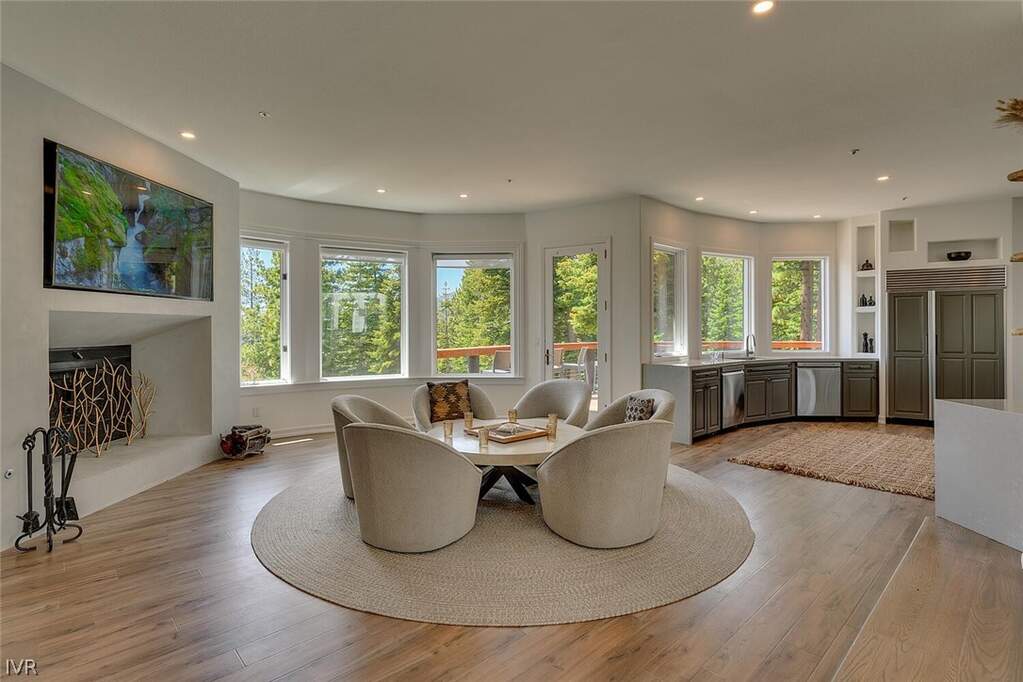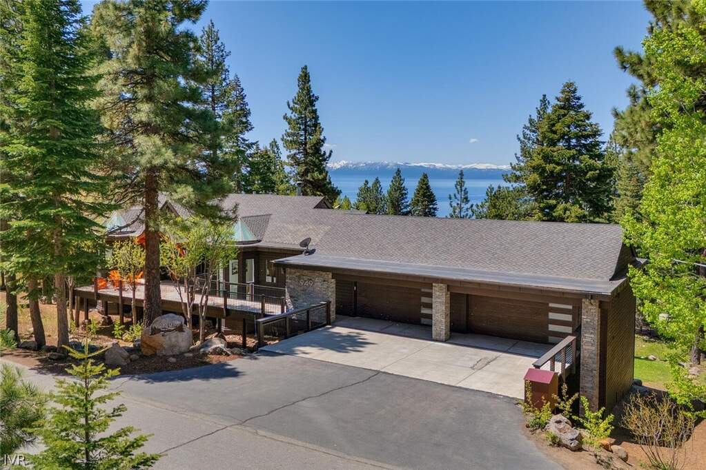 With stunning lake views as your backdrop, this south-facing retreat blends bold design with livable function on Incline's coveted Eastern Slope. Set on a private, gently sloping and functional 1-acre lot, the home features 7 en suite bedrooms, 3 half baths, and equipped caretaker's quarters with separate entry. One primary suite is on the main level and both primary suites offer spa-like comfort-one with its own sauna. A chef's kitchen opens to light and airy dining and living spaces, complemented by a wine room, gym, bonus room, and generous storage. Creative artisan touches elevate each space. Step onto the sun-soaked deck and into the hot tub for evenings under the stars. A level driveway leads to an oversized 4-car garage. This fully furnished and outfitted turn-key estate is made for mountain living at its best-just minutes from golf, ski resorts, and private beaches.