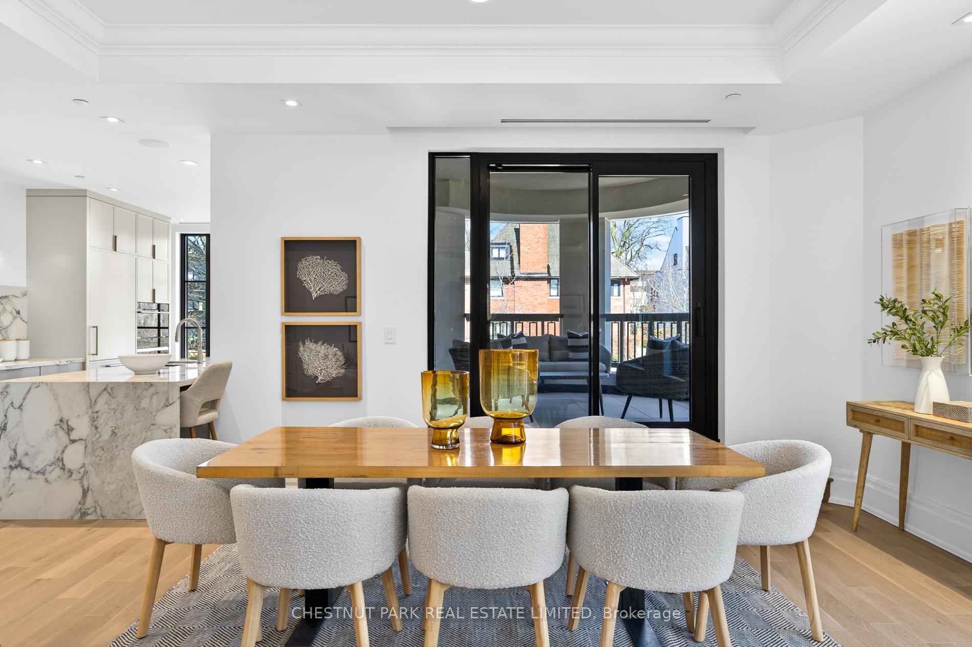 A rare opportunity within Maison 77 Clarendon, an intimate collection of just fifteen bespoke residences in the heart of prestigious South Hill. This five storey architectural jewel, positioned at the corner of Russell Hill Road and Clarendon Avenue, offers boutique living defined by privacy, elegance, and enduring design. This beautifully appointed two bedroom, two bathroom residence features soaring ceilings and dramatic floor to ceiling windows. The open concept kitchen and great room extend seamlessly to a private terrace, creating a refined setting for indoor outdoor living and gracious entertaining. Interiors curated by the acclaimed design firm Powell and Bonnell reflect a contemporary interpretation of classic style, blending timeless detailing with modern sophistication. Residents enjoy the comfort of 24 hour concierge service and valet parking, delivering a white glove lifestyle rarely found in boutique buildings of this scale. One parking space and two lockers are included for exceptional convenience. Set moments from ravine trails, top tier schools, and the shops and dining of St. Clair and Yonge, this residence offers a distinguished address and an unparalleled opportunity to secure a brand new home in one of Toronto's most coveted enclaves. See Schedule B for full list of inclusions.