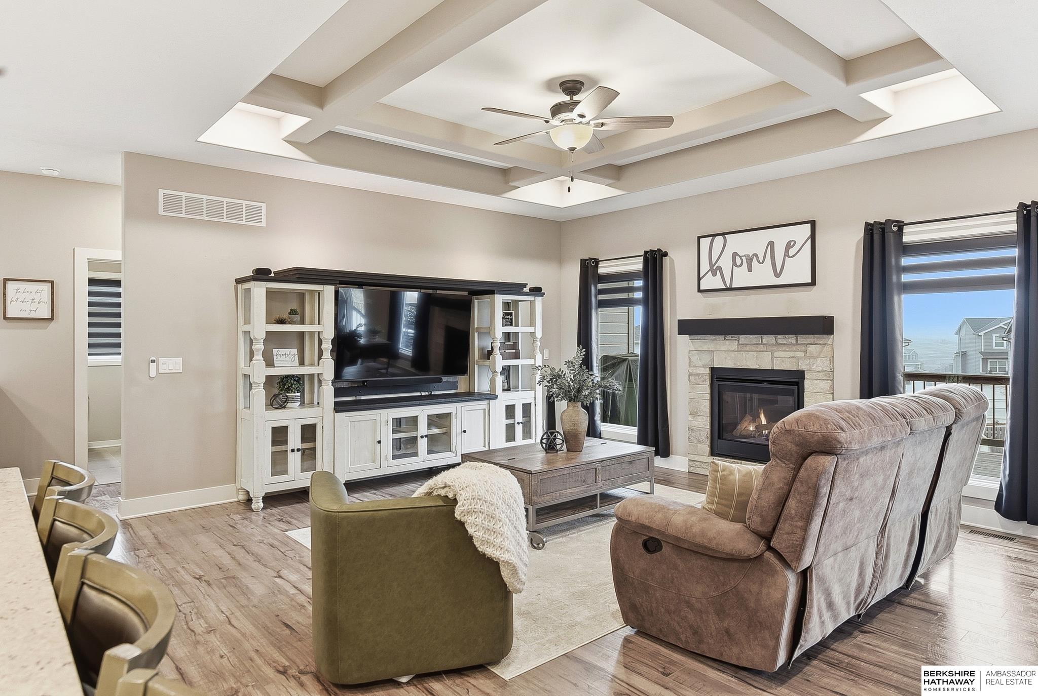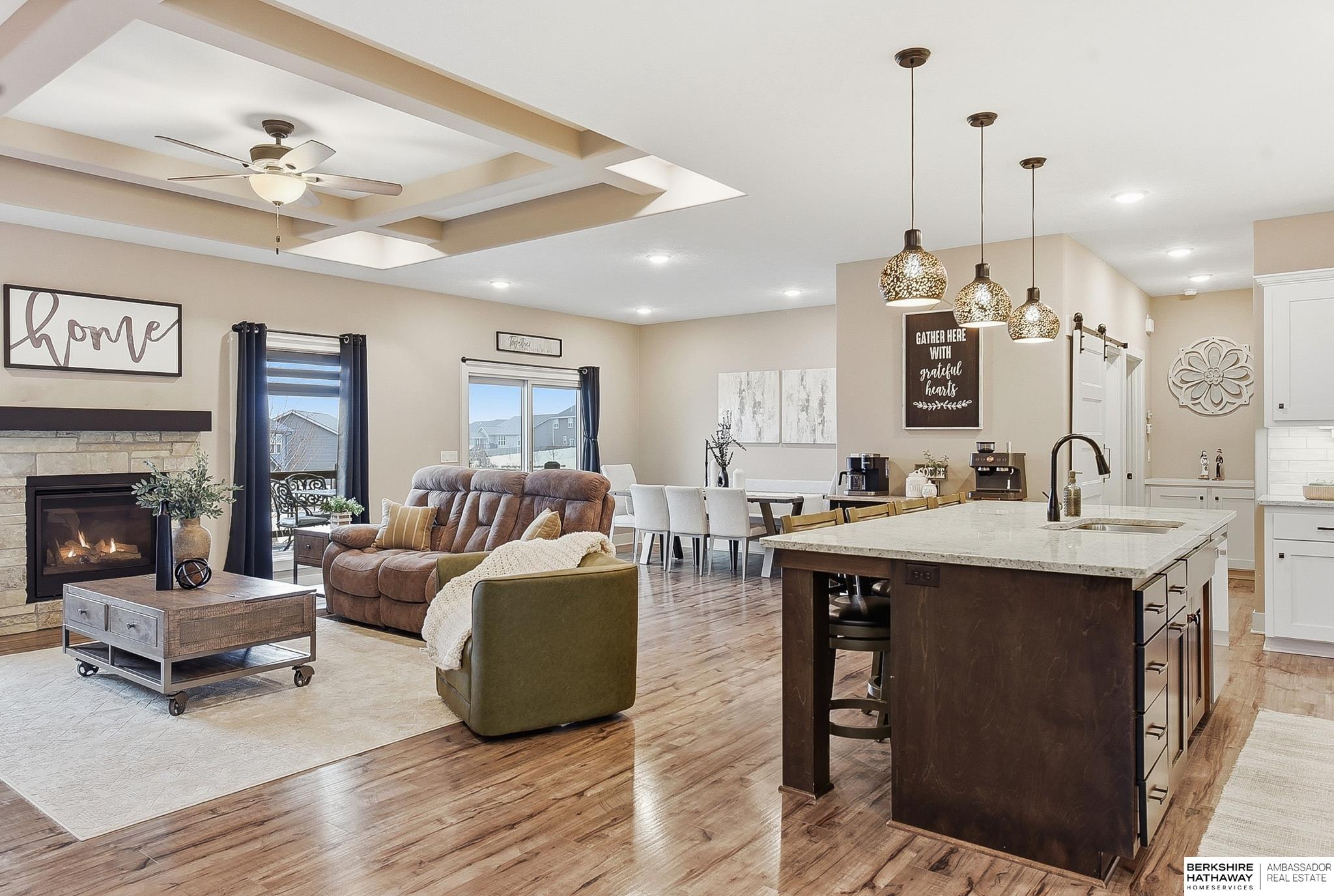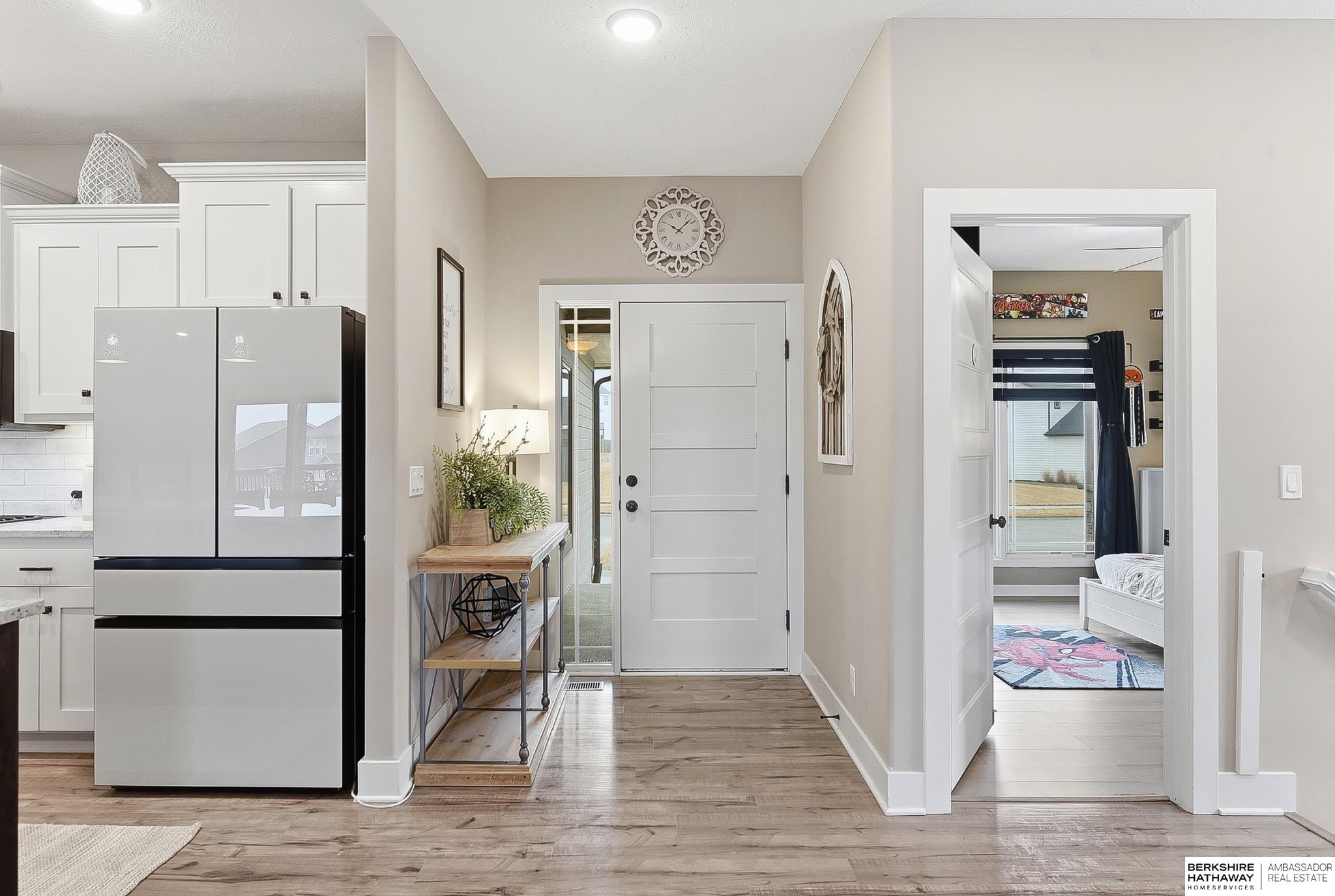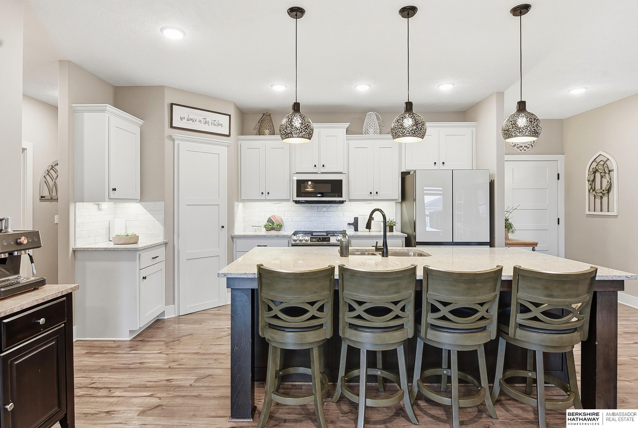 Welcome to this gorgeous home where thoughtful design & outdoor living come together perfectly. This spacious walkout ranch offers 5 bedrooms, 3 bathrooms, providing plenty of room for family, guests, & a home office. The home features a rare 4-car heated garage w/ built-in storage, perfect for vehicles, hobbies, & additional workspace. Inside, the open layout offers comfortable living spaces with tons of natural light. Home includes two wash/dryers, one on the main level & one in the basement. The extended back deck, a gas line for grilling, & the extended patio below creates an incredible space for entertaining, relaxing, & enjoying evenings. 240 volt included to add your hot tub. This subdivision offers a community of active lifestyle, including a splash park, neighborhood pool, & scenic trails that connect to the NRD recreation area. The home is also within the highly regarded Bennington School District, known for strong academics & outstanding extracurricular programs.