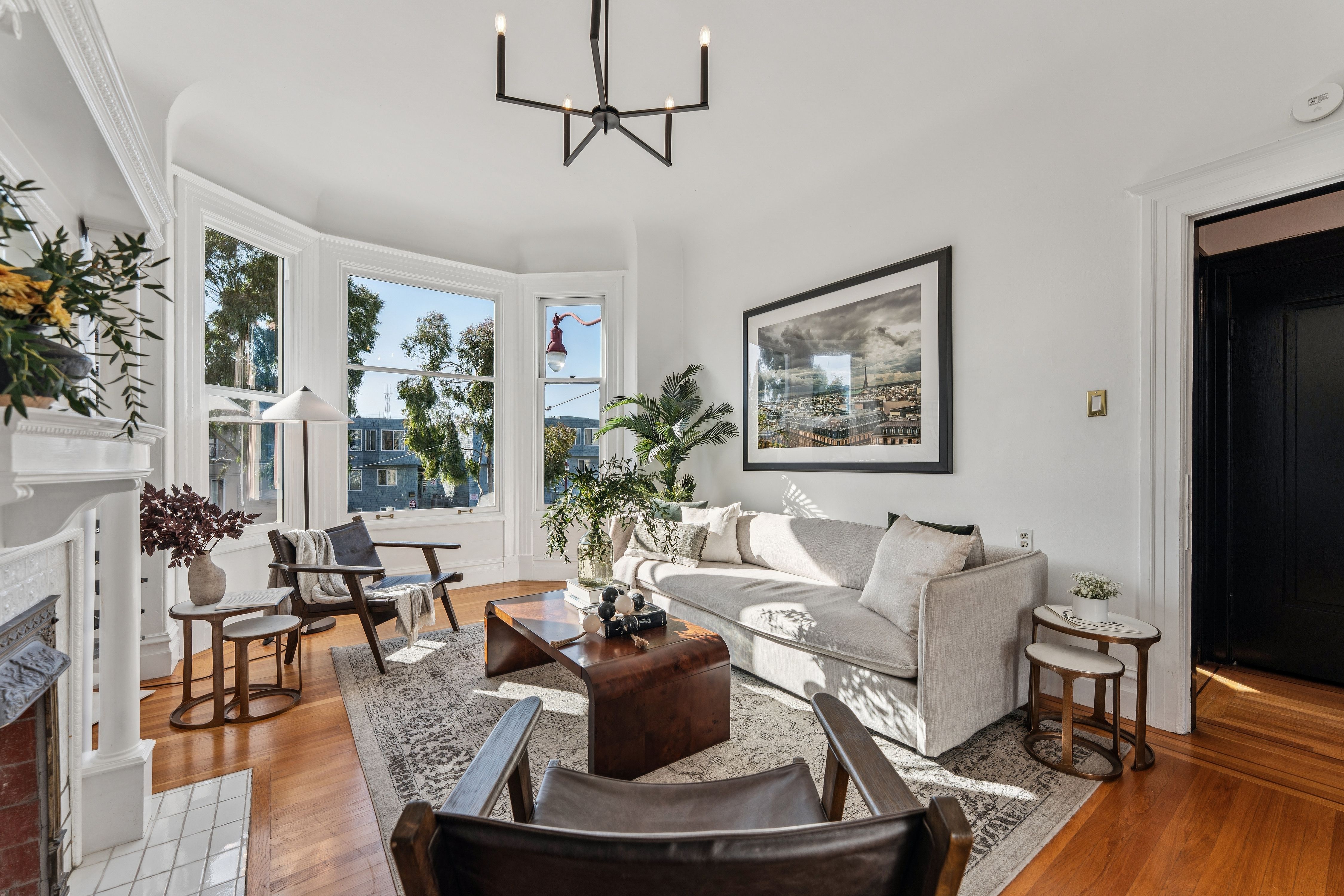 A sophisticated top-floor Edwardian residence where timeless architecture meets refined modern living. Soaring ceilings, rich hardwood floors, and beautifully preserved period moldings and wainscotting create an atmosphere of classic San Francisco elegance, while curated updates bring comfort and ease to daily life.The gracious living room, anchored by a decorative fireplace, offers an inviting setting for intimate gatherings, while the spacious dining room, with original built-in cabinetry, allows for well-attended dinner parties. A generously sized office provides exceptional flexibility for working or relaxing at home. The thoughtfully updated eat-in kitchen is flooded in natural light by an expansive skylight. An extraordinary sun-filled garden stretches across the full width of the extra-wide property, offering a rare and peaceful outdoor sanctuary in the heart of the city.Additional features include in-unit laundry, garage parking, and a voluminous deeded storage room, ideal for a studio, workshop, or additional workspace.Ideally positioned in the highly desirable Mission–Potrero corridor, this distinctive home captures the very best of San Francisco living: architectural character, modern functionality, and an exceptional urban garden retreat. This is city living at its very best!