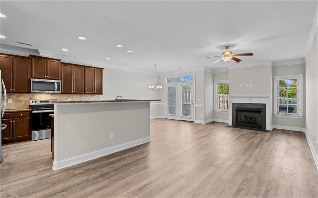 Bright, modern, & low-maintenance brick townhome built in 2021 with 3 bedrooms, 2.5 baths, & over 1,700 sq ft. High-ceiling foyer filled with natural light. Open main level connects kitchen, dining, & living areas & opens to a private back patio with endless possibilities for relaxing or entertaining. Upstairs primary suite with private en suite bath & generous closet space. Two additional bedrooms & full bath offer flexibility for guests or home office. 1-car garage. Convenient to shopping, dining, & major highways.