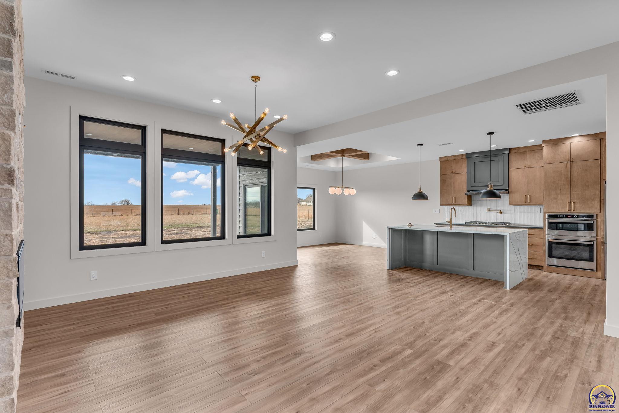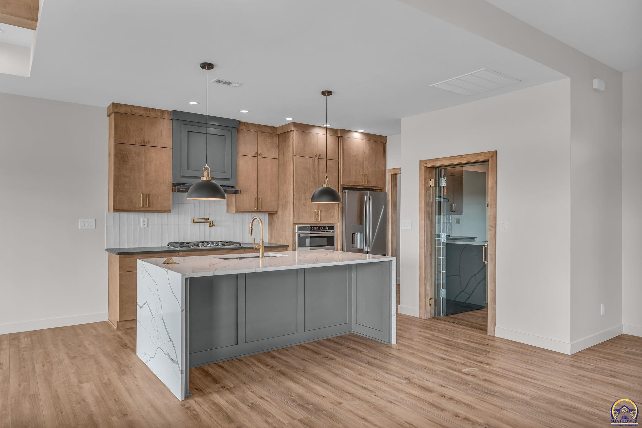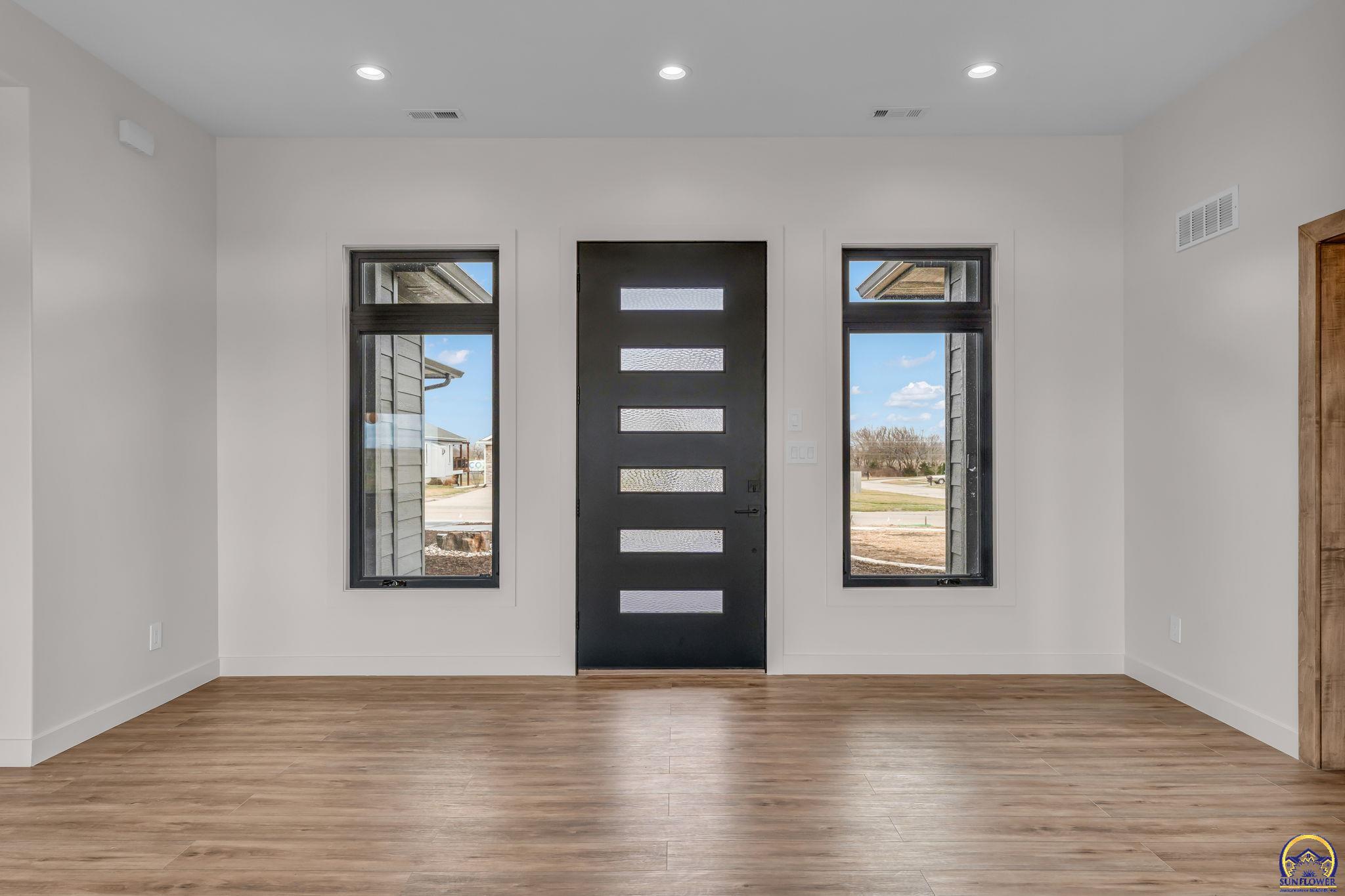 Discover quality craftsmanship and thoughtful design in this stunning new build by Bermudez Homes. Offering 3 spacious bedrooms, 2 baths, and a 3-car garage, this home combines style, comfort, and functionality. Situated on a desirable corner lot, you'll love the impressive curb appeal highlighted by a beautiful fountain at the front entrance creating a warm and inviting first impression. Step inside to an open, airy layout designed for modern living. The zero-entry design provides seamless access with no steps, making everyday living convenient and accessible. The kitchen is the heart of the home, featuring a generous pantry with built in safe room and ample workspace perfect for entertaining or daily meal prep. The primary suite offers a peaceful retreat with a private bath, while two additional bedrooms provide flexibility for guests, a home office, or hobbies. Located in the Washburn Rural School District, this home offers the added benefit of an exceptional school community. With quality finishes, smart design, and exceptional attention to detail throughout, this brand-new home is ready to welcome its first owners. Don't miss your opportunity to own a beautifully crafted home that blends comfort, elegance, and convenience.