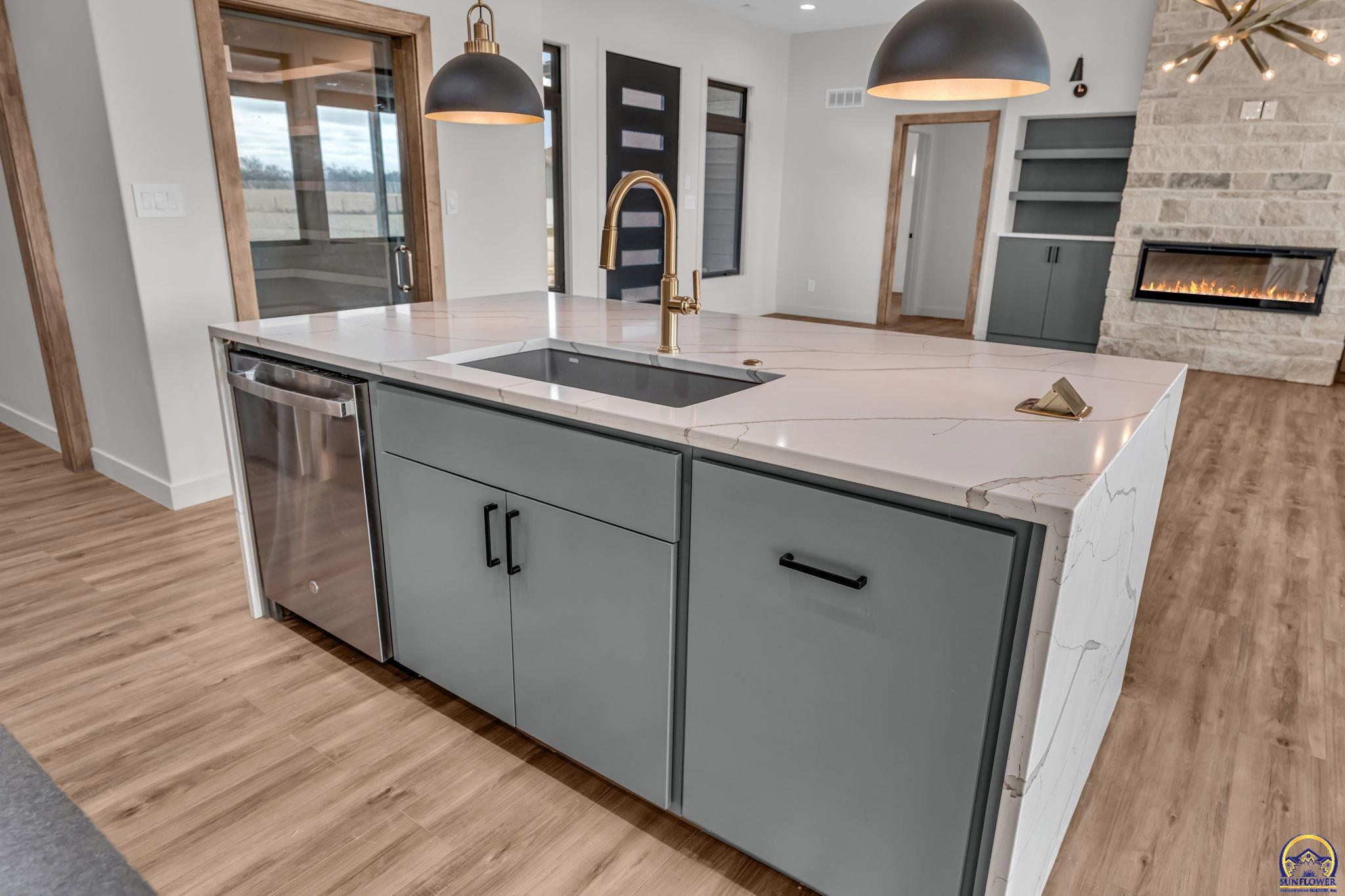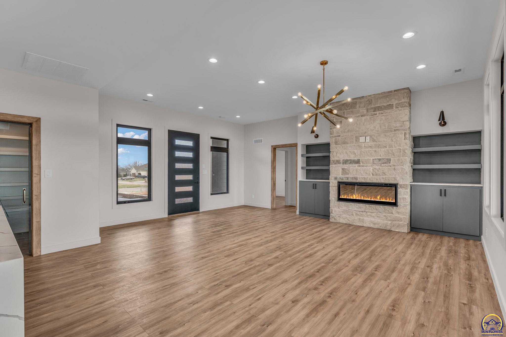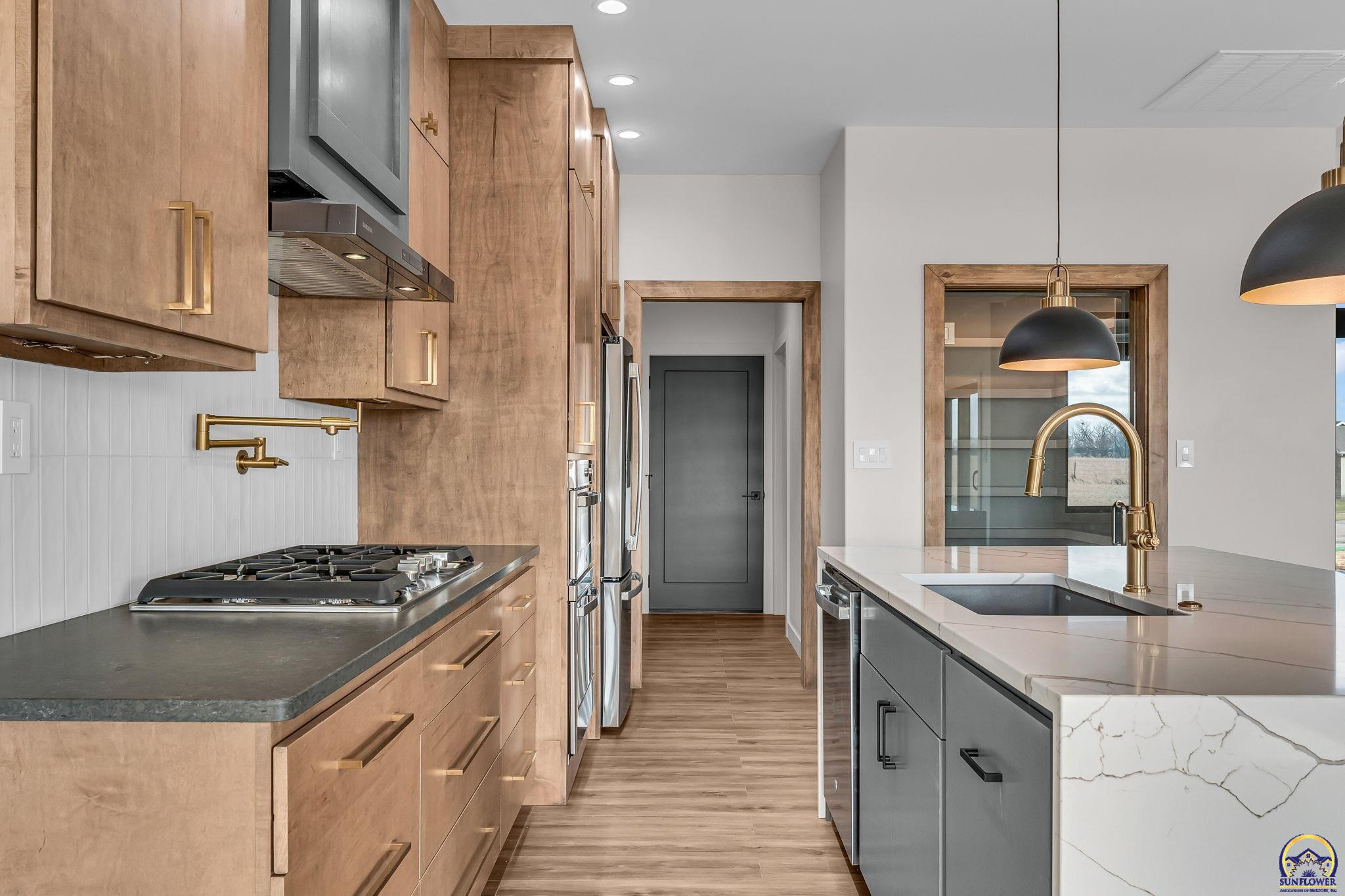 Discover quality craftsmanship and thoughtful design in this stunning new build by Bermudez Homes. Offering 3 spacious bedrooms, 2 baths, and a 3-car garage, this home combines style, comfort, and functionality. Situated on a desirable corner lot, you'll love the impressive curb appeal highlighted by a beautiful fountain at the front entrance creating a warm and inviting first impression. Step inside to an open, airy layout designed for modern living. The zero-entry design provides seamless access with no steps, making everyday living convenient and accessible. The kitchen is the heart of the home, featuring a generous pantry with built in safe room and ample workspace perfect for entertaining or daily meal prep. The primary suite offers a peaceful retreat with a private bath, while two additional bedrooms provide flexibility for guests, a home office, or hobbies. Located in the Washburn Rural School District, this home offers the added benefit of an exceptional school community. With quality finishes, smart design, and exceptional attention to detail throughout, this brand-new home is ready to welcome its first owners. Don't miss your opportunity to own a beautifully crafted home that blends comfort, elegance, and convenience.