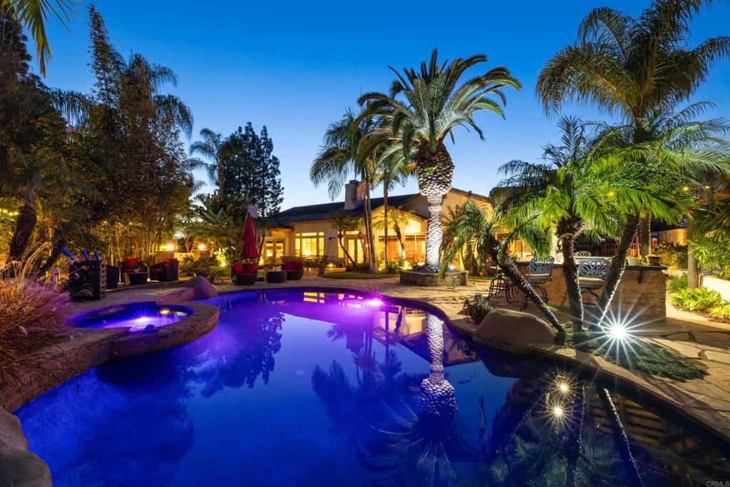 RARE FIND IN HIGHLY COVETED BONITA LONG CANYON! The one you've been waiting for. This single-story corner-lot residence in one of Bonita's most sought-after neighborhoods delivers the ultimate indoor-outdoor lifestyle with an entertainer's dream backyard that has to be seen to be believed. Step inside to soaring ceilings and a wide-open floor plan flooded with natural light. The chef's kitchen features top-of-the-line appliances and a stunning custom copper hood over the cooktop - a true showpiece. French doors from the dining room, kitchen, living room, and primary bedroom all open directly to the backyard, blurring the line between indoor and outdoor living. Beautifully designed and professionally landscaped, the outdoor space includes a solar-heated pool, spa, and waterslide, two palapas, a full outdoor kitchen plumbed with water and gas, multiple seating and dining areas, an outdoor shower, and lush garden spaces. Whether you're hosting a weekend gathering or unwinding after a long day, this yard delivers. The home offers 4 bedrooms (primary suite, an additional bedroom suite, and two bedrooms with Jack-and-Jill bath), approximately 2,857 sq ft of living space, and a spacious 3-car garage, with recent upgrades including an HVAC system just 1 year old and a tankless water heater for energy-efficient comfort. Nestled on a quiet, peaceful street, this location puts you minutes from highly rated Bonita Vista Middle and High Schools, plus convenient access to shopping, dining, and recreation. Opportunities like this in Bonita Long Canyon don't stay available for long. You'll know why the moment you see it.