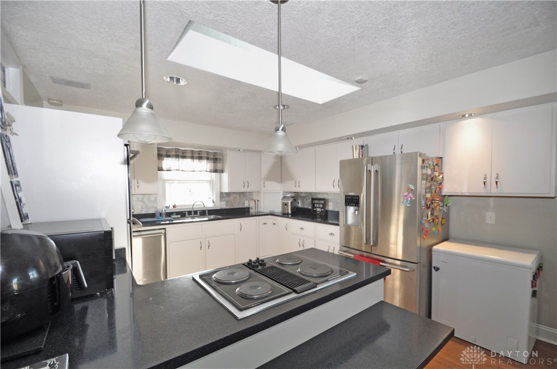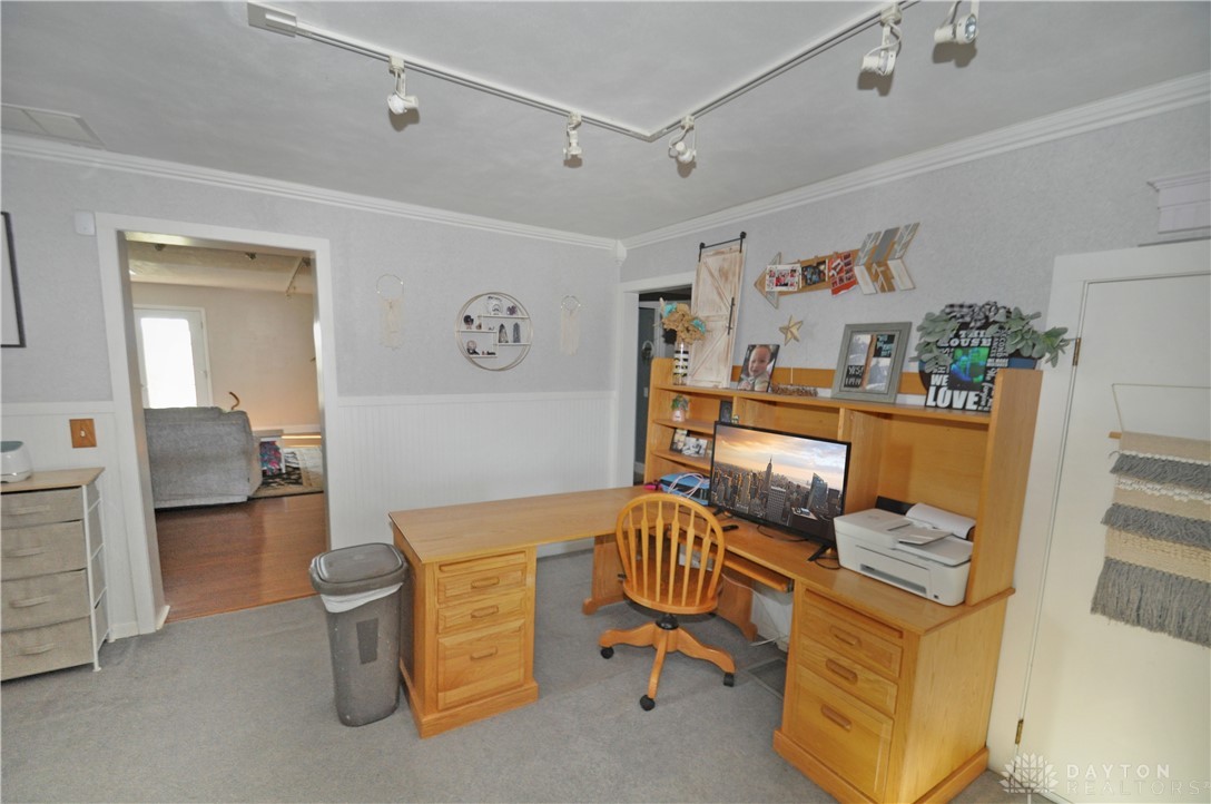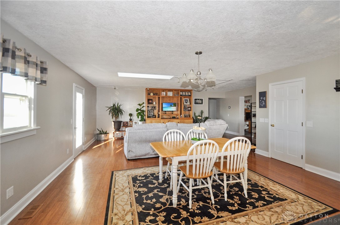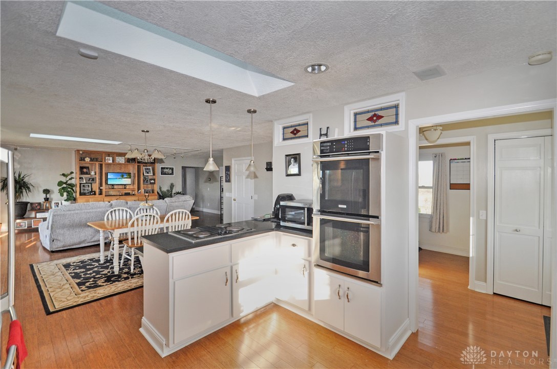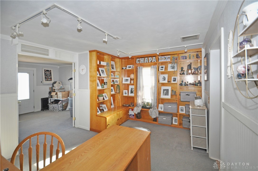 Discover unparalleled country living at this expansive 3-bedroom, 2-bath residence, perfectly situated on 5 acres in New Paris. This remarkable property provides 2,342 square feet of thoughtfully designed living space, ensuring comfort and versatility for its inhabitants. The welcoming entrance leads into a main level that truly defines spaciousness with its open floor plan, featuring large rooms that flow seamlessly throughout. An updated open kitchen is ideal for culinary enthusiasts, while a generous living room and a dedicated family room offer abundant space for relaxation and gatherings of all sizes. A convenient office area provides a quiet retreat for focused work or study. Enjoy the outdoors with a partially fenced backyard, complete with a charming patio area perfect for alfresco dining and entertaining under the open sky. The inviting front porch enhances the home's curb appeal, offering a serene spot to unwind and enjoy the surroundings. For those with hobbies or requiring significant workspace, an impressive, fully insulated and heated garage awaits, featuring electric, a concrete floor, nine overhead doors, and an integrated office area. This versatile structure, along with a large gravel parking area, accommodates a variety of needs, from vehicle storage to specialized projects. With 3.5 acres of tillable land, this unique estate presents endless opportunities for a vibrant rural lifestyle. Interior amenities include an attic, security system, a luxurious whirlpool tub, convenient walk-in closet(s), partial window coverings, and comforting ceiling fan(s). Essential appliances such as a built-in electric oven, refrigerator, owned water softener, electric water heater, dishwasher, and cooktop are included, providing a move-in ready experience. A new furnace and new flooring upstairs further enhance the comfort and appeal of this exceptional home.