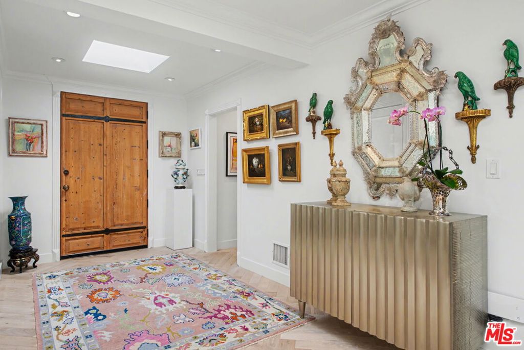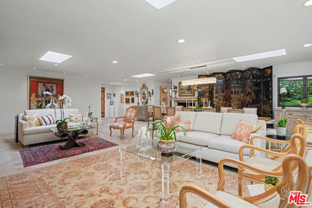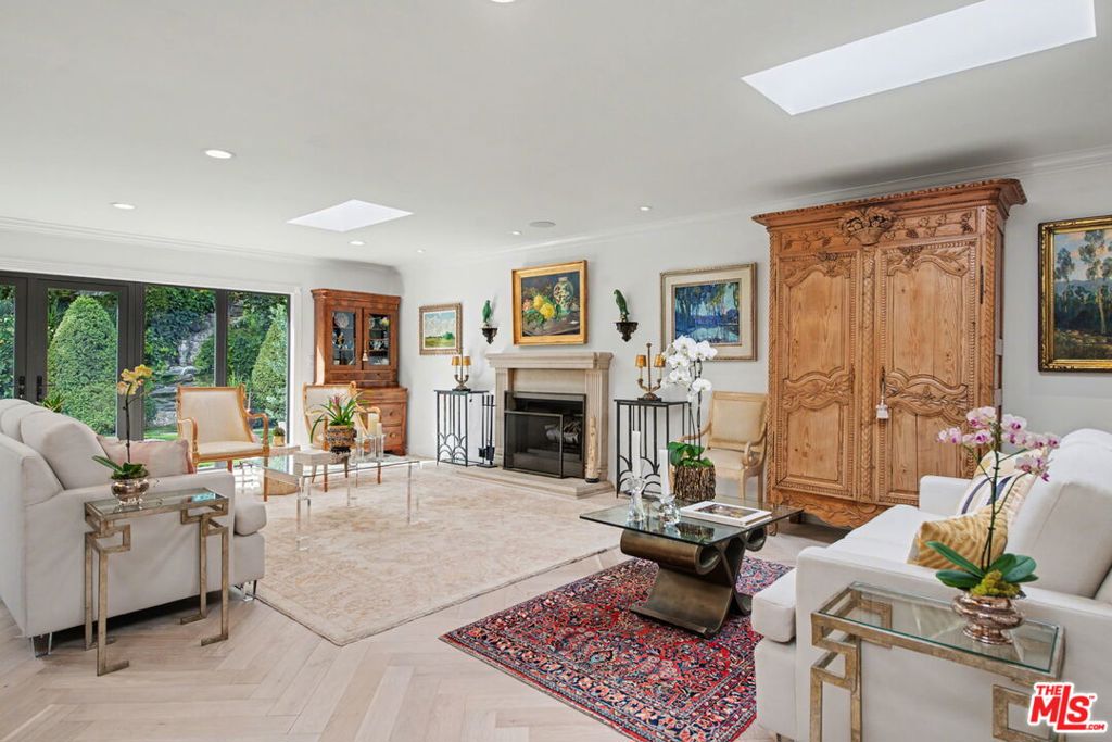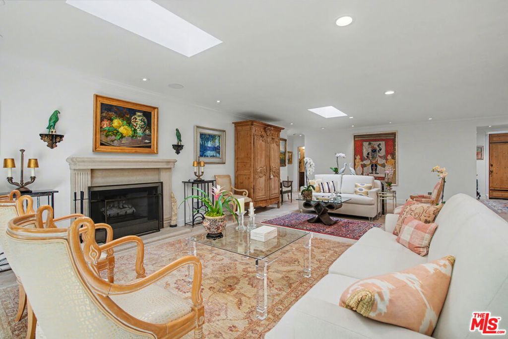 New look! New photos! New price! Please take note! Extensively and quite recently remodeled with exquisite taste and superior quality, this very special, light and bright one-story home harmoniously blends comfort and style and has been meticulously and painstakingly maintained. Its open and sensible floor plan begins at the formal foyer, leading to the sky-lit living room and dining area designed with the elegant entertainer in mind. This very expansive area, with its light-hued herringbone-patterned wood floors and two stone-clad fireplaces, opens easily to the backyard for seamless indoor-outdoor flow. The family room is warm and cozy with its wet bar and fireplace and opens to the fabulous outdoor living and dining room, complete with a barbecue area, outdoor fireplace and comfort heaters. The chef's kitchen has a breakfast area, quartz countertops, stainless steel appliances and double ovens. There are four bedrooms in total. The primary suite, also opening to the backyard, is truly wonderful with its generous closet space, many built-ins, beautiful spa-like bath and sitting area. Adjacent are two spacious bedrooms sharing a tasteful hall bath. The fourth bedroom is located by the kitchen, perfect as a gym, nanny's or housekeeper's room. The backyard is nothing short of glorious, every inch professionally landscaped. A true paradise, there is natural beauty to behold everywhere, all amidst the soothing sounds of an artfully-crafted cascading waterfall. There's also a separate multi-purpose art studio in the backyard, as well. Extensive updates, many of them quite recent, include central air and heat, metal doors and windows, many exquisitely-crafted built-ins, multiple skylights, recessed lighting, art-focused lighting, a separate generator connected also to the gas line, a Tesla car charging port, a new roof, a security system and so much more. The garage has extra storage and offers direct access into the house. Please ask the agents for a comprehensive list of updates. Inclusion in the very desirable public school districts which include Kenter Elementary School, Paul Revere Middle School and Palisades High School. All this, moments from the town center with all the shopping, dining and services that Brentwood offers.
