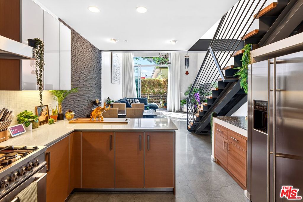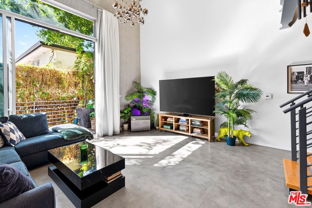 Sun-drenched, quiet, modern loft residence in prime West Hollywood. The thoughtfully designed interior includes soaring 20-foot ceilings with a dramatic 10-foot drop chandelier, heated floors, recessed lighting, motorized drapes and blinds, a distinctive Japanese ceramic feature wall, and many custom accents throughout. The flexible layout offers 2 bedrooms, 2.5 bathrooms, and a loft workspace, along with a private top-floor balcony showcasing views of Downtown Los Angeles, plus a separate rooftop entrance with expansive views of Runyon Canyon, the Hollywood Hills, and distant snow-capped mountains.Amenities include a common hot tub and lounge area, new front-gate video security system, controlled-access garage, dedicated tandem parking with a 220V EV charger, guest parking, bike storage, private storage locker, and accessible elevator. Conveniently located near Whole Foods, gyms, tennis courts, coffee shops, dining, and nightlife, with easy access to Sunset Blvd. and Santa Monica Blvd. The property has previously generated approximately $8,000/month in rental income. The HOA allows rentals of 3 months or longer, offering additional flexibility for ownership.