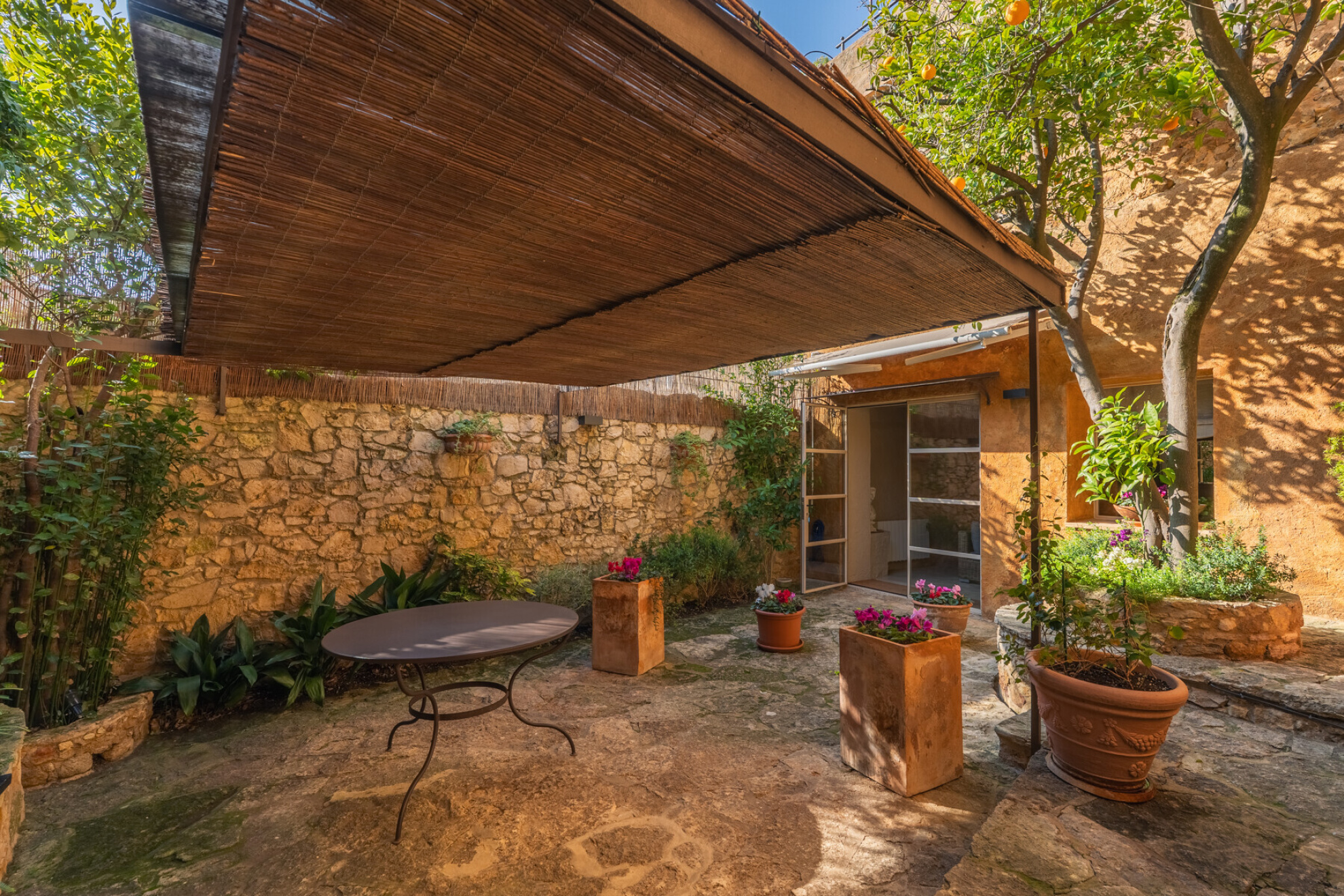 In the heart of the medieval center of Pals, one of the most charming municipalities of the Empordà, is this extraordinary century-old stone house that combines history, signature architecture and an exquisite rehabilitation. Located in the heart of the historic center, surrounded by cobbled streets and overlooking the emblematic Torre de les Hores, the house integrates the heritage landscape into everyday life, offering a unique experience of history and authenticity.Born from the ruins of an old stables, restored in 1979 by architect Josep Pratmarsó commissioned by Dr. Santiago Dexeus, it retains its original architectural identity. It has recently been refurbished with impeccable taste, balancing the rustic character with contemporary comforts, warm and sophisticated interiors, and a luminosity that is unusual in this type of historic building.Distributed over 3 floors, it offers versatile spaces full of personality. On the first floor there is a vaulted entrance hall, kitchen with dining area, living room, bathroom and an interior courtyard that acts as a private oasis. The second floor houses the master bedroom suite with office, another double bedroom, dressing room convertible into an additional bedroom and bathroom. The second floor has a large living room with fireplace and two terraces that offer wonderful views of the historic center and the mountains of Les Gavarres, ideal for watching sunsets or enjoying evenings outdoors in total privacy.It has completely renovated facilities, including designer kitchen, polished microcement floors, air conditioning, electric radiators, water softener and osmosis system, ensuring comfort and efficiency all year round.Living in Pals offers one of the most authentic and exclusive environments of the Costa Brava, close to beaches, emblematic villages and with cultural, gastronomic and leisure offer.