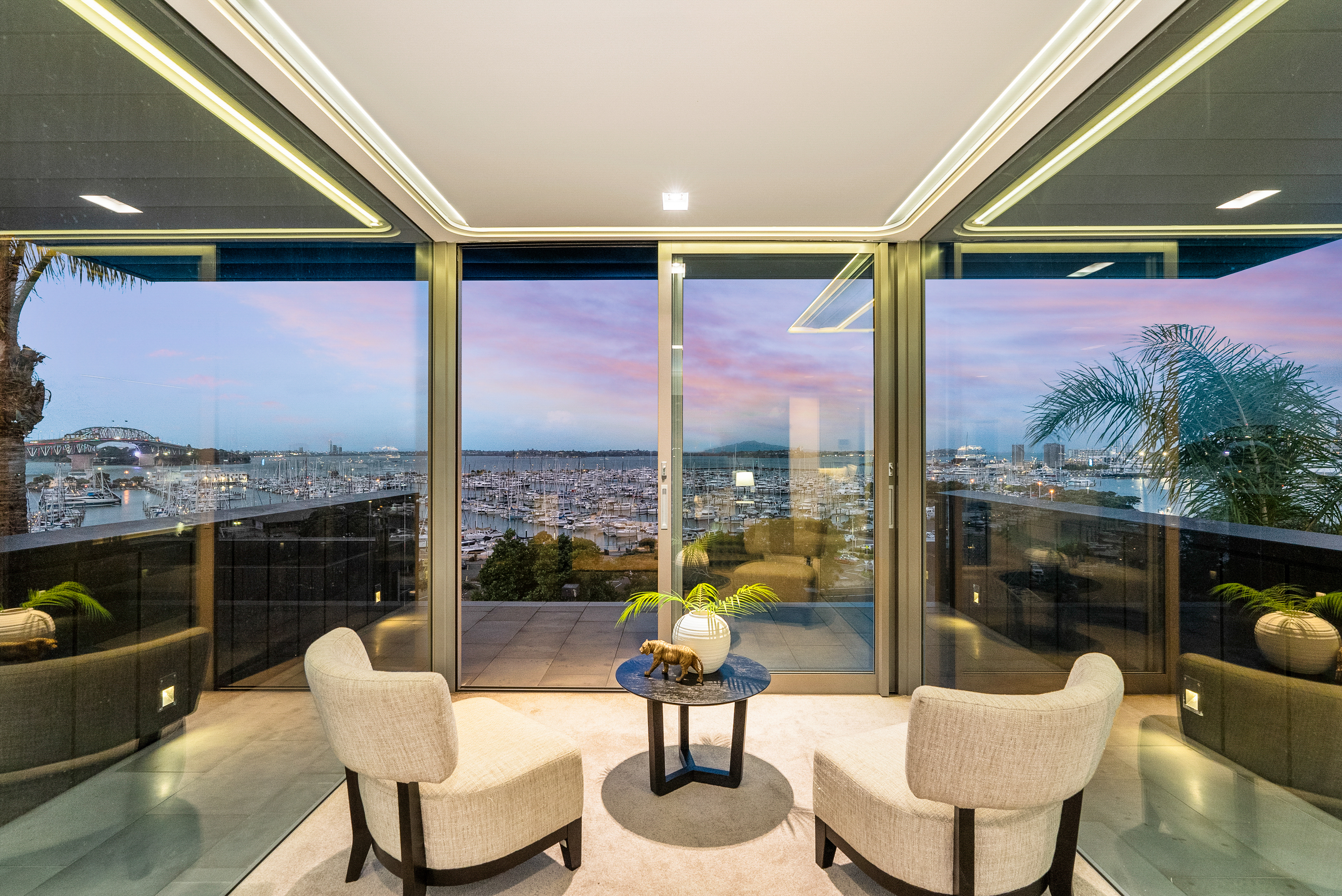 Elevated within tightly held St Marys Bay, this striking residence commands a truly exceptional vantage point.Panoramic views sweep from the Harbour Bridge across the Waitematā Harbour to Rangitoto, before returning to the glittering city skyline and Sky Tower. It is a front-row seat to Auckland’s most iconic landmarks — a perspective that cannot be built out and will never be replicated.Bold in form and unapologetically unique, the architecture is both sculptural and refined, designed to frame the harbour as living art. Expansive glazing draws light deep into the interiors, while carefully considered proportions create a sense of scale without excess.Comprehensively reimagined by acclaimed architect Andrew Mirams, the home has been thoughtfully designed to frame and celebrate this outlook at every turn. Spanning approximately 508 sq m of internal living, the residence offers multiple refined living areas, four luxurious en-suited bedrooms, a temperature-controlled wine cellar.A lift connecting all levels — making it a compelling alternative to apartment living, combining lock-and-leave ease with the privacy, independence, and individuality of a standalone home.Designed for sophisticated entertaining, the property features a solar-heated pool and multiple outdoor decking zones, allowing friends and family to spread out and enjoy the harbour panorama.A tennis court complements the outdoor lifestyle, seamlessly integrating recreation with relaxation. Every space has been conceived to maximise flow, comfort, and connection to the outdoors, while maintaining the elegance and refinement of the interiors.For those who value position above all else and design that stands apart, this is a rare and irreplaceable opportunity — a residence defined not only by its architecture, but by its permanent front-row seat to Auckland’s most iconic landscape.