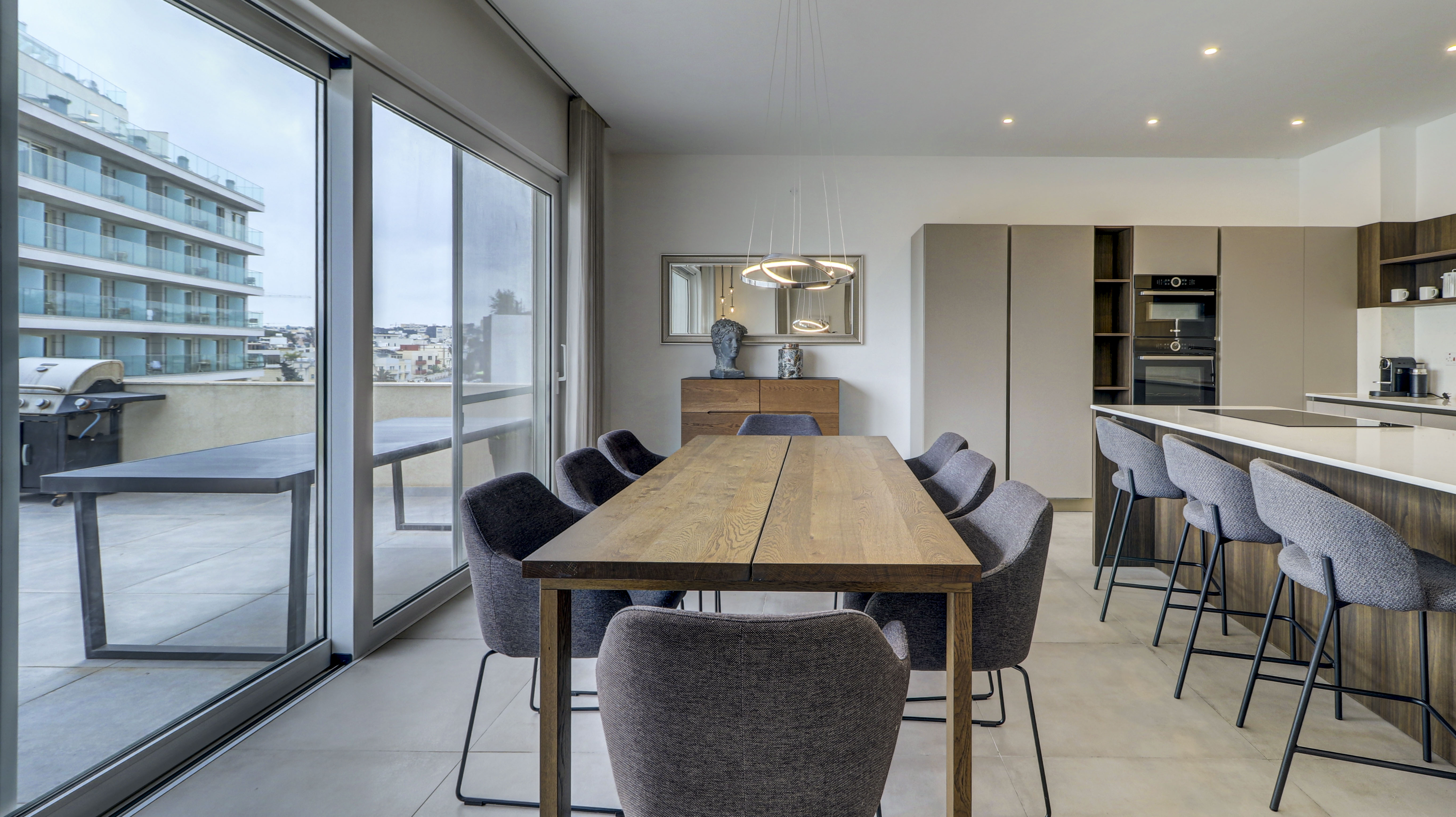 Luxury Duplex Penthouse in the Heart of St. Julian---s. Experience expansive Mediterranean living in this stunning 220 sqm duplex penthouse. Designed with privacy and comfort in mind, the residence features three spacious double bedrooms, each boasting a private en-suite shower and with a designer bathtub included in the master ensuite. The property truly shines outdoors, offering a massive 150 sqm of terrace space perfect for entertaining. Includes a convenient two car lockup garage.