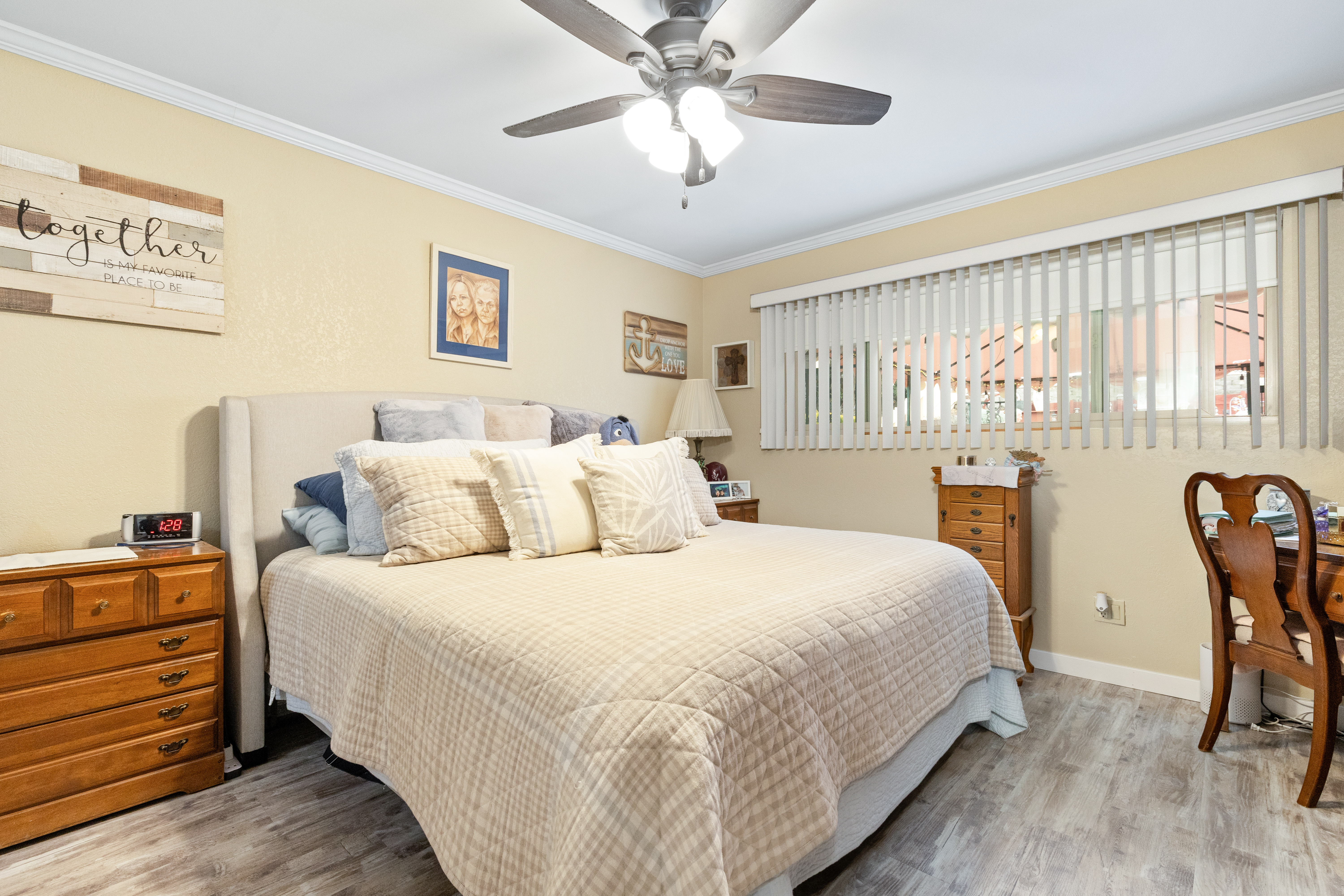 Welcome to this desirable Devonshire Model in the sought-after Sierra Bonita 55+ community of Paso Robles. This single-level home offers 2 bedrooms, 2 bathrooms, and approximately 1,088 +/- square feet of comfortable living space with a functional layout designed for easy living. The bright living area flows seamlessly into the dining space and kitchen, creating a welcoming environment for both everyday living and entertaining. A rare stand-alone unit, this home provides added privacy and sits on one of the larger lots in the neighborhood at approximately 7,405 +/- square feet, offering a spacious backyard with plenty of outdoor potential. Recent upgrades provide added value and peace of mind, including a newer roof, furnace, water heater, updated flooring, retaining wall, and a newer front door with a screen. The attached two-car garage offers convenient parking and additional storage. The generously sized backyard provides ample space to relax, garden, or create your own outdoor retreat. Sierra Bonita is known for its friendly atmosphere and convenient location, close to parks, the senior center, dog park, walking paths, shopping, and dining—making it easy to enjoy the relaxed Paso Robles lifestyle. Come take a look today.