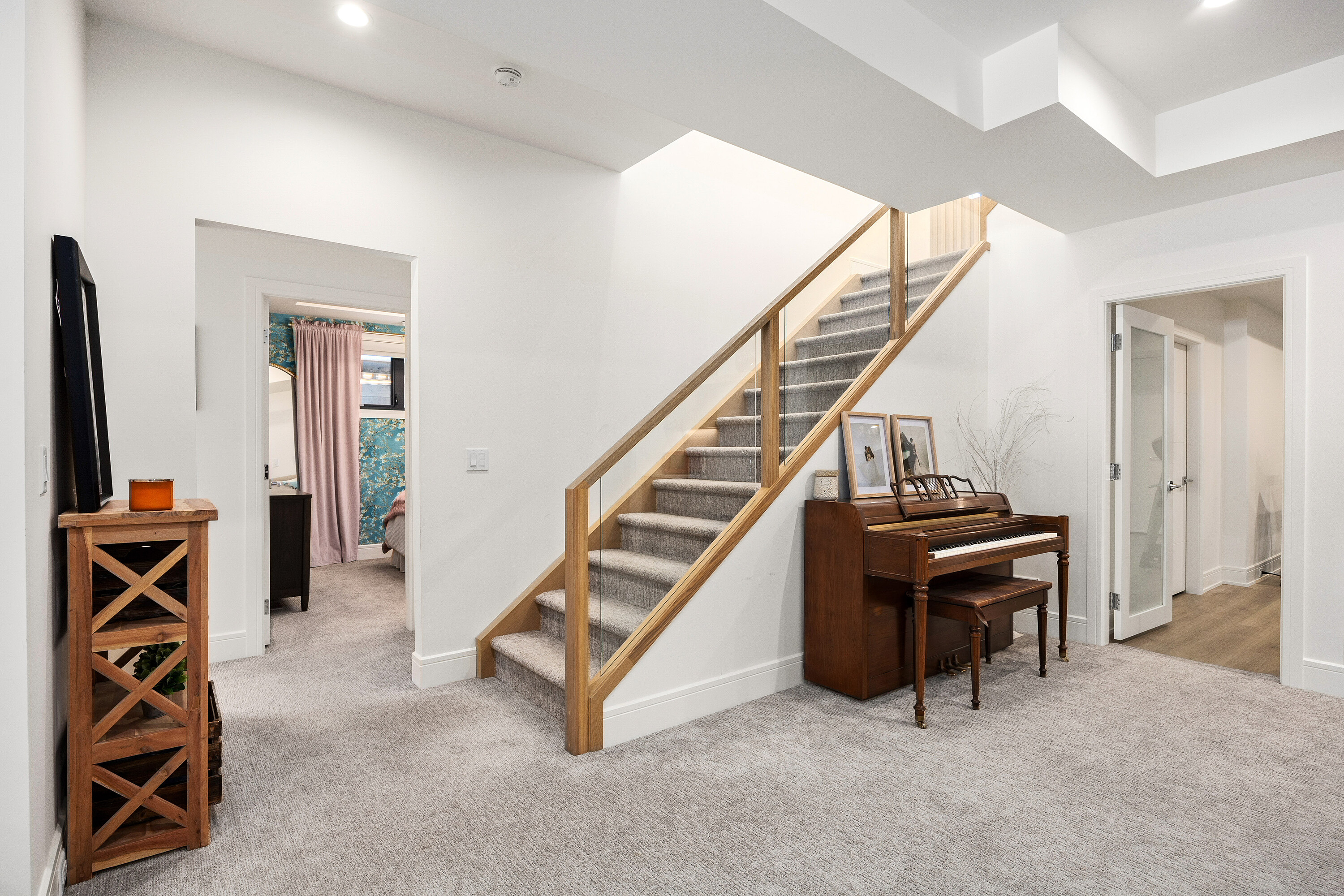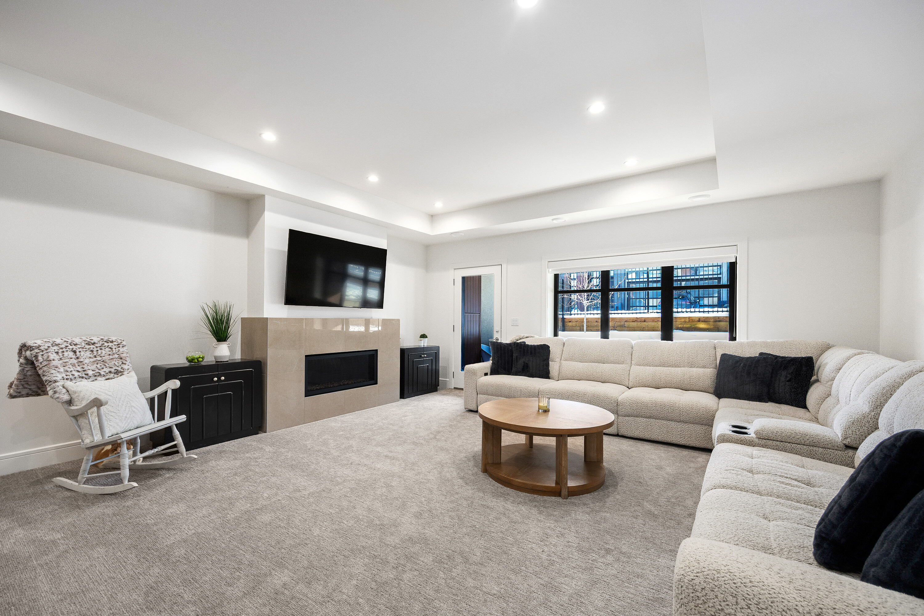 Introducing a rare offering in the sold out luxury bungalow community of Elveden Court on Calgary’s coveted west side, made up of only 26 units. This refined residence represents the pinnacle of lock-and-leave living, designed for discerning homeowners who appreciate exquisite craftsmanship paired with the ease of a low-maintenance, lock and leave lifestyle. This unit is elegantly finished with tile, flooring, millwork, wallpaper and stone upgrades from an already elevated build quality to create a serene, warm and inviting atmosphere. Builder owned, rest assured, every detail has been carefully executed! The open-concept main level is warm and inviting, with light oak hardwood flooring, soaring ceilings, ample skylights and expansive windows that flood the entire living space with natural light. A striking hand built stone fireplace anchors the great room under 16’ ceilings, while large doors open to a west facing patio with a built-in gas fireplace, perfect for indoor-outdoor entertaining. The kitchen is a true showpiece, appointed with a premium Wolf & Sub-Zero appliance package. Custom cabinetry including an enhanced walk up pantry design is complemented by an upgraded quartz backsplash and a waterfall island creating both visual impact and exceptional functionality. The main level primary suite offers a tranquil retreat, featuring a spacious bedroom, walk-in dressing room, and a spa-inspired ensuite with in-floor heat, upgraded tile selections, dual vanities, a freestanding soaker tub, and an oversized 10mm glass shower. Custom, elegantly exciting wallpaper feature walls adorn many of the tranquil spaces throughout the home. A beautifully appointed den with custom millwork, a powder room and a well appointed laundry area complete the main floor. The fully developed walk-up level with 9’ ceilings is designed for entertaining and lifestyle flexibility. A spacious recreation area is highlighted by an upgraded gas fireplace and a wet bar. Two additional bedrooms with custom closets and a full three-piece bath provide ideal accommodation for guests or older children. This lower level also has a thoughtfully upgraded home gym, and additional storage in the mechanical room. The oversized double attached garage features a heated slab, epoxy flooring, transom windows for natural light, and a custom storage mezzanine. Built to an exceptional standard, the home was constructed with full Insulated Concrete Forms (ICF) to the soffit line, including the party wall, delivering superior thermal efficiency, sound attenuation, and long-term durability. Triple-glazed windows and skylights enhance comfort and natural light further exemplifying the quality of construction. Minutes to Aspen Landing, Westside Recreation Centre, Stoney Trail, and the Rocky Mountains, this villa community offers an un offers an unparalleled blend of privacy, quality, and convenience.