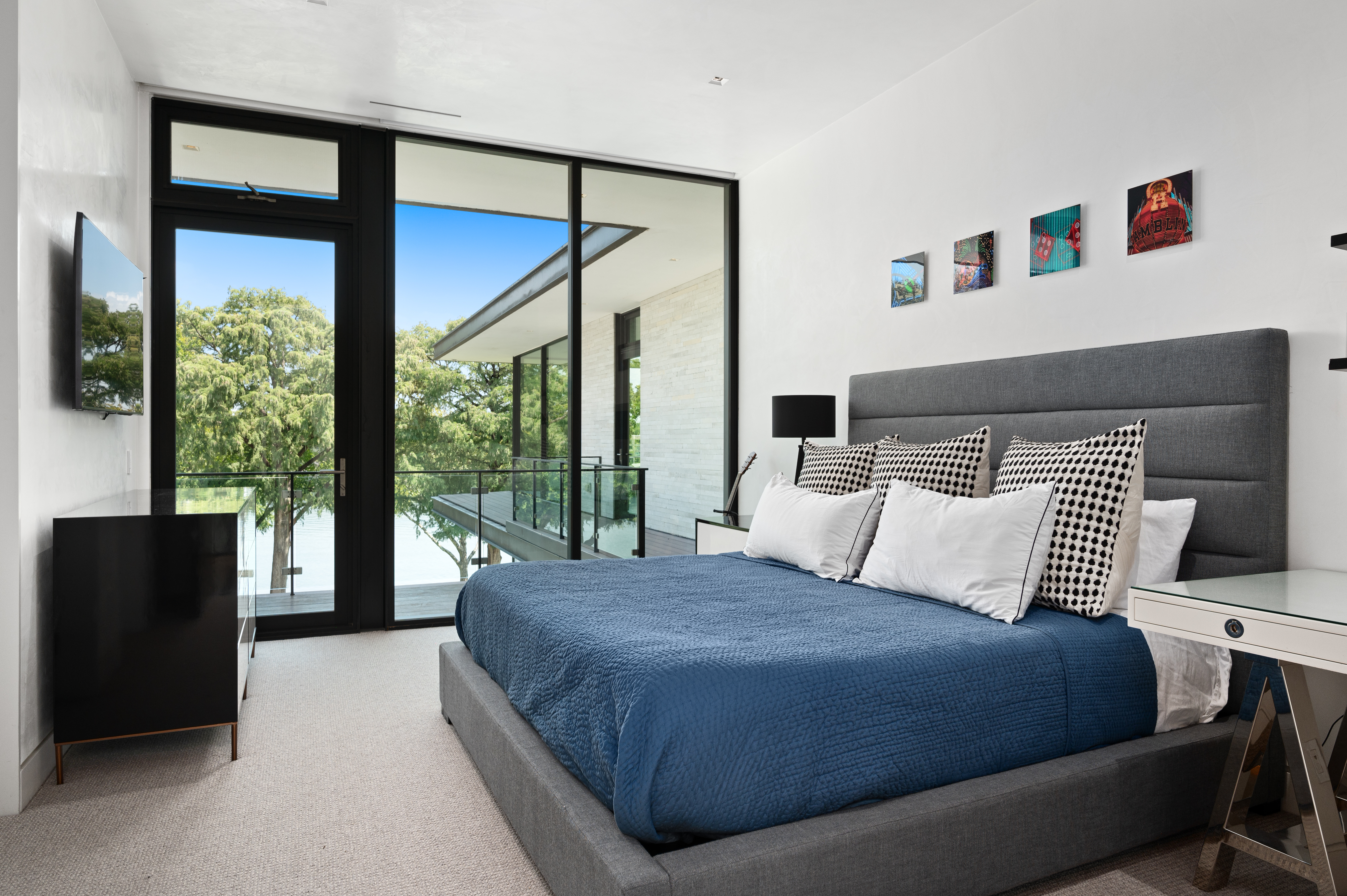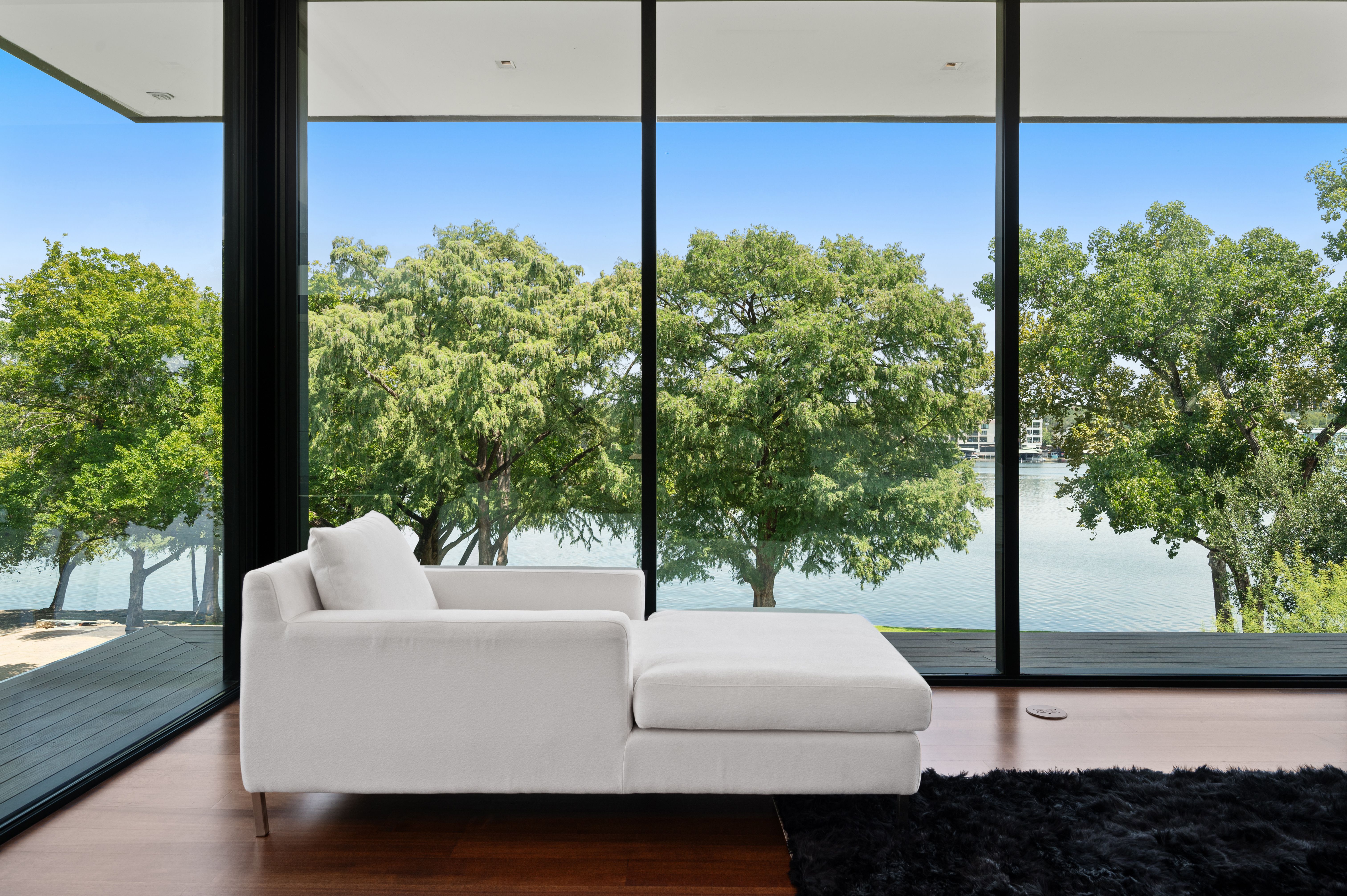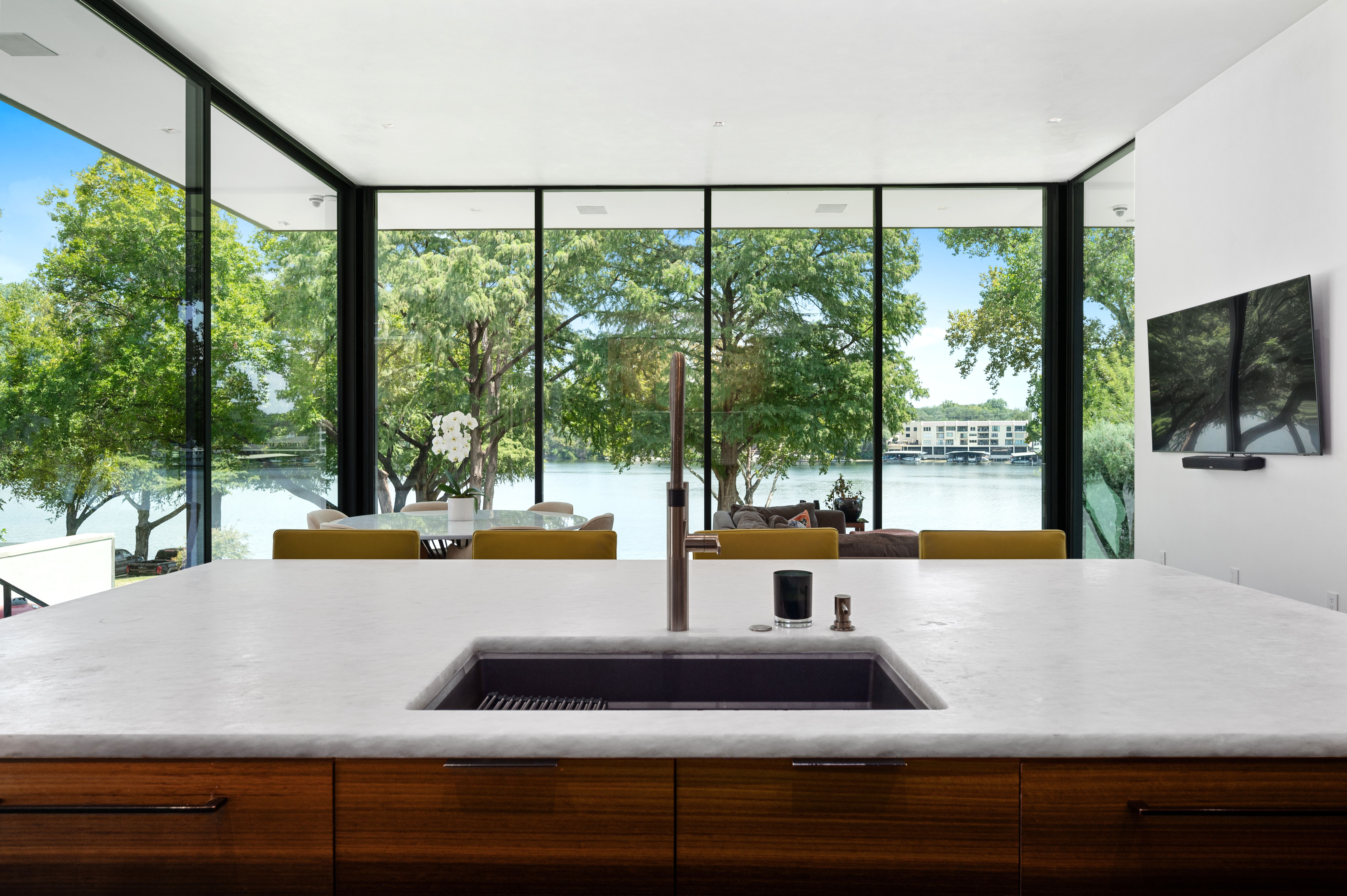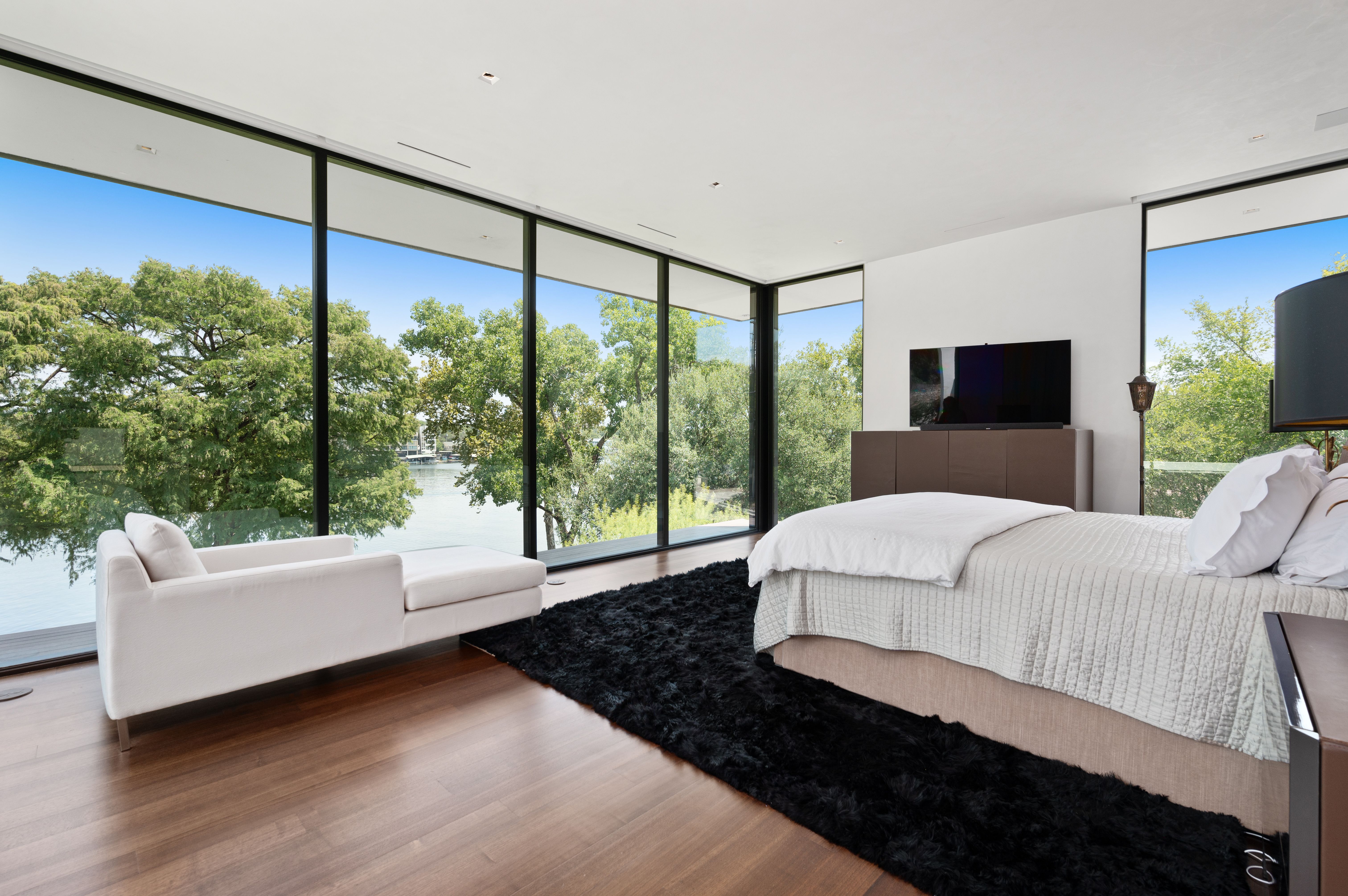 Tucked at the end of a quiet cul-de-sac on the coveted shores of Lake Austin, this estate is a rare convergence of architectural brilliance, absolute privacy, and some of the most commanding waterfront views the lake has to offer.Designed by the celebrated Matt Garcia Architecture and completed in 2019, this ±6,550 square foot modern masterpiece delivers a clean, razor-edged aesthetic that feels both effortlessly cool and deeply considered. Floor-to-ceiling glass dissolves the boundary between interior and exterior at every turn, framing 250 feet of uninterrupted lake frontage like a living work of art. Outside, ±2,200 square feet of Lueder stone decking extends the living experience to the water's edge, where a private boat slip awaits.With five bedrooms and five and a half bath's, the home is as thoughtfully functional as it is stunning. Multiple media rooms and private offices make it equally suited for focused work or immersive entertainment, while a dedicated wine room and full bar elevate every gathering. The Palm Springs-inspired grounds — punctuated by towering Medjool palms, silver-leafed olive trees, and striking saguaros — lend a resort-caliber drama that is entirely unique to this property.Close-in yet completely secluded, Lakeshore Edge is the kind of address that rarely comes available — a private sanctuary where world-class design, natural beauty, and the soul of Lake Austin exist in perfect balance.