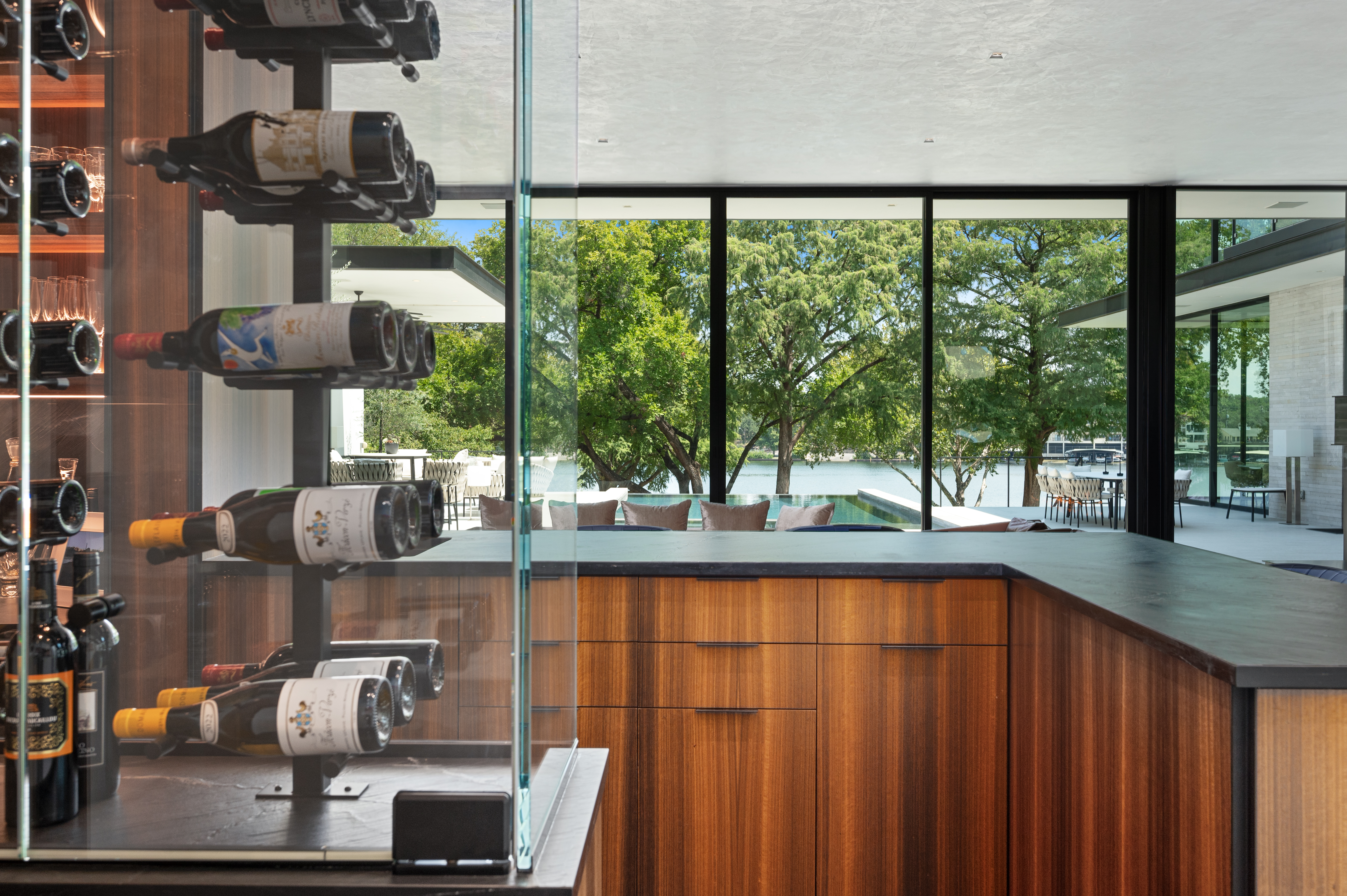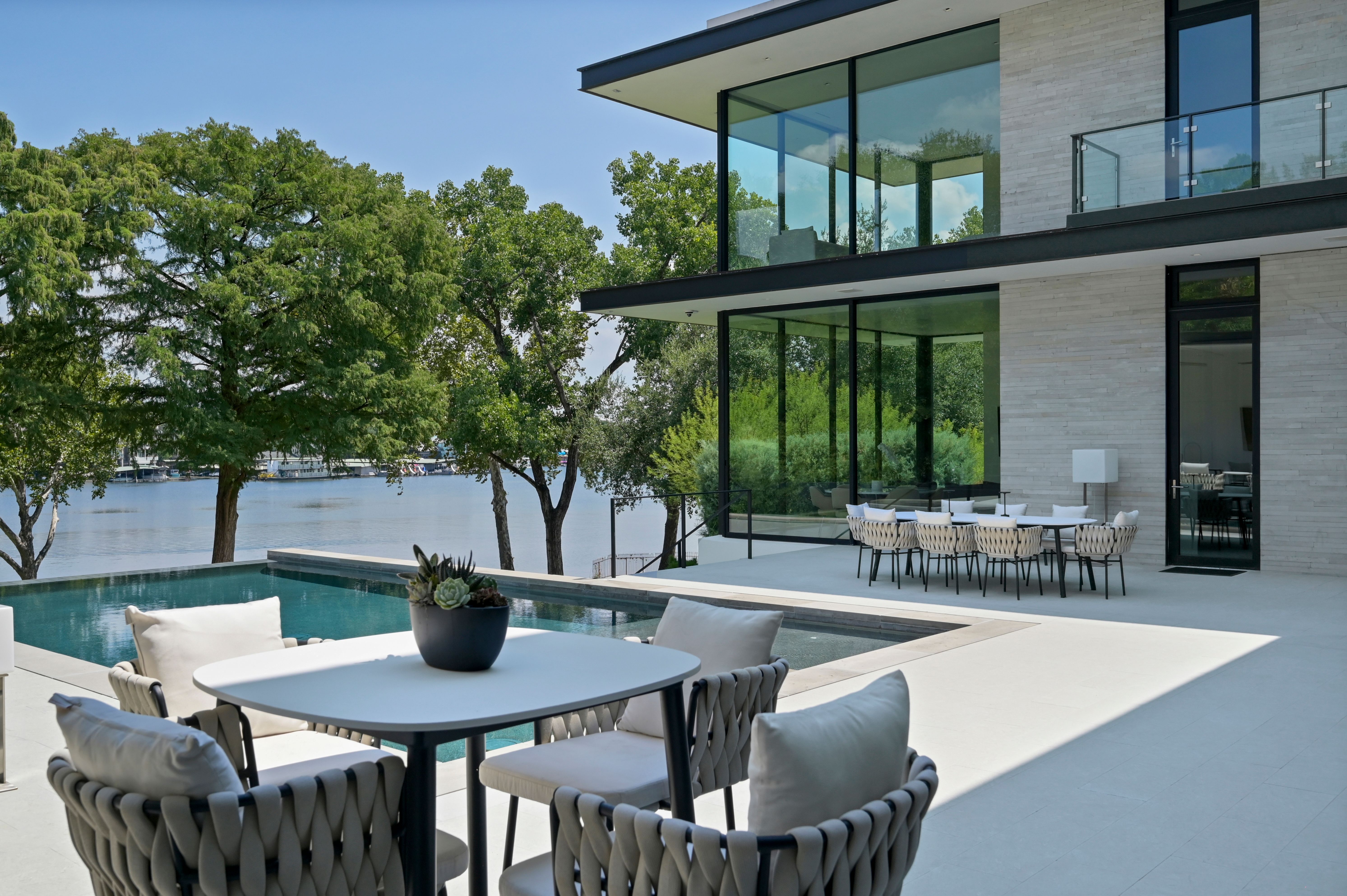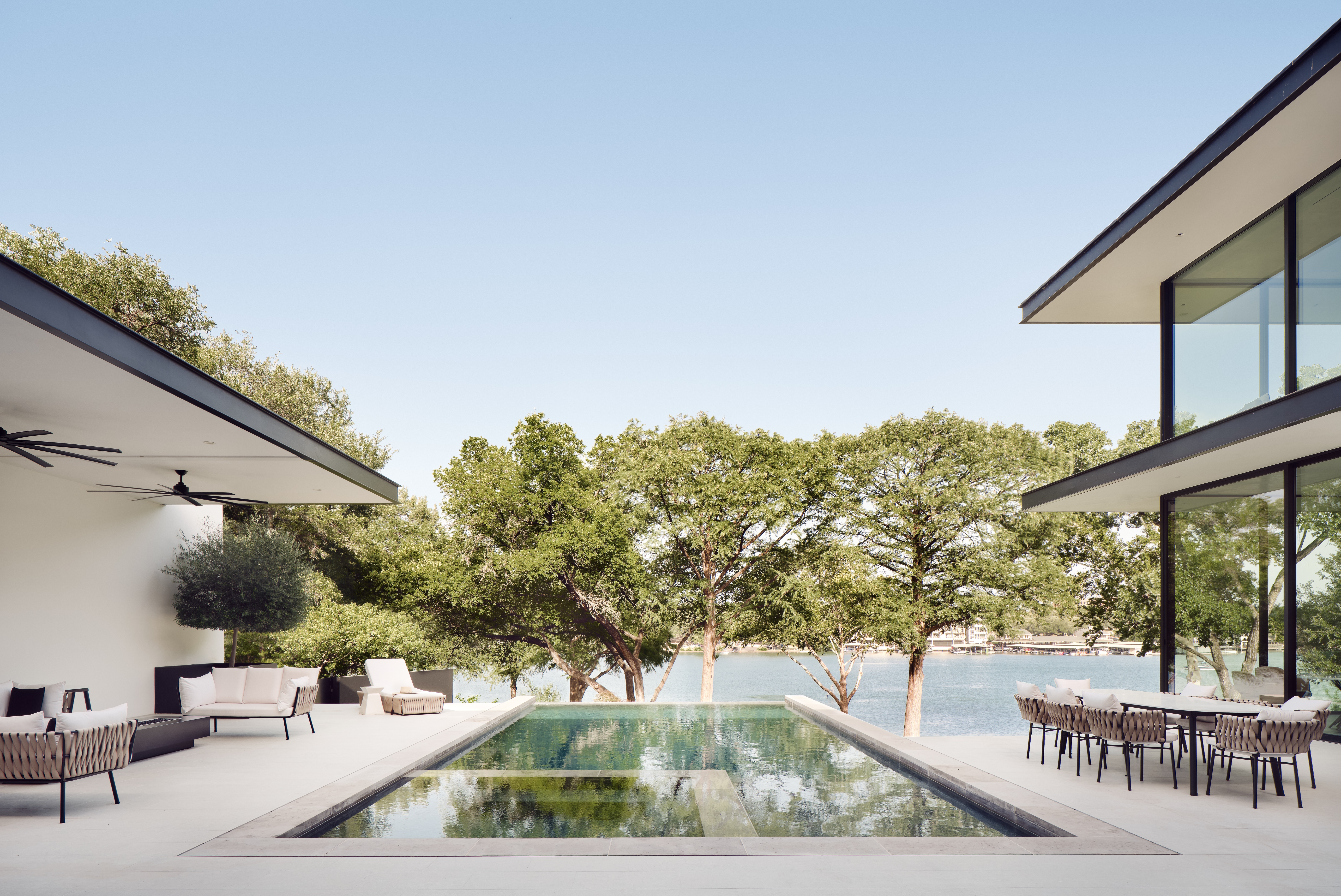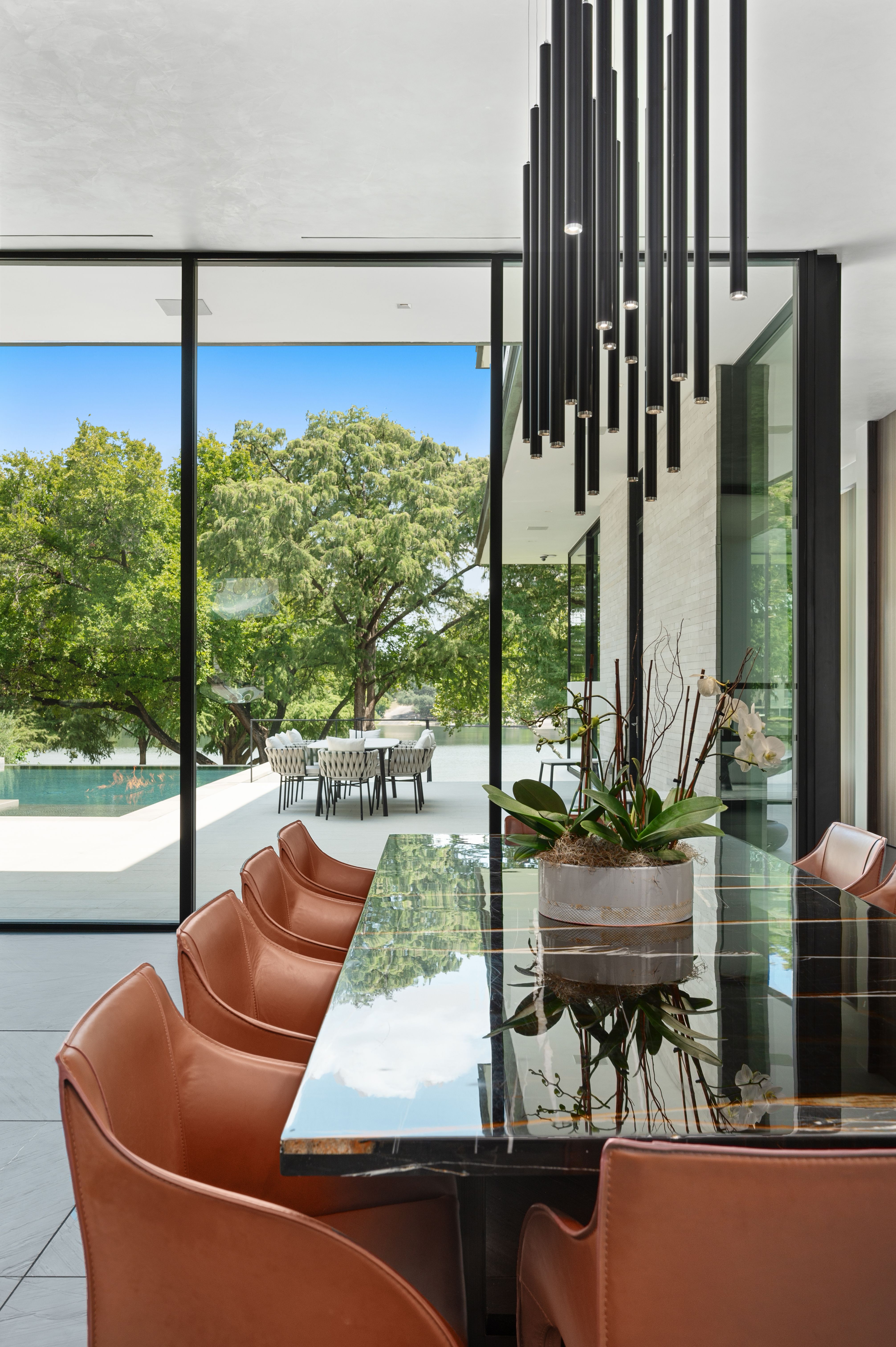 Tucked at the end of a quiet cul-de-sac on the coveted shores of Lake Austin, this estate is a rare convergence of architectural brilliance, absolute privacy, and some of the most commanding waterfront views the lake has to offer.Designed by the celebrated Matt Garcia Architecture and completed in 2019, this ±6,550 square foot modern masterpiece delivers a clean, razor-edged aesthetic that feels both effortlessly cool and deeply considered. Floor-to-ceiling glass dissolves the boundary between interior and exterior at every turn, framing 250 feet of uninterrupted lake frontage like a living work of art. Outside, ±2,200 square feet of Lueder stone decking extends the living experience to the water's edge, where a private boat slip awaits.With five bedrooms and five and a half bath's, the home is as thoughtfully functional as it is stunning. Multiple media rooms and private offices make it equally suited for focused work or immersive entertainment, while a dedicated wine room and full bar elevate every gathering. The Palm Springs-inspired grounds — punctuated by towering Medjool palms, silver-leafed olive trees, and striking saguaros — lend a resort-caliber drama that is entirely unique to this property.Close-in yet completely secluded, Lakeshore Edge is the kind of address that rarely comes available — a private sanctuary where world-class design, natural beauty, and the soul of Lake Austin exist in perfect balance.