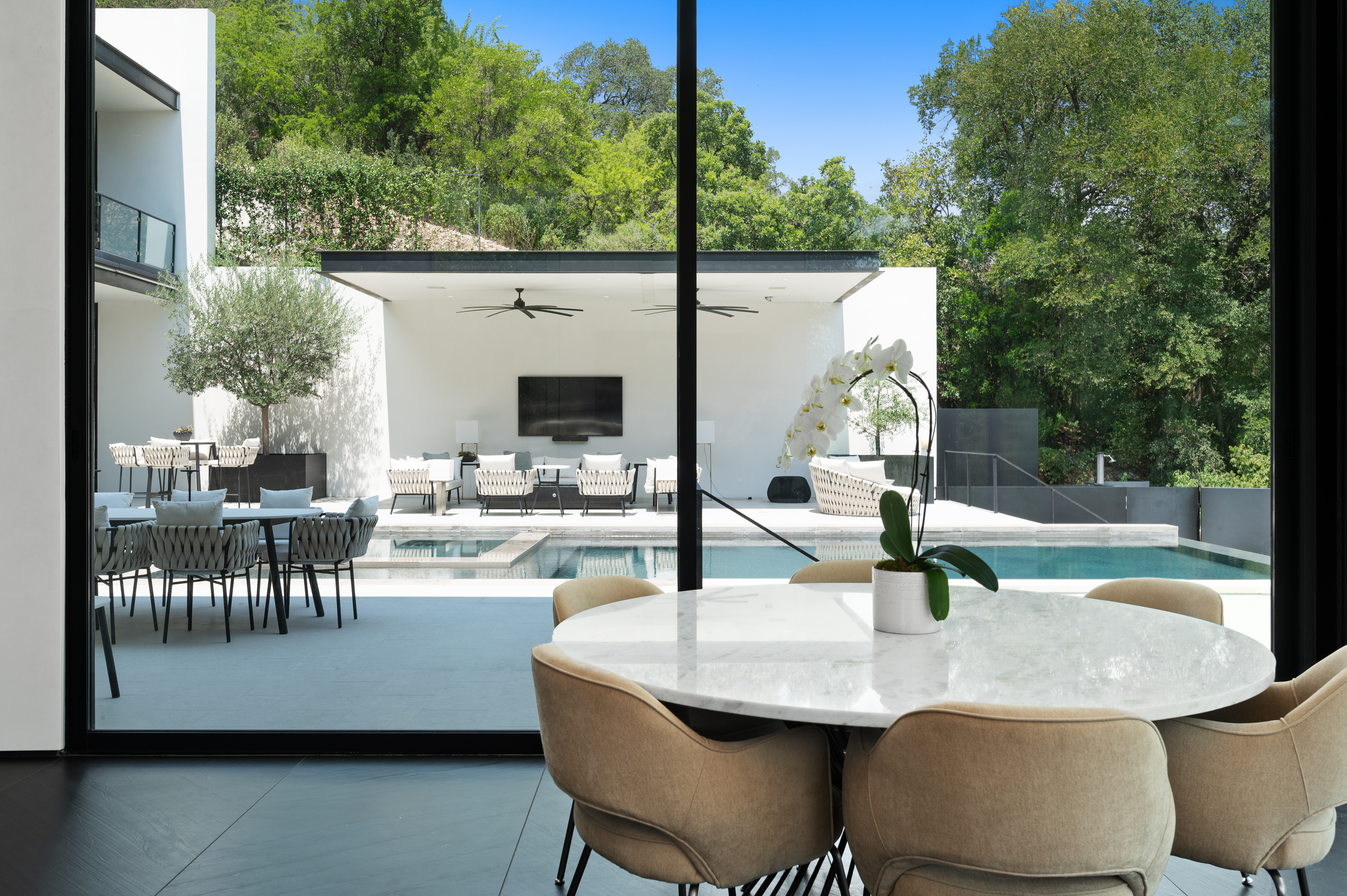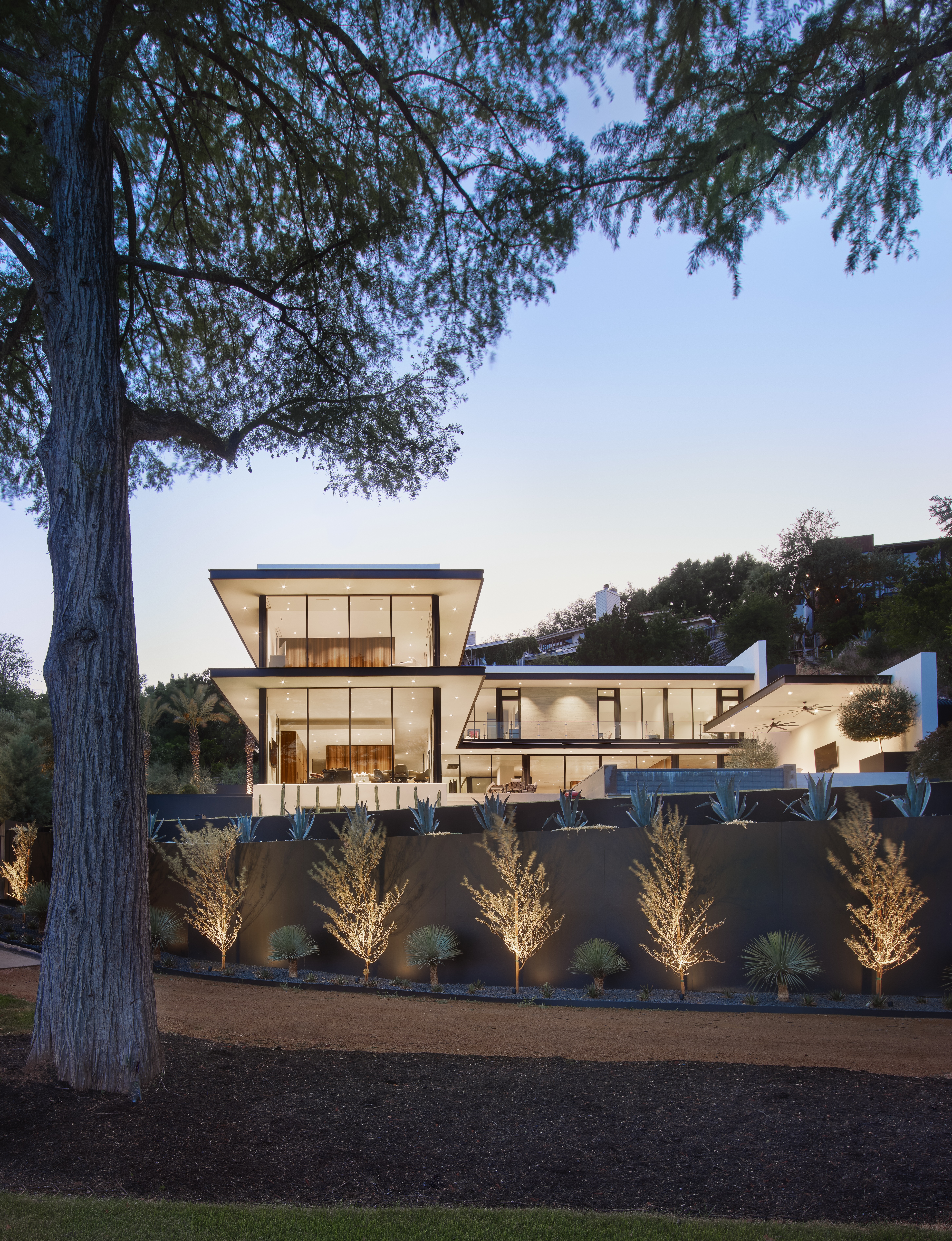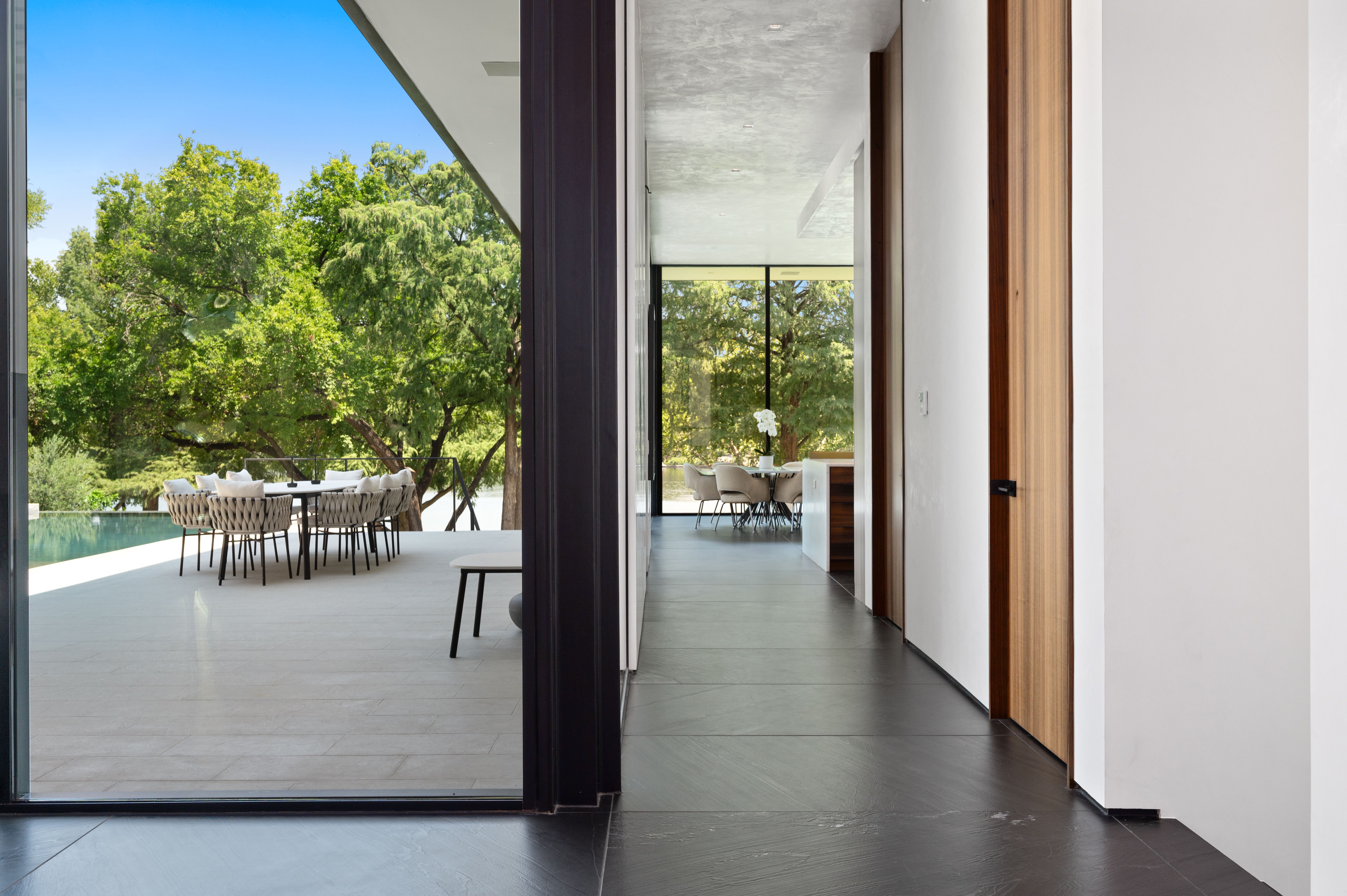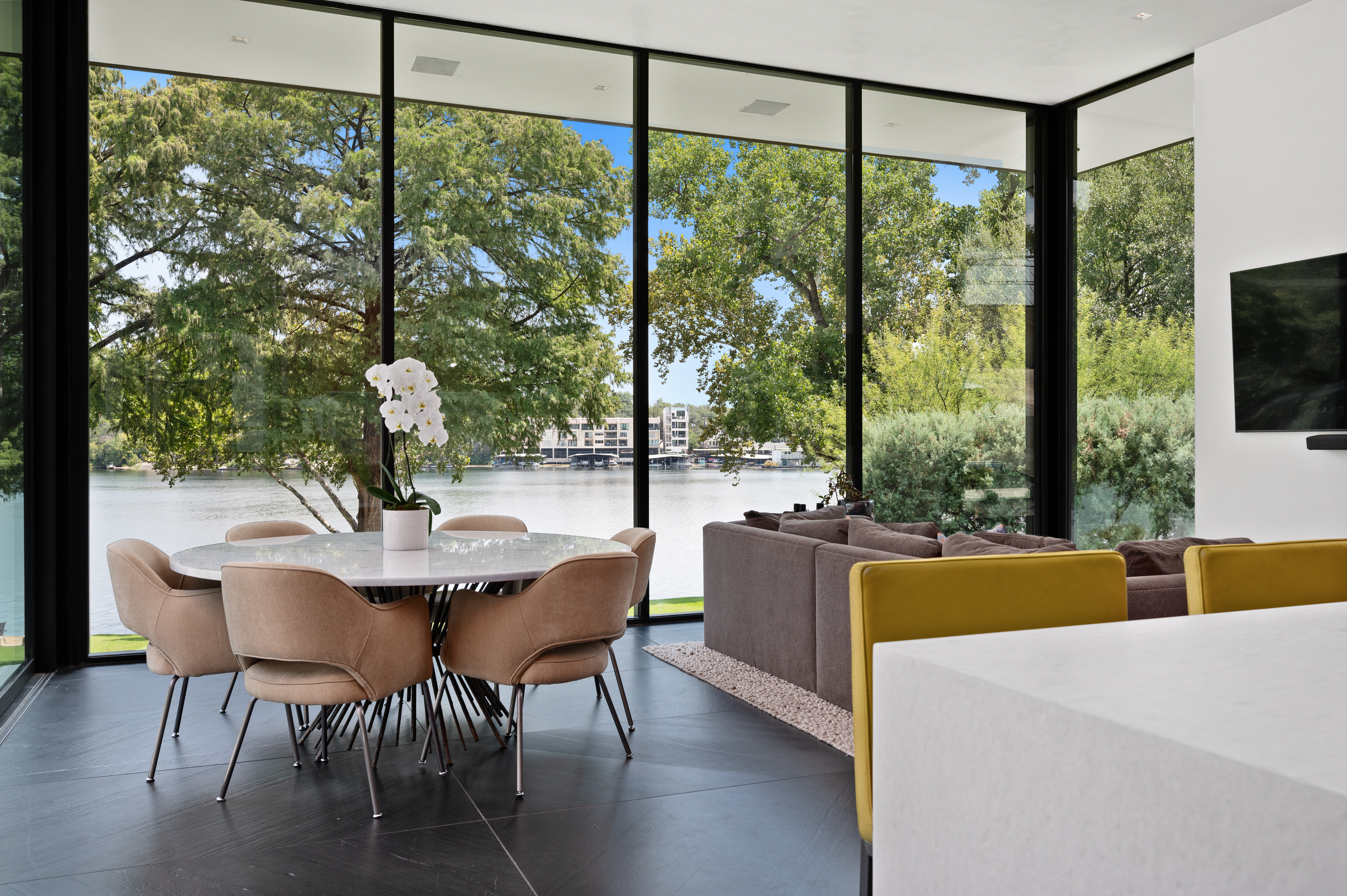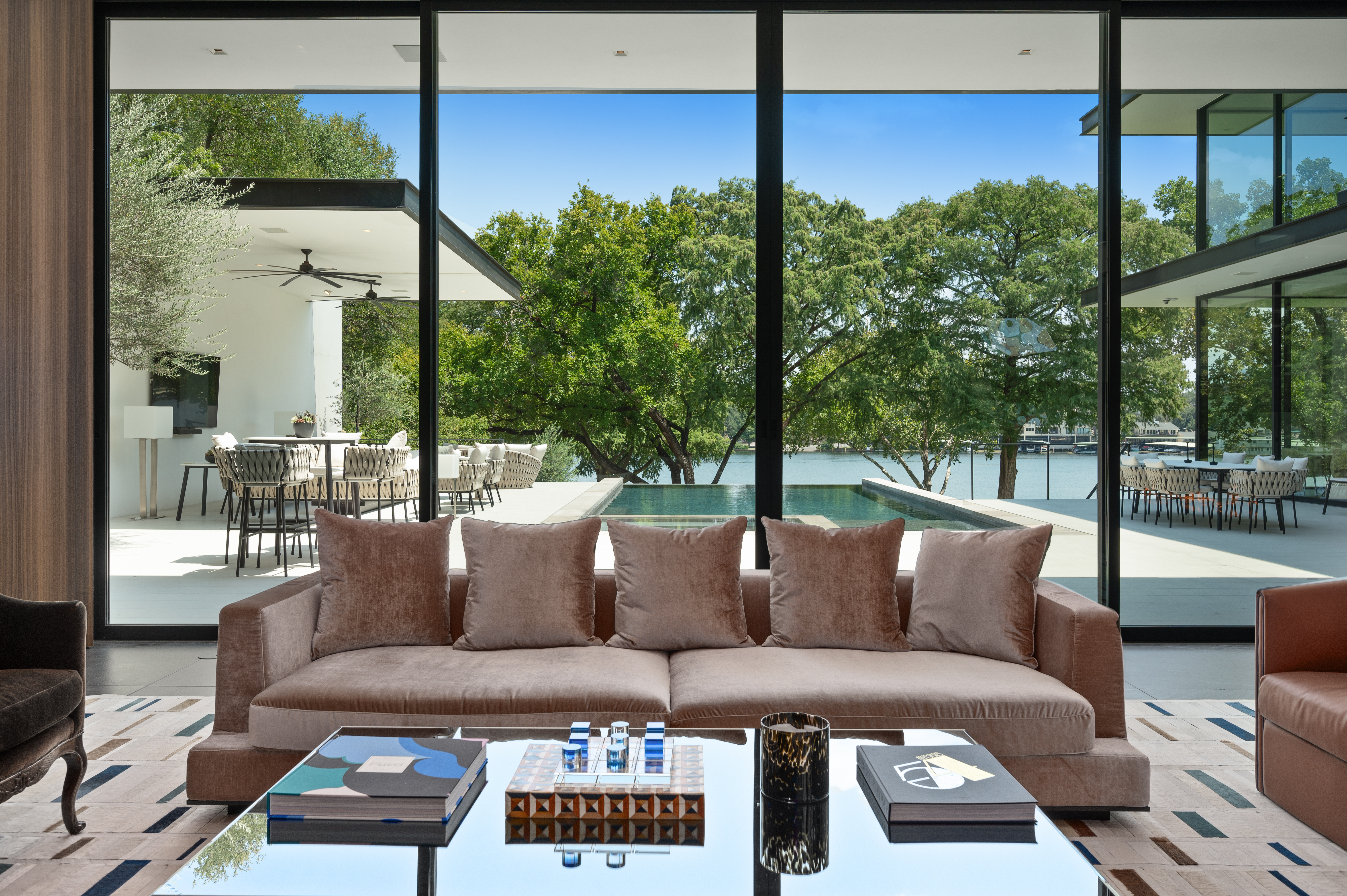 Tucked at the end of a quiet cul-de-sac on the coveted shores of Lake Austin, this estate is a rare convergence of architectural brilliance, absolute privacy, and some of the most commanding waterfront views the lake has to offer.Designed by the celebrated Matt Garcia Architecture and completed in 2019, this ±6,550 square foot modern masterpiece delivers a clean, razor-edged aesthetic that feels both effortlessly cool and deeply considered. Floor-to-ceiling glass dissolves the boundary between interior and exterior at every turn, framing 250 feet of uninterrupted lake frontage like a living work of art. Outside, ±2,200 square feet of Lueder stone decking extends the living experience to the water's edge, where a private boat slip awaits.With five bedrooms and five and a half bath's, the home is as thoughtfully functional as it is stunning. Multiple media rooms and private offices make it equally suited for focused work or immersive entertainment, while a dedicated wine room and full bar elevate every gathering. The Palm Springs-inspired grounds — punctuated by towering Medjool palms, silver-leafed olive trees, and striking saguaros — lend a resort-caliber drama that is entirely unique to this property.Close-in yet completely secluded, Lakeshore Edge is the kind of address that rarely comes available — a private sanctuary where world-class design, natural beauty, and the soul of Lake Austin exist in perfect balance.