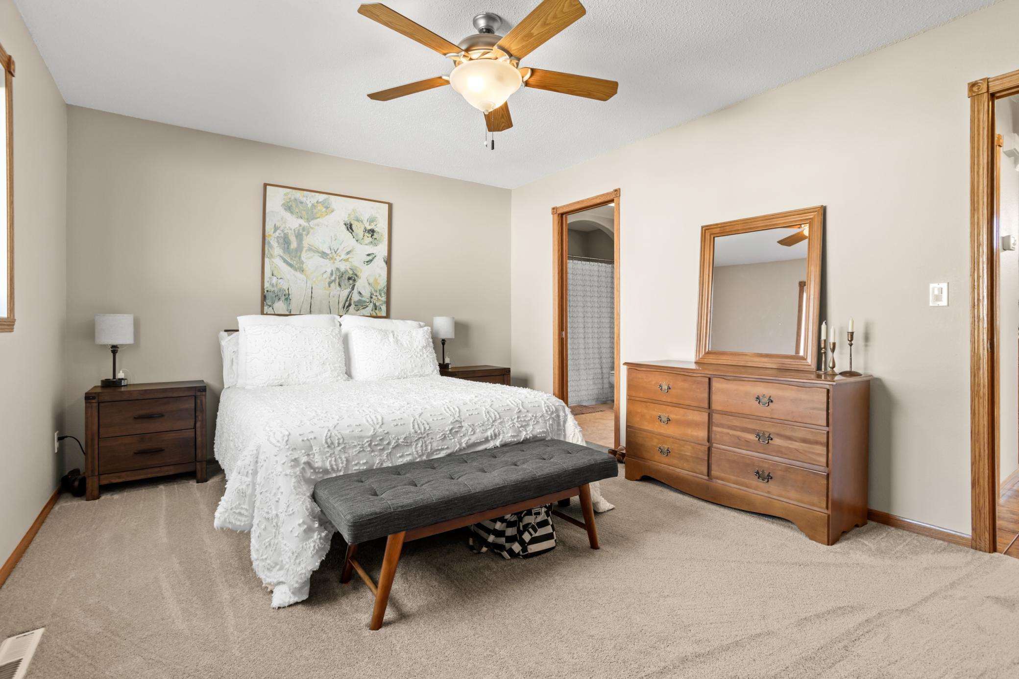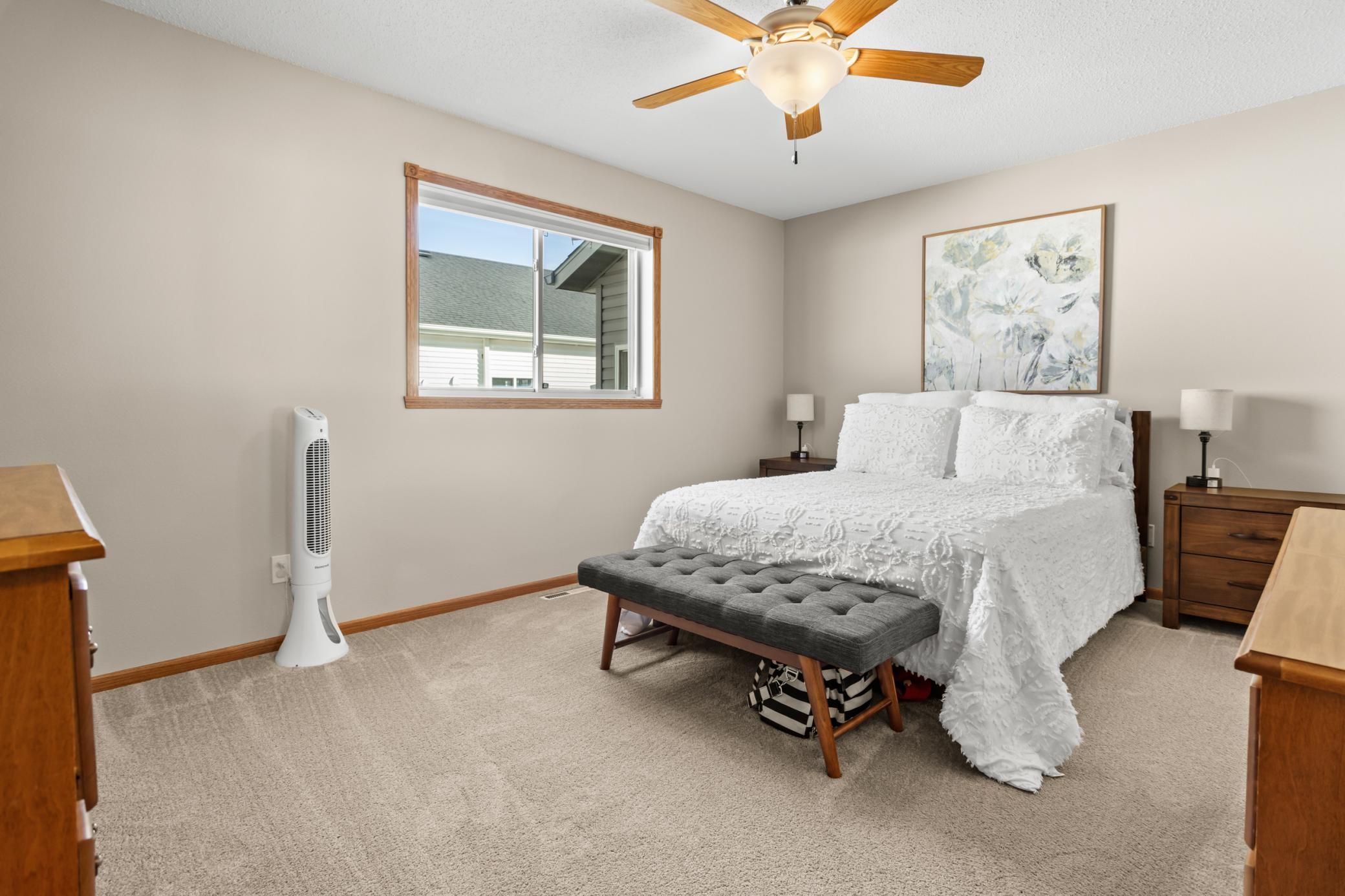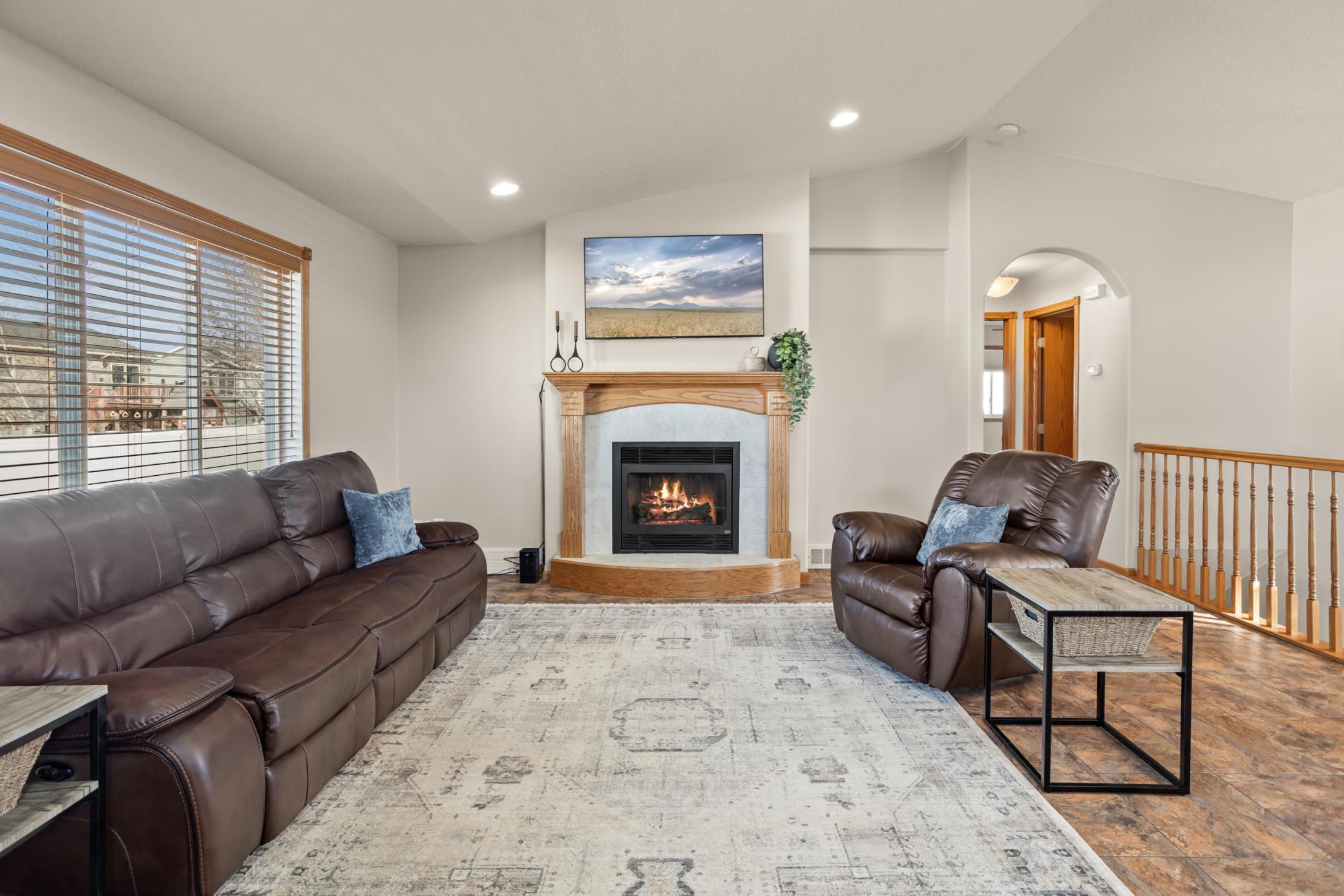 Homes like this don't come around often! This rambler is in impeccable condition and is centrally located with easy access to schools, shopping and interstate access plus there are NO SPECIAL ASSESSMENTS! On the main level you'll find an open living area with gas fireplace, kitchen island, stainless steel appliances, 2 bedrooms and a large bathroom that opens to the hallway and primary bedroom with walk-in-closet. Downstairs features a family room with a large sun drenching window, 2 more bedrooms, a huge 3/4 bathroom plus a laundry room with cabinetry, sink and access to the garage! The 3 stall garage is finished with gas heat, floor drain and service door to the backyard. Curb appeal is second to none with new maintenance free front steps, mature trees, fully fenced yard, sprinkler system AND a new 15x16 maintenance free deck with metal railing!