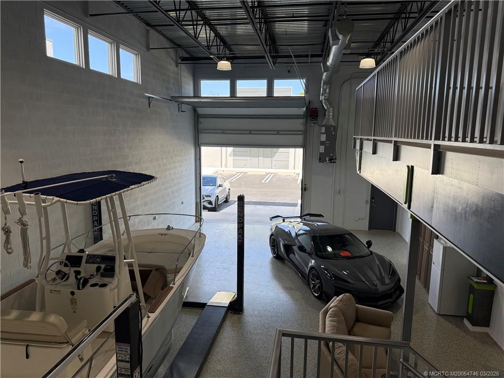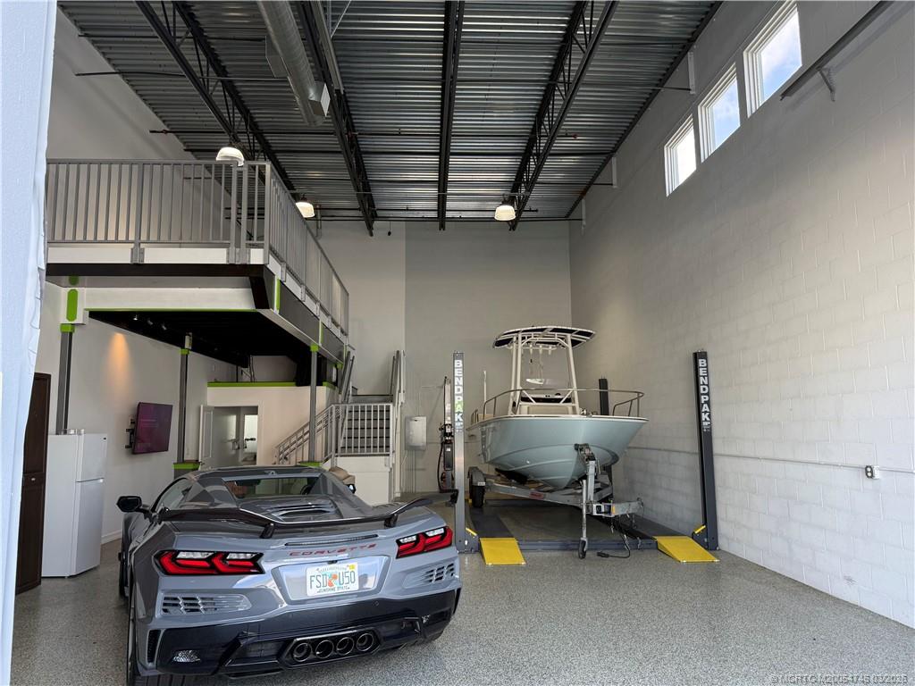 Gated, secured 28 x 50 Auto, RV Coach, Boat Storage with private bath, shower and mezzanine for additional storage. Built in 2020 it is concrete block construction with heavy duty 14' x 13' overhead electric doors, 50 amp dedicated RV outlet and insulated walls and ceilings. Fully air conditioned makes it great for storage. 7500 lb lift and large isles for easy maneuvering. Great location.
