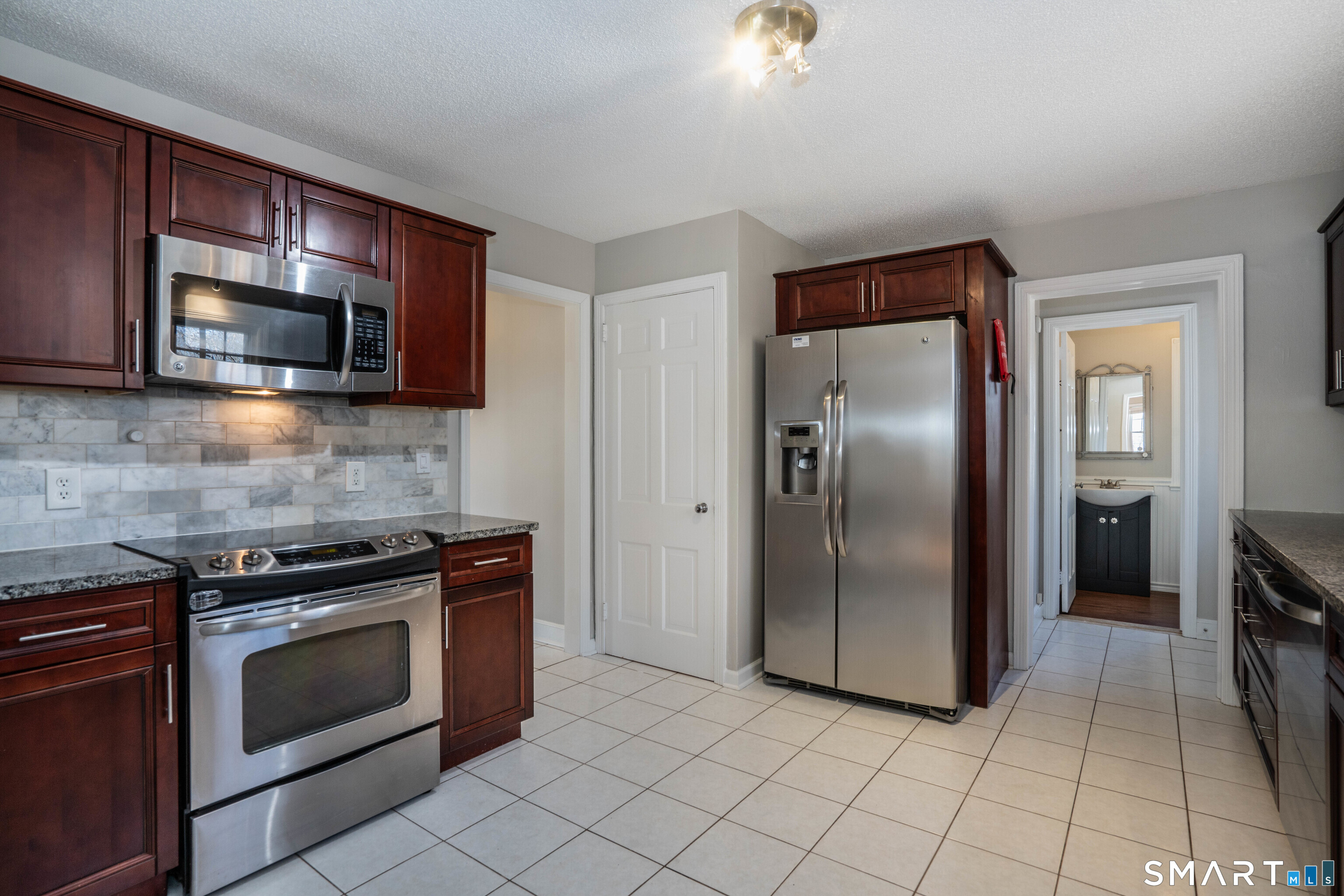 Classic colonial in a sought-after neighborhood near Morley Elementary School, with easy access to West Hartford Center and the Trout Brook Trail. This beautifully maintained home features 3 bedrooms, 1.5 bathrooms, and an attached garage. The updated kitchen offers granite countertops and stainless steel appliances, blending modern style with everyday functionality. Upstairs, you'll find generously sized bedrooms with ample closet space and a recently renovated full bath featuring both a tub and a separate standing shower. A bright sunroom opens to an updated deck overlooking the spacious backyard-perfect for entertaining, outdoor dining, or simply relaxing. The inviting living room is centered around a cozy fireplace, while a second fireplace in the lower level adds warmth and versatility. The basement provides flexible space ideal for a recreation room, home office, gym, or additional storage. Hardwood floors and fresh paint throughout create a bright, move-in-ready feel, and recent upgrades including newer windows, roof, driveway, and deck offer added peace of mind.