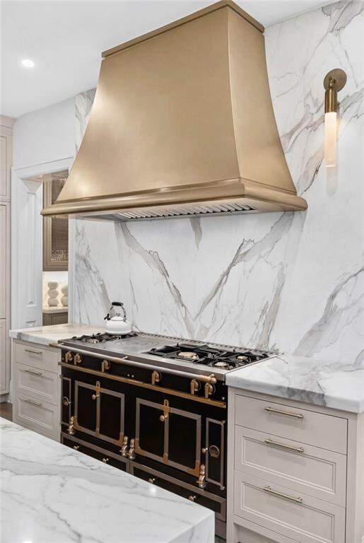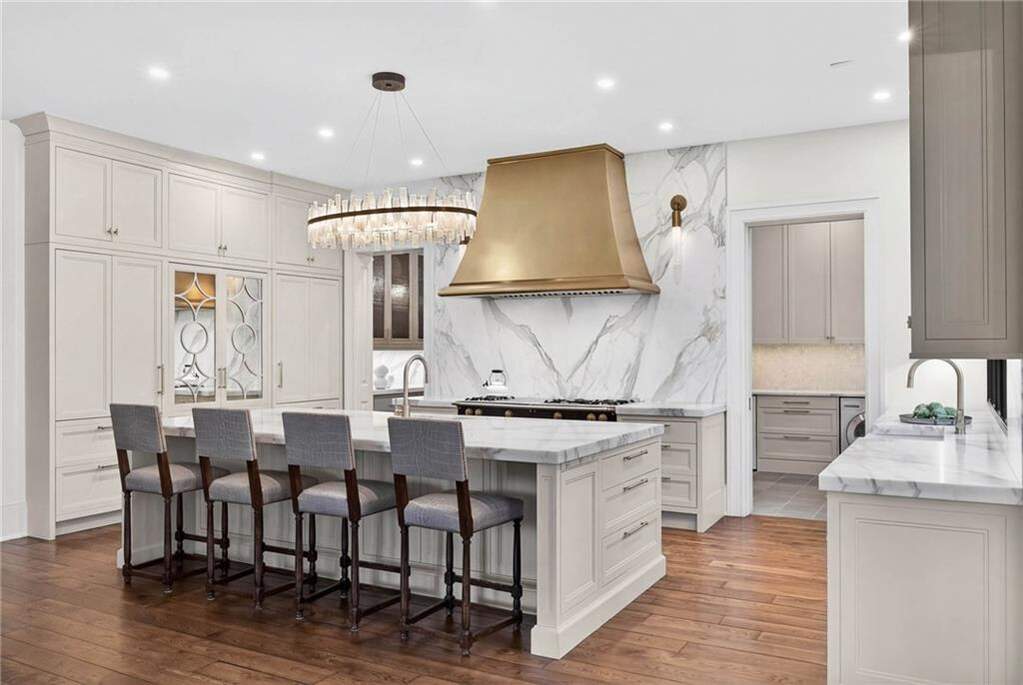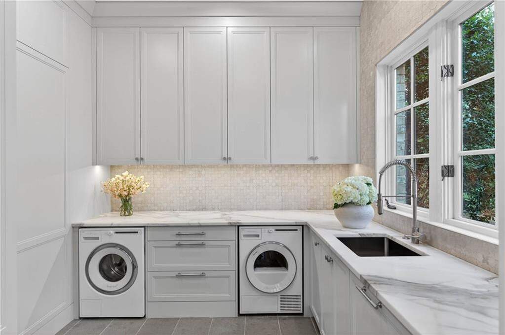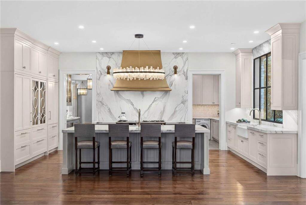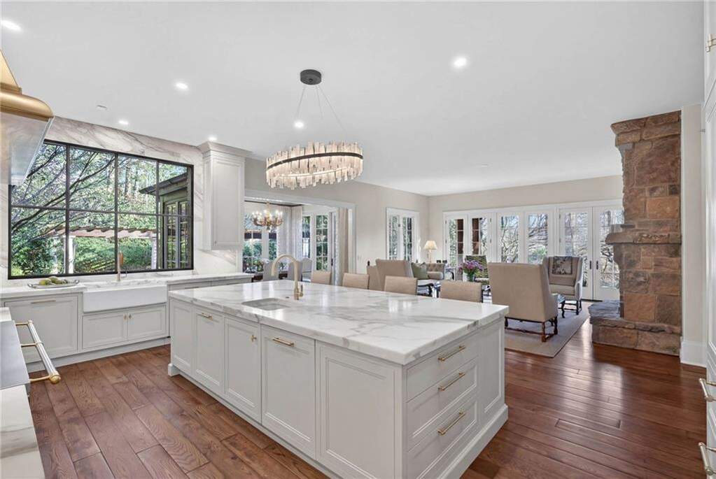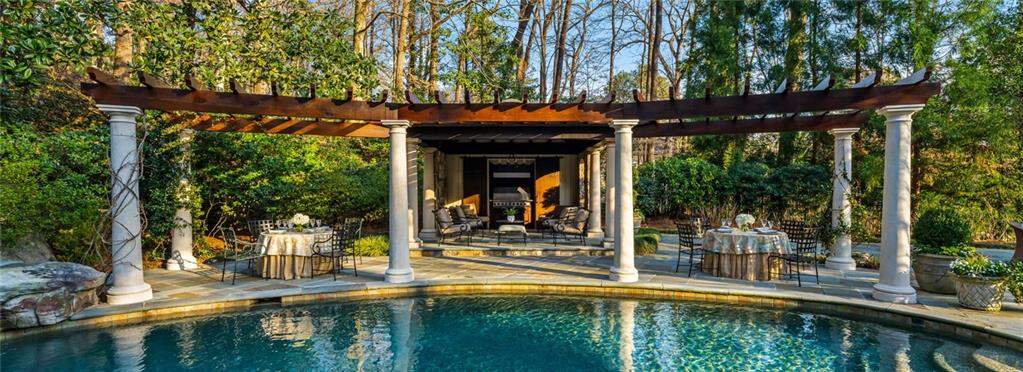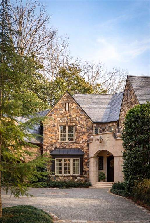 Designed by Harrison Design, this architecturally significant estate offers over 10,000 square feet of finished living space set on +/- 1.1 acres just minutes from Chastain Park in the heart of Buckhead. The home pairs timeless architecture with thoughtfully updated, modern finishes, including a beautifully renovated kitchen, walk-out pool, elevator to all three levels, and a primary suite on the main level. Fieldstone, brick, and precast stone construction, exterior beams milled onsite, and a Vermont slate roof establish enduring craftsmanship, while a four-car garage and strong setback create a private, estate-like presence. The kitchen was recently designed by Design Galleria and anchors the main level with a custom La Cornue range, Apparatus lighting, two Sub-Zero refrigerators, dual freezer drawers, three dishwashers, eight slabs of bookmatched marble, and a solid brass hood by Francois & Co. A separate back kitchen with third oven, additional refrigeration, and integrated laundry was designed for effortless entertaining. The fireside primary suite on the main level features raised barreled ceilings, custom old-world plaster detailing and a Waterworks-appointed bath with heated floors, dual closets, vanities, and water closets. The main level offers both a formal living room and dining room, richly-appointment library, and a family room that opens to the kitchen and breakfast room overlooking the pool. All three spaces flow seamlessly to a covered porch designed for indoor-outdoor living. Upstairs four generously proportioned bedrooms all live like suites, complemented by a secondary laundry, lounge convertible to a sixth bedroom, separate office, and additional flex space with separate exterior access. The terrace level offers a custom 2,500-bottle wine cellar featuring reclaimed antique wood 12th-century Spanish doors and a gym. Additionally, the home offers approximately 3,000 square feet of unfinished space stubbed for plumbing, HVAC, and electrical, with elevator access. Outdoor living includes a heated saltwater pool, cabana, bluestone terrace, and an outdoor fireplace that feels like a private resort retreat. Mature landscaping enhances the home's exceptional privacy. A rare combination of architectural pedigree, meaningful renovation, and resort-style living in the heart of Buckhead.
