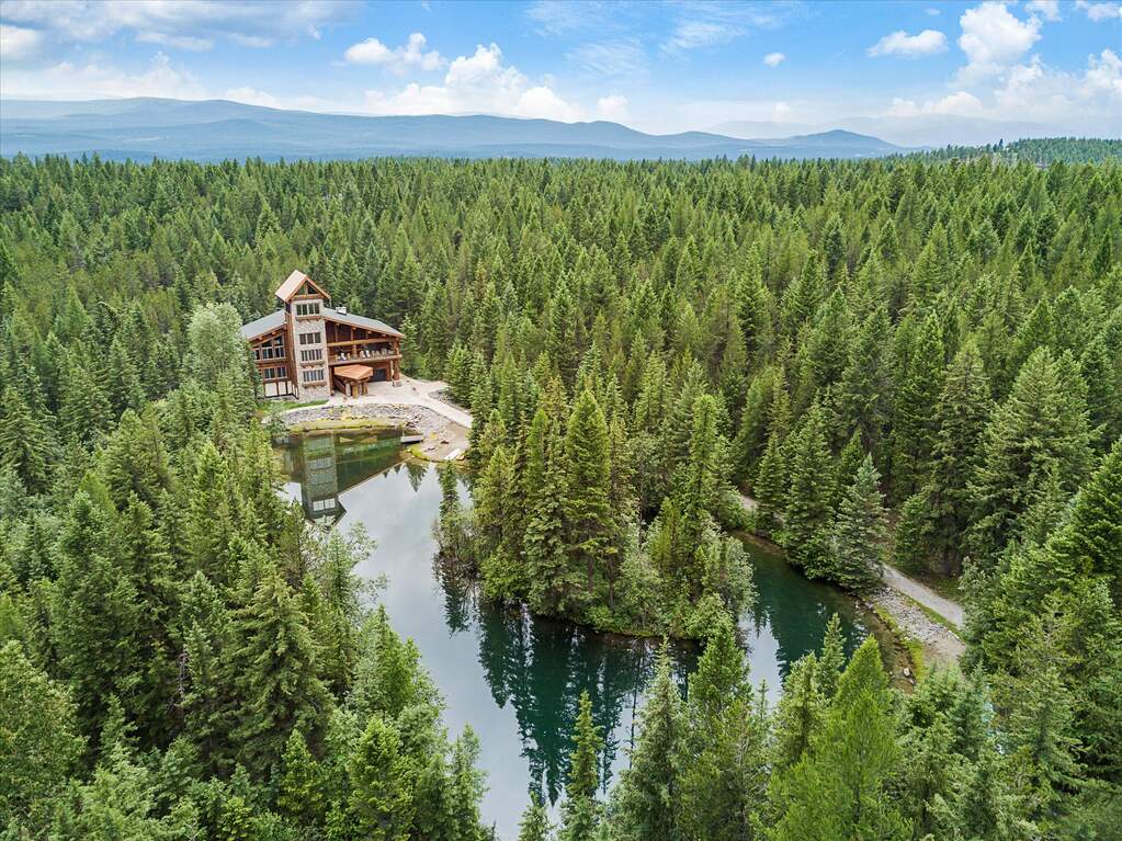 A Montana Masterpiece in the Heart of the Rockies Where craftsmanship, and breathtaking scenery come together on 49 pristine, landscaped acres. This custom-built estate is truly one-of-a-kind, showcasing massive Canadian Larch logs, copper detailing, and artistic wood accents throughout. At the heart of the property is the awe-inspiring Main Lodge, w soaring fireplaces, firewood pulley system, and the showstopping "Tower Table"-a rotating dining experience designed to take in panoramic views of the surrounding mountains and iconic Therriault Pass. Every window frames a new postcard-worthy vista. Step outside and nature becomes your playground. Native birds & deer surround the spring-fed ponds to the tranquility of Therriault Creek winding through over 3,400 feet of groomed forest frontage. Explore scenic walking trails, go fishing, hike nearby peaks, or simply soak in the quiet beauty of this one-of-a-kind retreat. Versatile and Smart Investment Potential This estate is more than just a home-it's a lifestyle with income potential. The property includes: Main house/lodge over 6900 sq feet. A massive 7,000 sq. ft. heated shop A 5,000 sq. ft. warehouse Income-generating mini rental storage units 3 large charming guest cabins and a full-size cottage, all fully equipped with bathrooms, queen beds, Wi-Fi, and modern amenities 2 additional cabins are ready to be completed Whether you're hosting friends, running a luxury rental retreat, wedding venue, spiritual retreat, Bike retreat, horse riding business or looking for a multi-use compound, this property delivers flexibility and financial opportunity. Additional Features You'll Love: Horse-ready fenced pasture with shed and creek access Heated garage with treated flooring Large 24x12 walk-in pantry in Main House Service elevators for added convenience Potential for future homesites/glamping or campsites on the second trout pond property. Every acre of this estate offers something new to discover. If you're ready to experience mountain living at its finest-with all the space, luxury, and opportunity you could ask for.