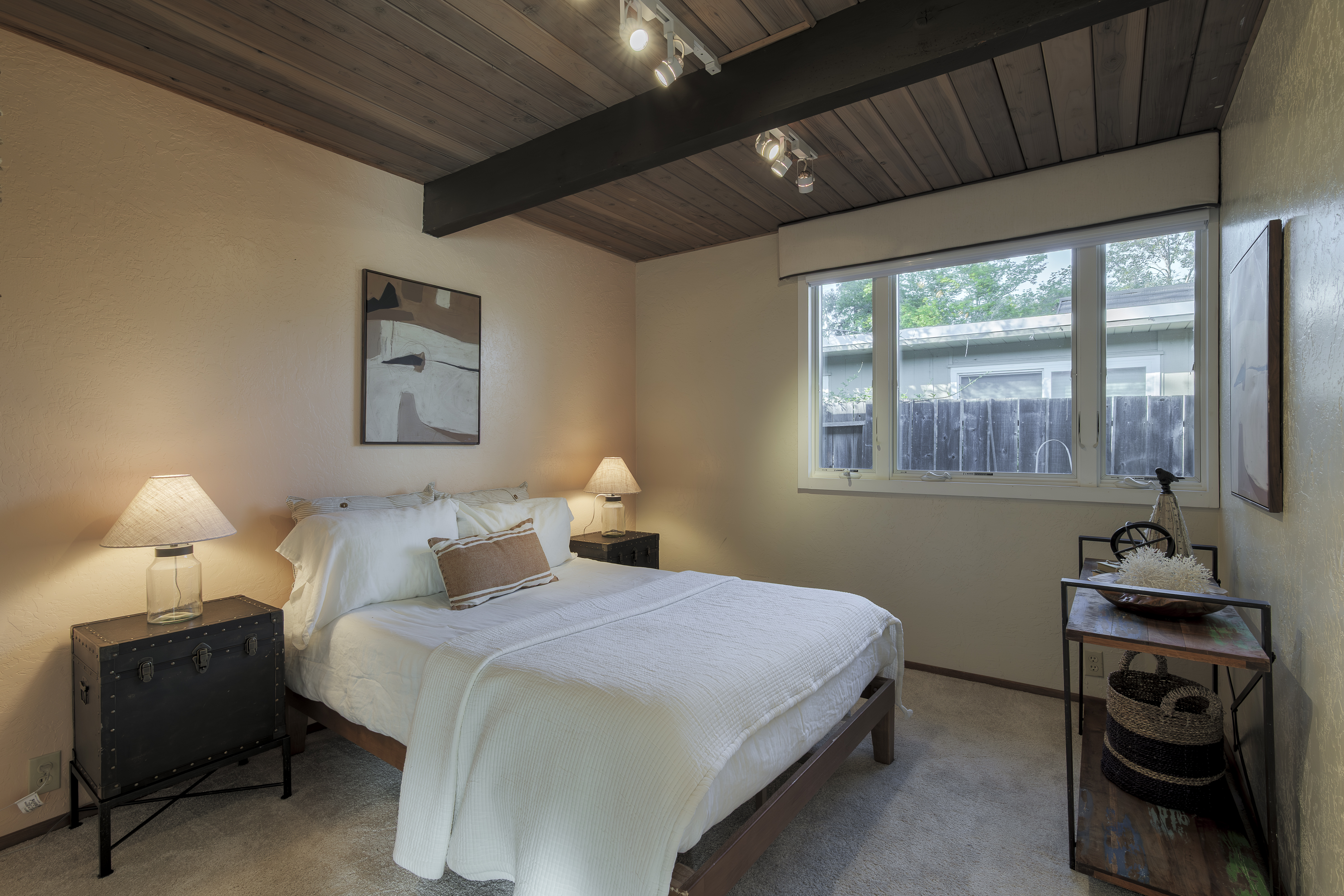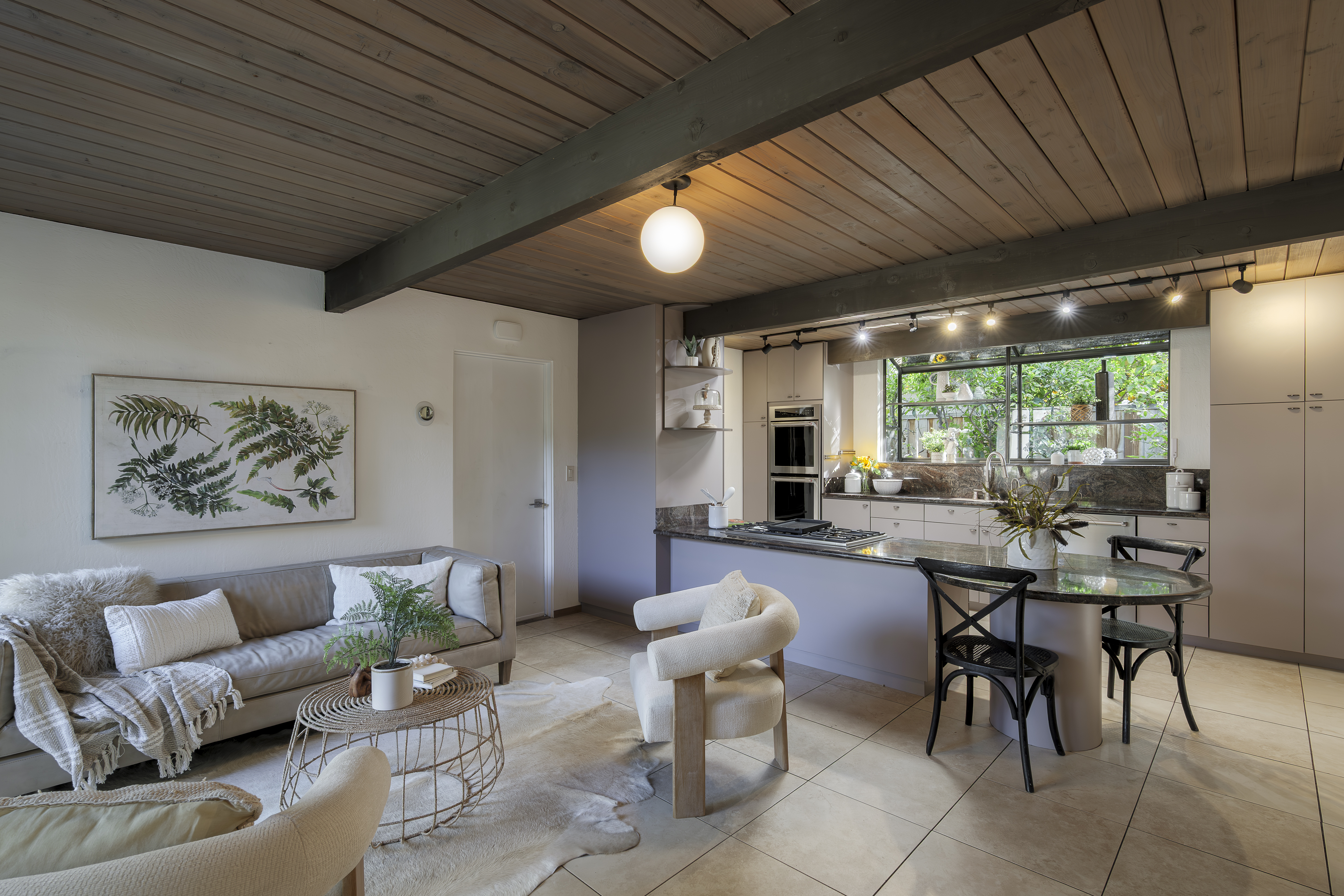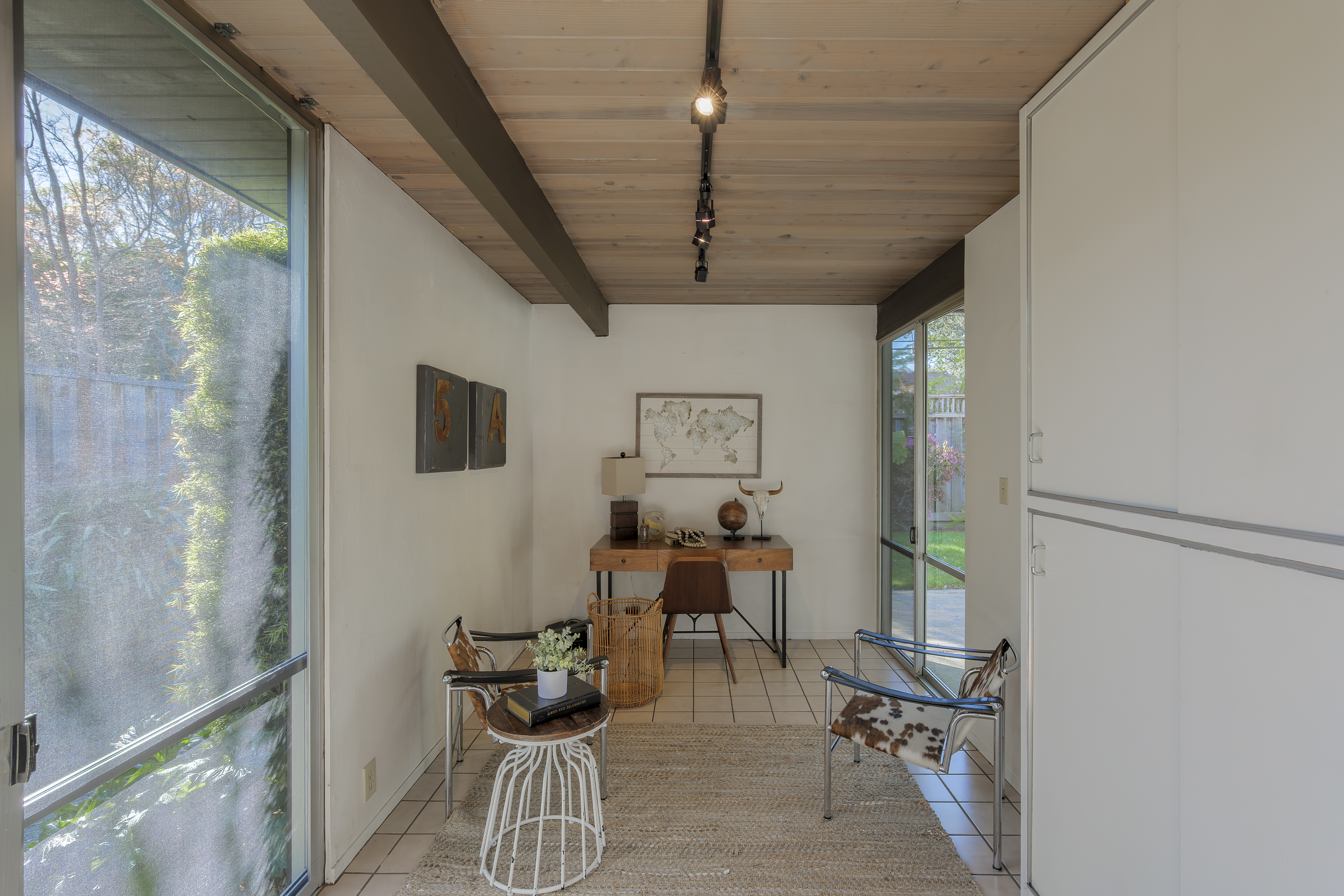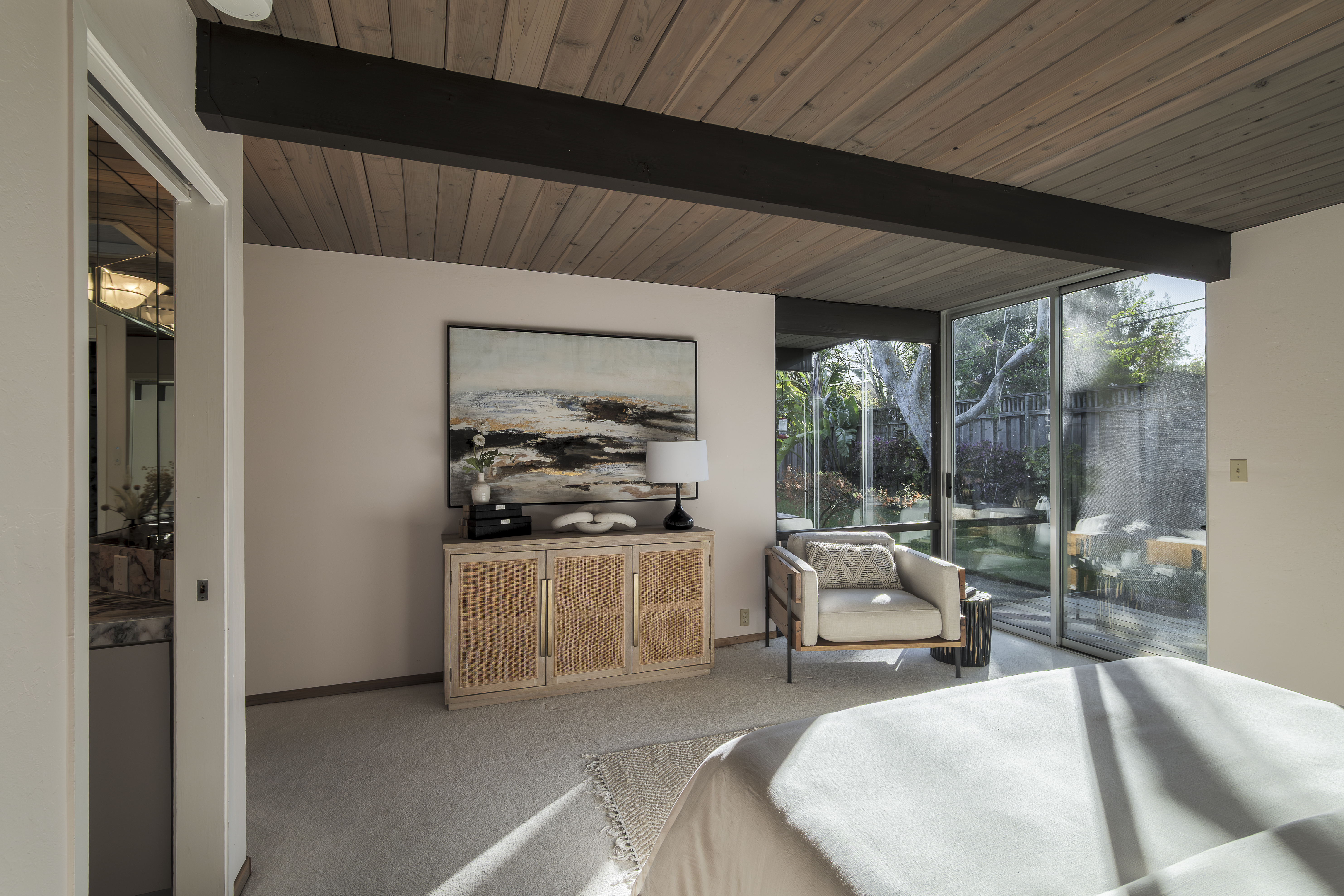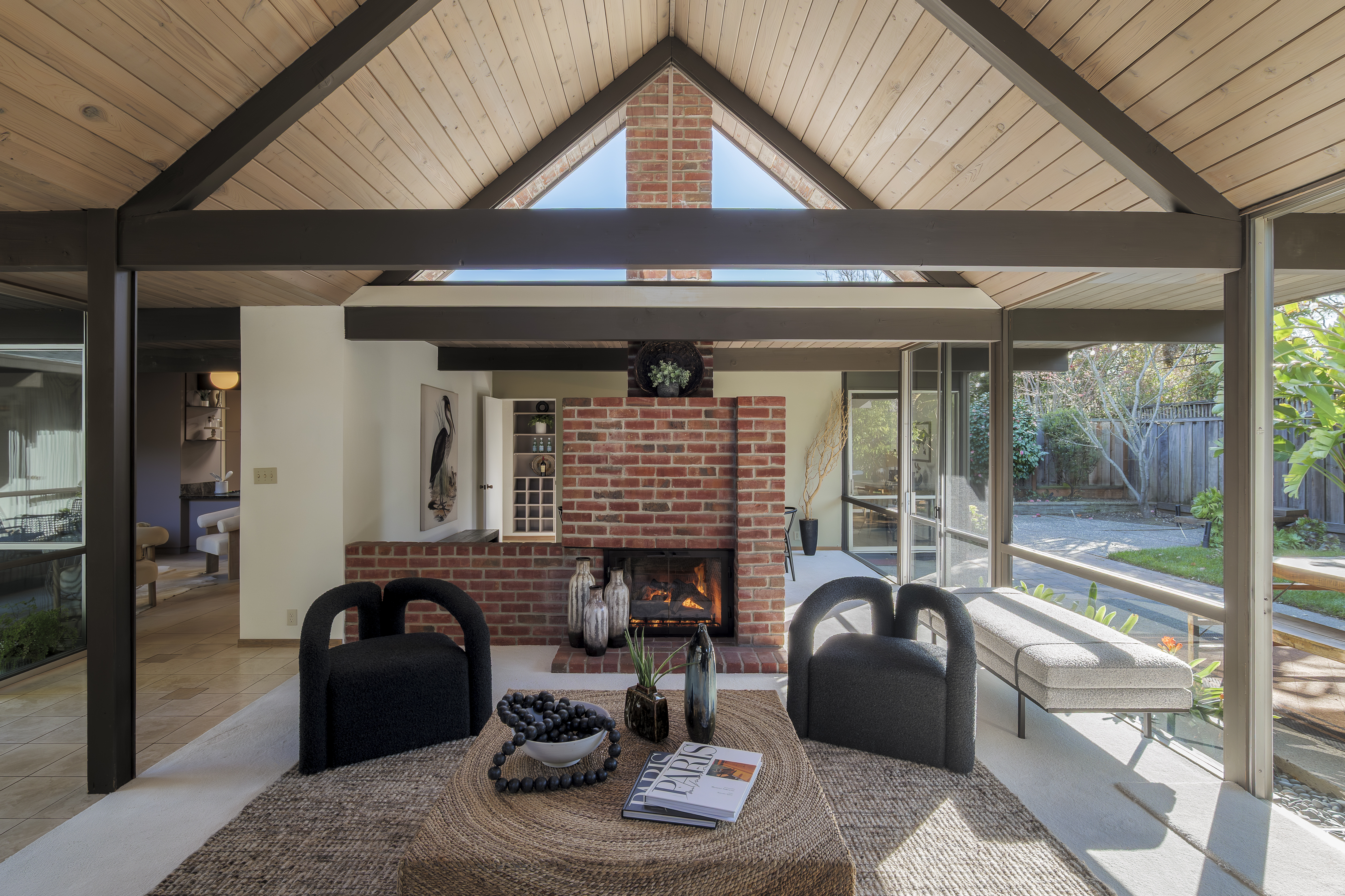 Located in the heart of Sunnyvale, this classic Eichler Atrium residence embodies the timeless appeal of mid-century modern design. The home features 4 bedrooms, 2 bathrooms, and a flexible bonus room that can easily serve as a home office or creative studio.The open-concept layout is filled with natural light and highlights the architectural elements Eichler homes are known for. Vaulted open-beam ceilings, expansive floor-to-ceiling glass, radiant heated floors, and a brick gas fireplace create a warm and inviting atmosphere throughout the main living areas.At the center of the home, the signature open-air atrium provides a striking architectural focal point and seamless indoor-outdoor connection, with sliding glass doors that invite light and fresh air into the surrounding living spaces.The kitchen and adjacent family area preserve the home’s original Eichler character while offering modern functionality. Features include granite countertops, a kitchen island with a built-in dining table, ideal for casual dining and entertaining, stainless steel appliances, and a spacious walk-in pantry.The primary suite offers a walk-in closet, sliding doors to the back garden and a private ensuite bath. Three additional bedrooms and a hall bath complete this fabulous floor plan.Outside, the property is surrounded by mature trees and lush landscaping. The backyard offers a tranquil setting with generous decking, ideal for outdoor dining, entertaining, or simply enjoying the peaceful surroundings.Conveniently located near Cumberland Elementary, highly regarded Homestead High School, Las Palmas Park, Sunnyvale Library, Caltrain, major commute routes, and many of Silicon Valley’s leading employers.