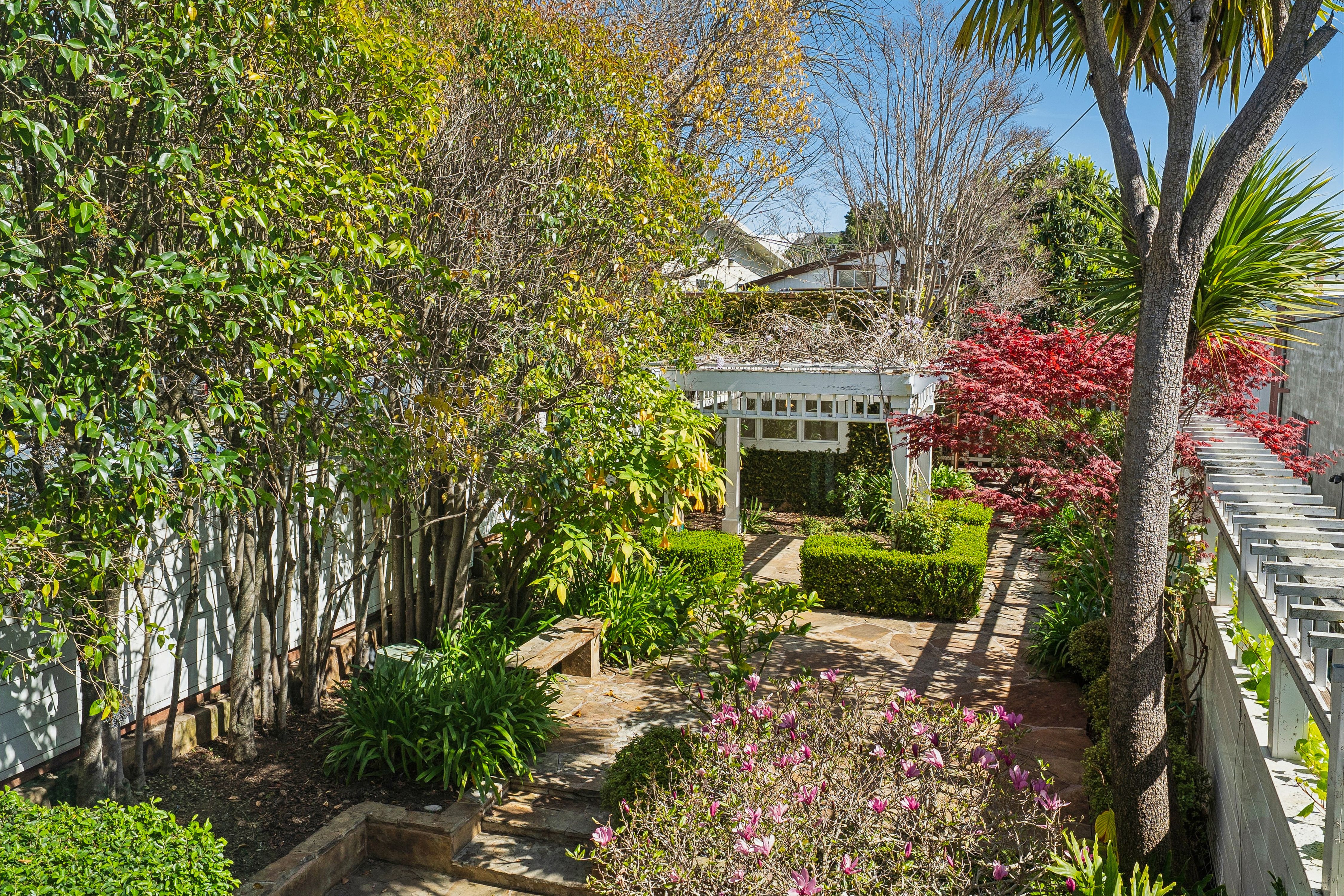 Located in the coveted West End of San Rafael, this beautifully preserved 1907 triplex offers an exceptional lifestyle in one of the city’s most beloved neighborhoods. With easy access to Highway 101, the San Rafael Transit Center, the SMART Train, and an abundance of outstanding restaurants and shopping, this prime location puts everything you need within easy reach. Tastefully updated and meticulously maintained, the property offers exceptional versatility for a variety of living and investment possibilities. Unit 102, the main residence, lives like a single-family home with three bedrooms and two baths and is currently vacant, presenting an incredible opportunity for an owner-user. The recently refreshed interior feels both timeless and inviting, with open-concept living spaces that flow seamlessly for comfortable everyday living and effortless entertaining. The primary suite serves as a true retreat, featuring an updated bath, a generous walk-in closet, and a beautiful window overlooking the garden. Downstairs are two substantial bedrooms with large closets, along with a well-appointed hall bath. Outside, the sun-soaked backyard offers a peaceful garden setting for relaxing and entertaining, highlighted by a shaded pergola draped in gorgeous wisteria, along with a stunning tulip magnolia and graceful Japanese maple. Completing the property is a spacious detached studio, ideal for a private home office, creative workspace, or quiet retreat. Two additional units provide established rental income. Unit 102A is a sunlit upper-level studio featuring an open kitchen and a beautifully remodeled bath. Unit 102B, set back from the street with its own gated entry, is a cozy one-bedroom, one-bath residence with a kitchen that opens directly to a private patio, creating a wonderful indoor-outdoor connection. Each unit includes its own laundry, and the property offers a two-car garage along with ample street parking. Altogether, this special property presents a rare opportunity for flexible living, rental income, or a compelling long-term investment.