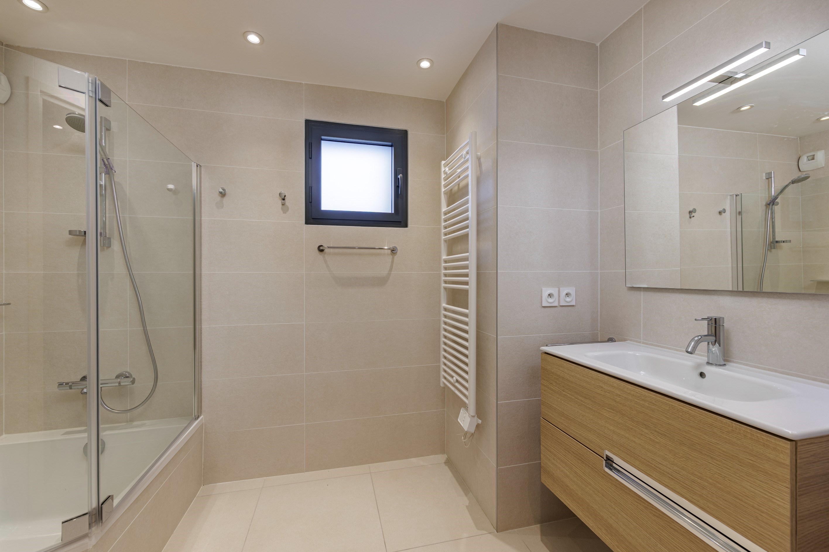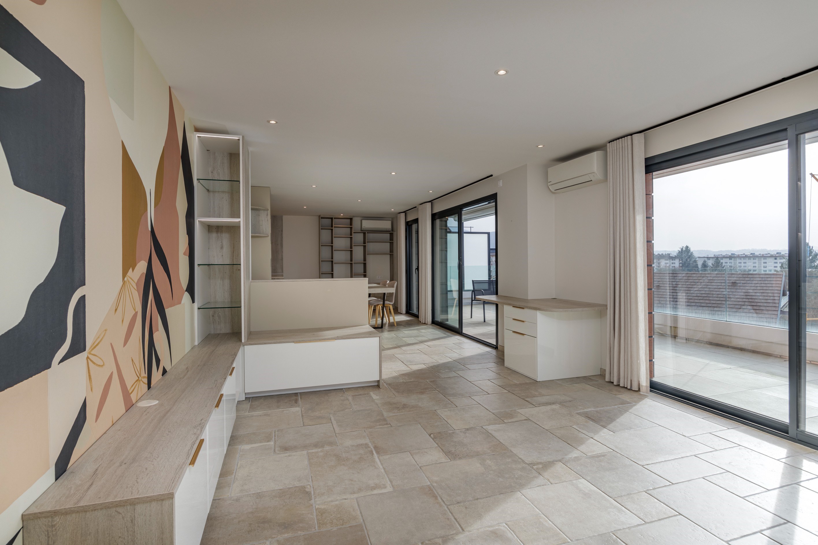 ANNECY SOTHEBY'S INTERNATIONAL REALTY presents this superb modern penthouse apartment measuring 119 m² (Carrez law), including 50 m² of terraces, located on the top floor of a small, recent luxury residence in a quiet and sought-after area of Annecy-le-Vieux. The apartment is composed as follows : an entrance hall leading to a large, bright 45 m² living and dining room with a fully equipped open-plan kitchen. The living area opens onto a first 30 m² south-west facing terrace with unobstructed views. The apartment has two separate sleeping areas. The master bedroom comprises a 16 m² suite, a large 7 m² dressing room, a private shower room and access to a second 20 m² terrace facing east. The second sleeping area consists of two additional 12 m² bedrooms with terrace access and a separate bathroom. All bedrooms have built-in wardrobes, air conditioning and a desk area. A laundry room also completes this property. In addition, you will benefit from a cellar on the ground floor and three motorised garages in the basement, accessible directly from inside the residence. Located in a recent residence completed in 2022, this apartment guarantees peace and comfort, with no nuisances and no work required. ANNECY SOTHEBY'S INTERNATIONAL REALTY, your expert in the sale and rental of luxury properties in the Annecy basin and the Aravis.