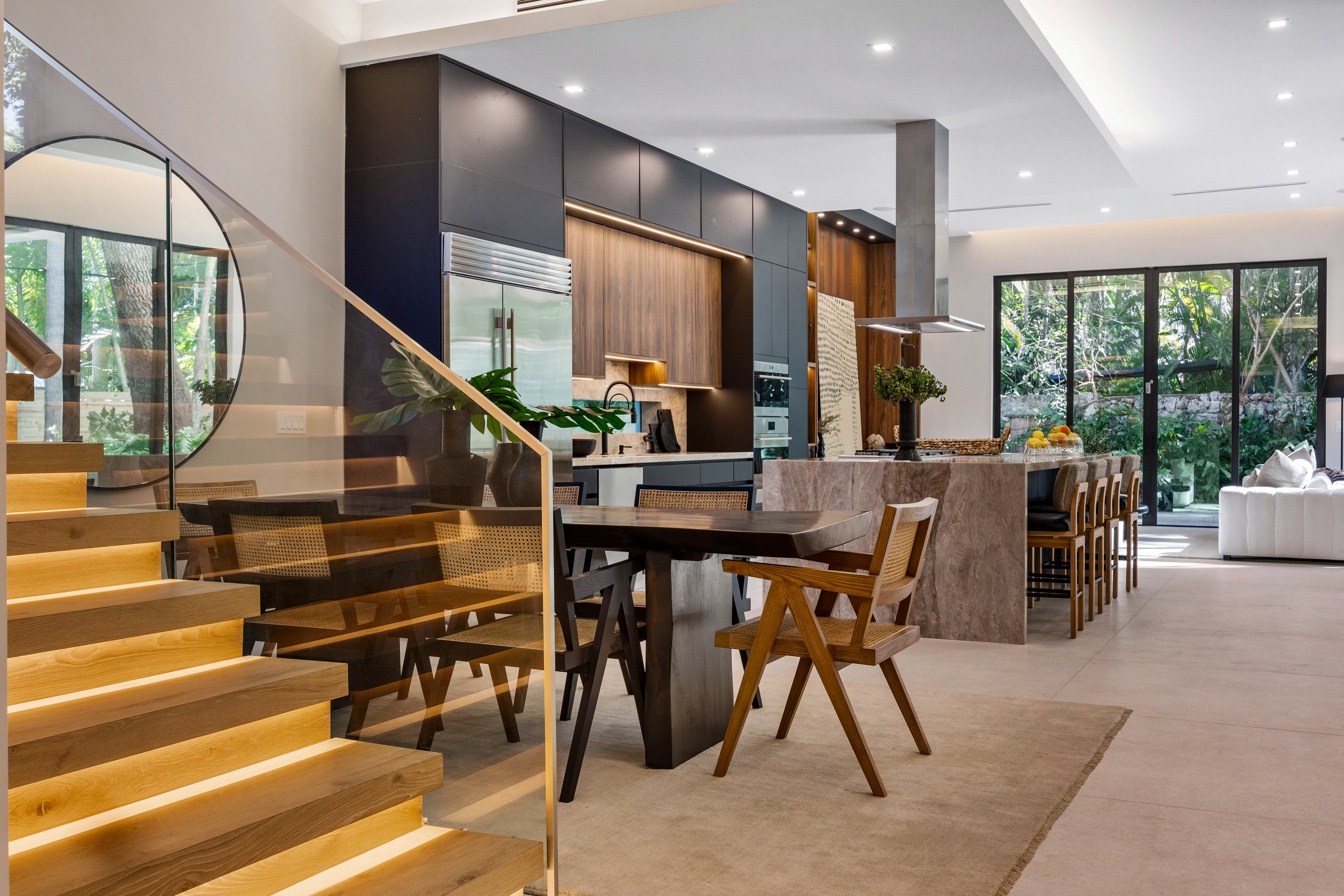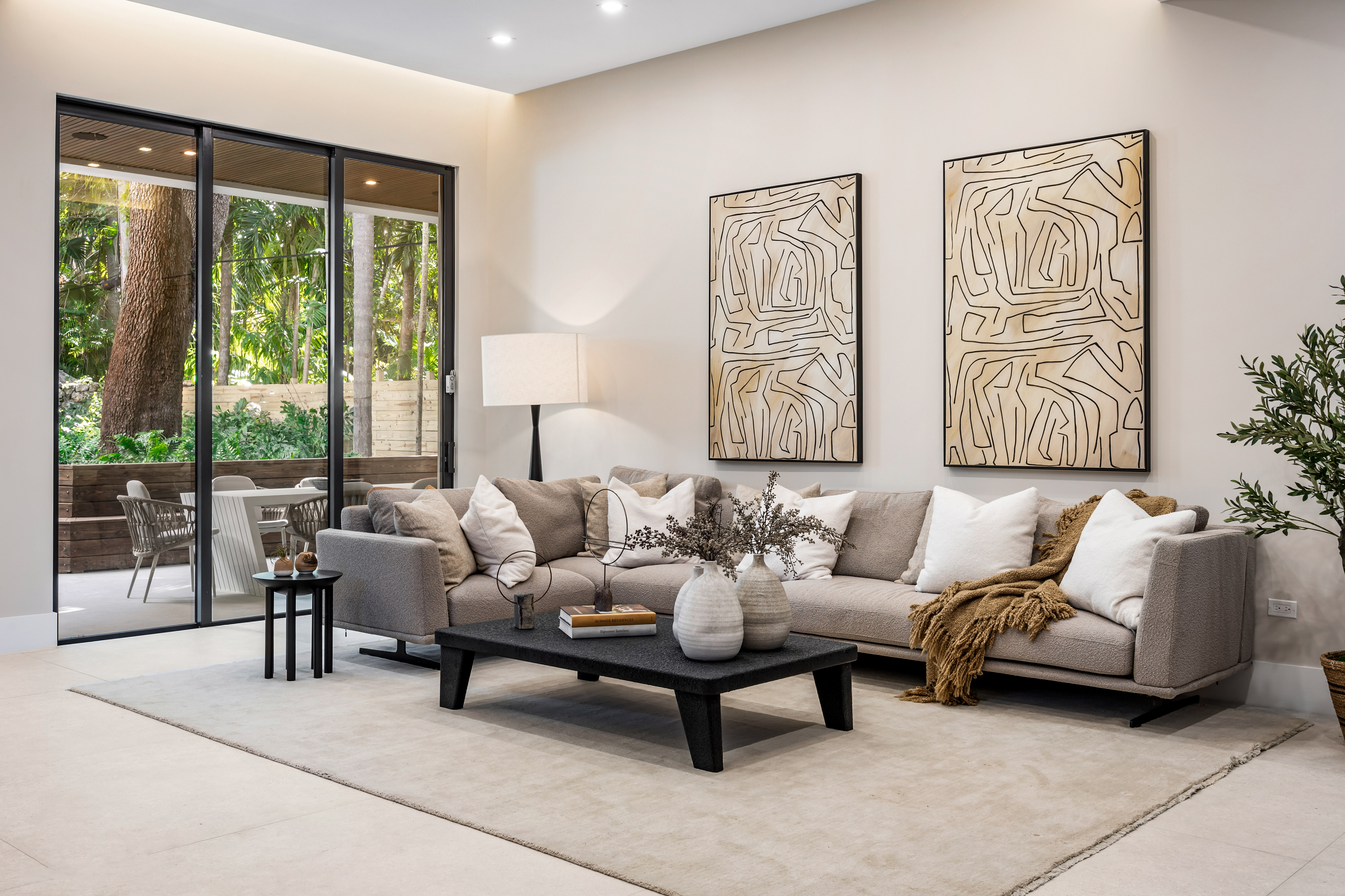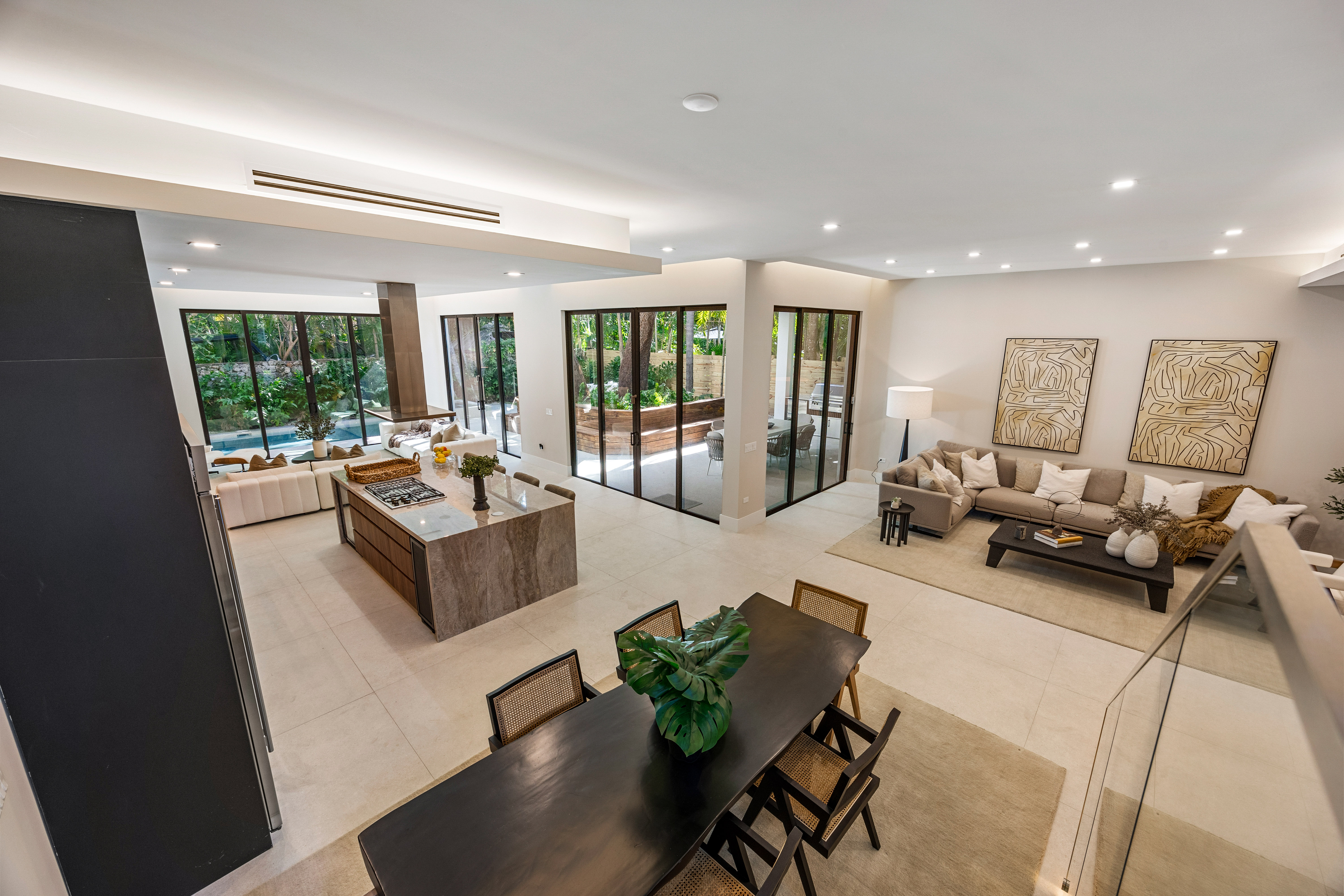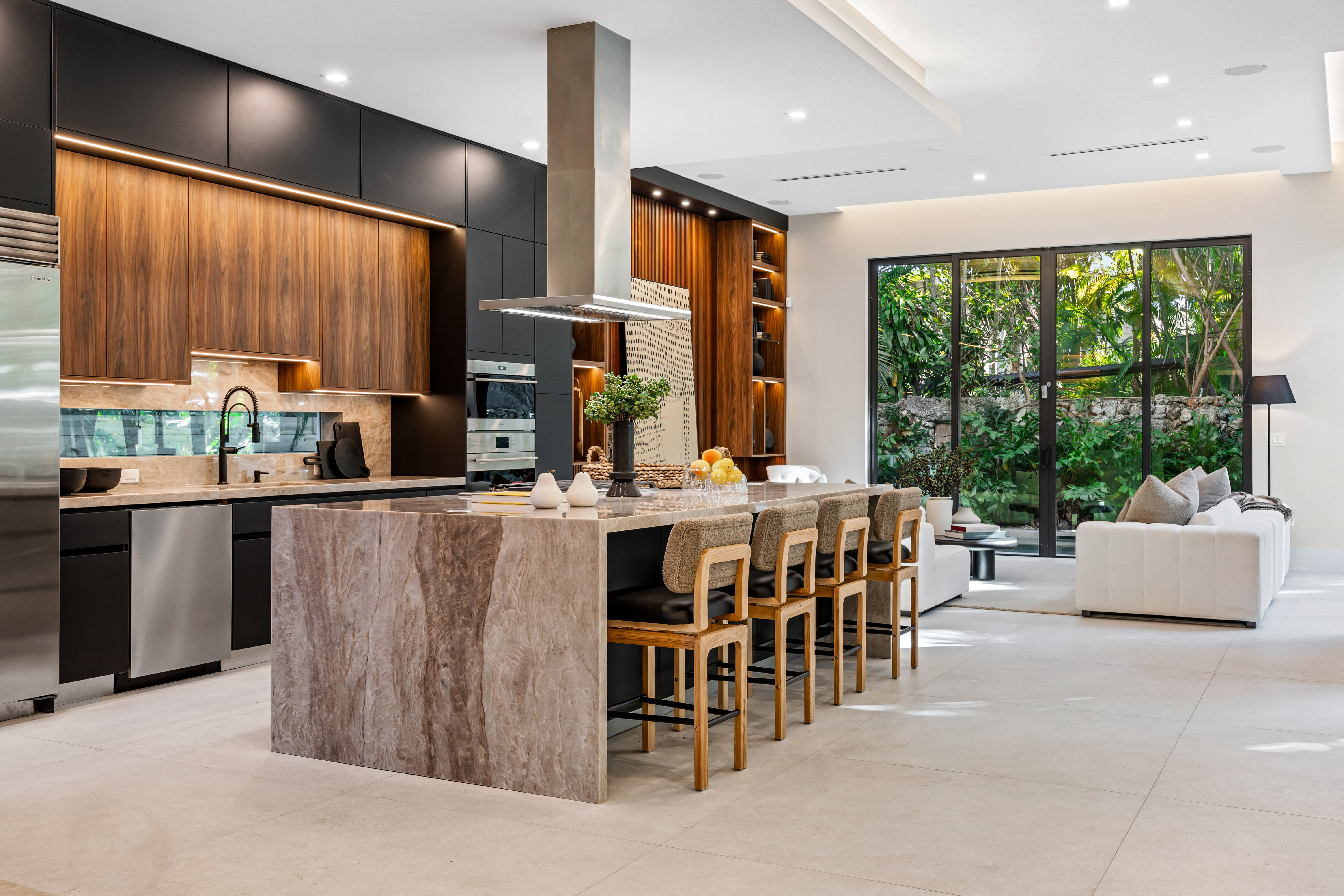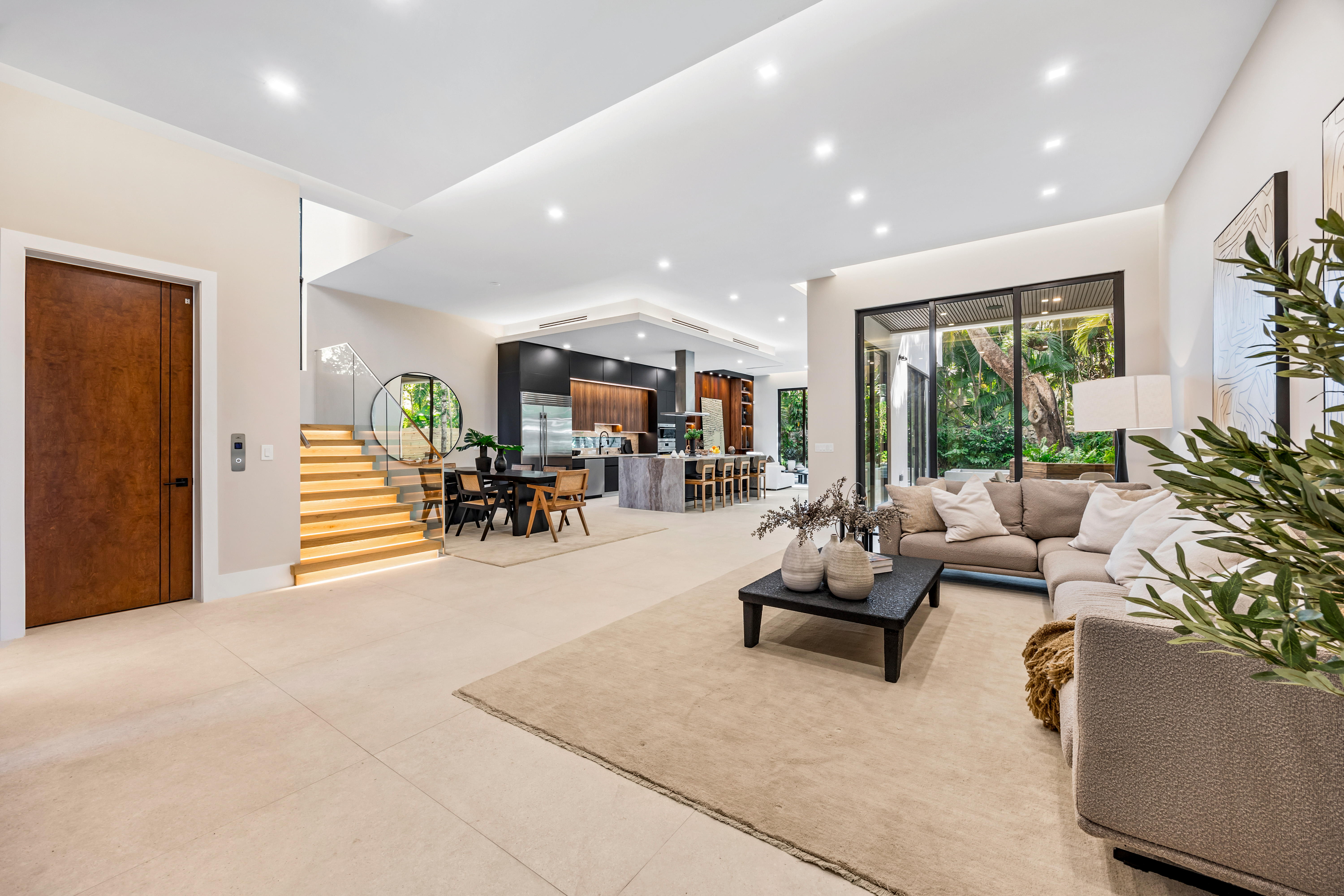 Northeast Coconut Grove is prized for its lush, tree-canopy streets, bayside parks and marinas, and a true “village” lifestyle—close to CocoWalk, celebrated dining, boutique shopping, weekend markets, and top-rated schools, with easy access to Metrorail and Downtown/Brickell. Stunning newer-construction 5-bedroom, 5.5-bath home that blends clean modern design with seamless indoor/outdoor living. Bright, open interiors with expansive sliding glass, designer finishes, and an entertainer’s chef’s kitchen with premium appliances and an oversized island. Elevator, ample storage, and a 2-car garage add everyday convenience. The backyard is a private tropical retreat under a majestic oak, featuring a narrow rectangular plunge/lap-style pool with an attached raised square spa and spillover water feature at the far end, plus a summer kitchen for effortless al fresco dining and entertaining. New furnishing is being updated by 02/13.