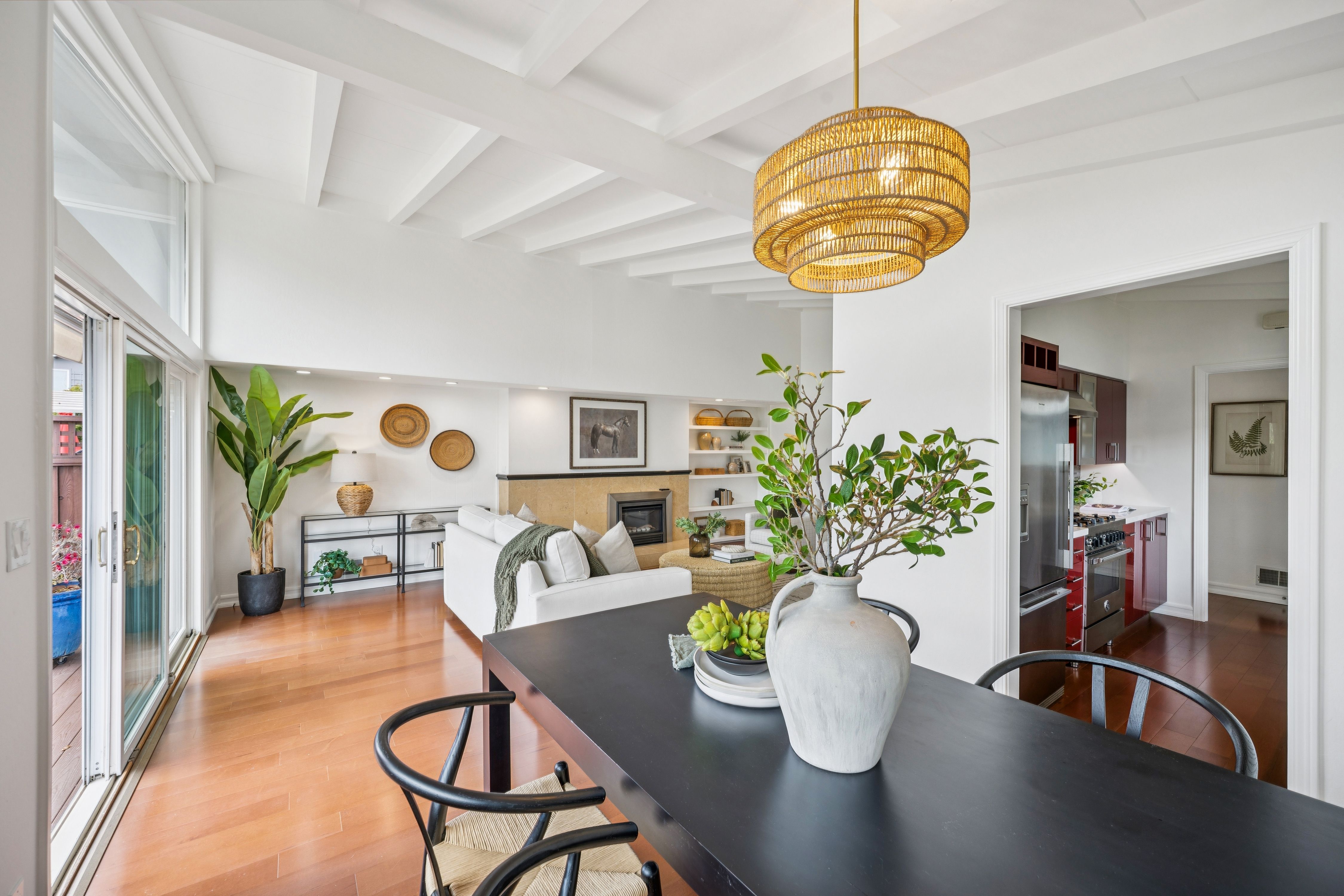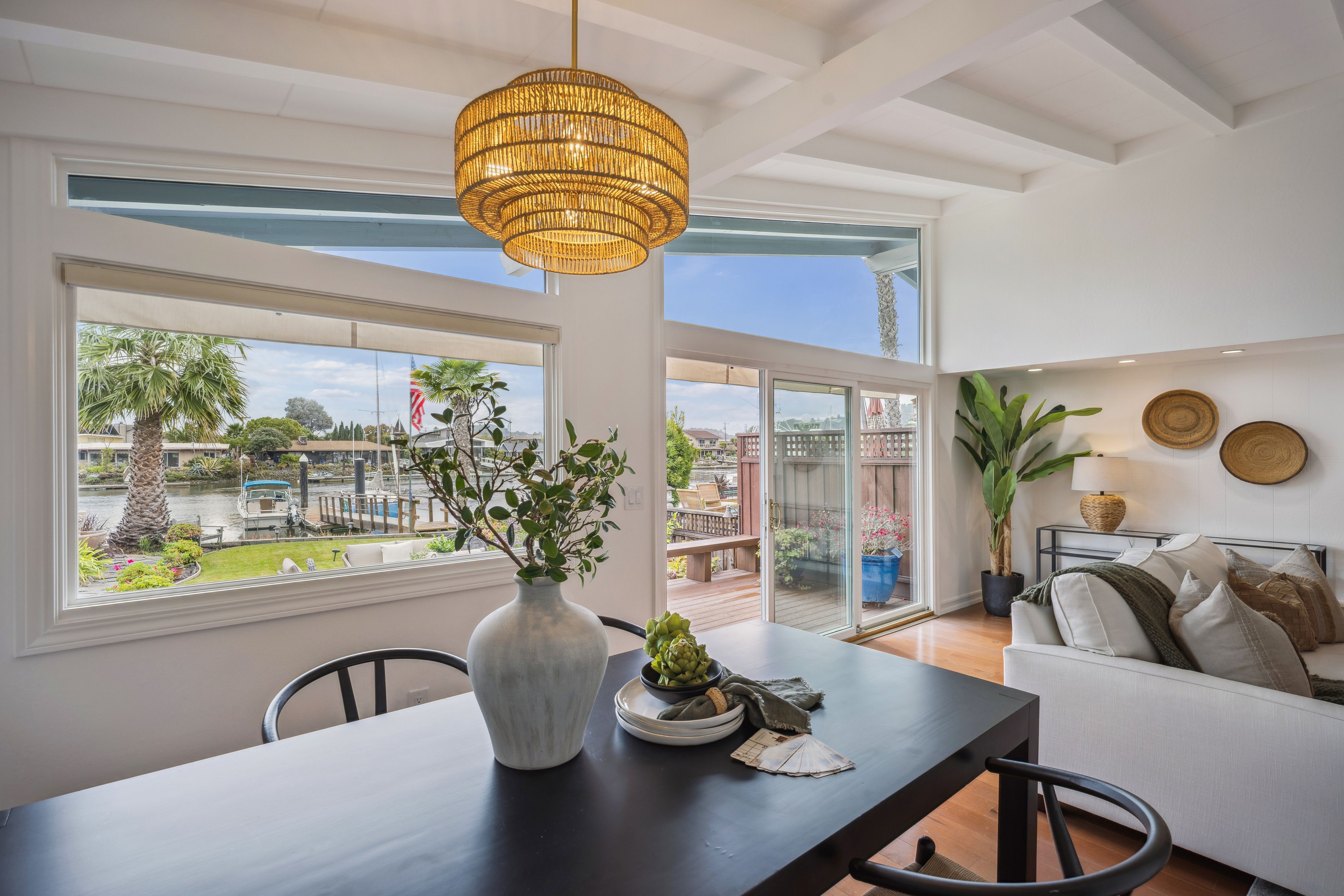Single-level waterfront living at Loch Lomond. This light-filled two-bedroom, two-bath home frames sparkling marina views from the main living spaces and opens to an expansive waterside deck—perfect for morning coffee, sunset dinners, and effortless indoor–outdoor living.The open-concept great room features a timeless kitchen with generous counter space and seamless flow for entertaining. Both bedrooms are tranquil retreats; the primary suite includes an ensuite bath and slider to the deck.A rare private boat dock just steps from your door invites spontaneous cruises and bay adventures. With level access, ample storage, in-home laundry, and dedicated parking, everyday life stays easy. Moments to the Loch Lomond promenade, markets, parks, and shoreline paths—this is Marin’s waterfront lifestyle, simplified and refined.