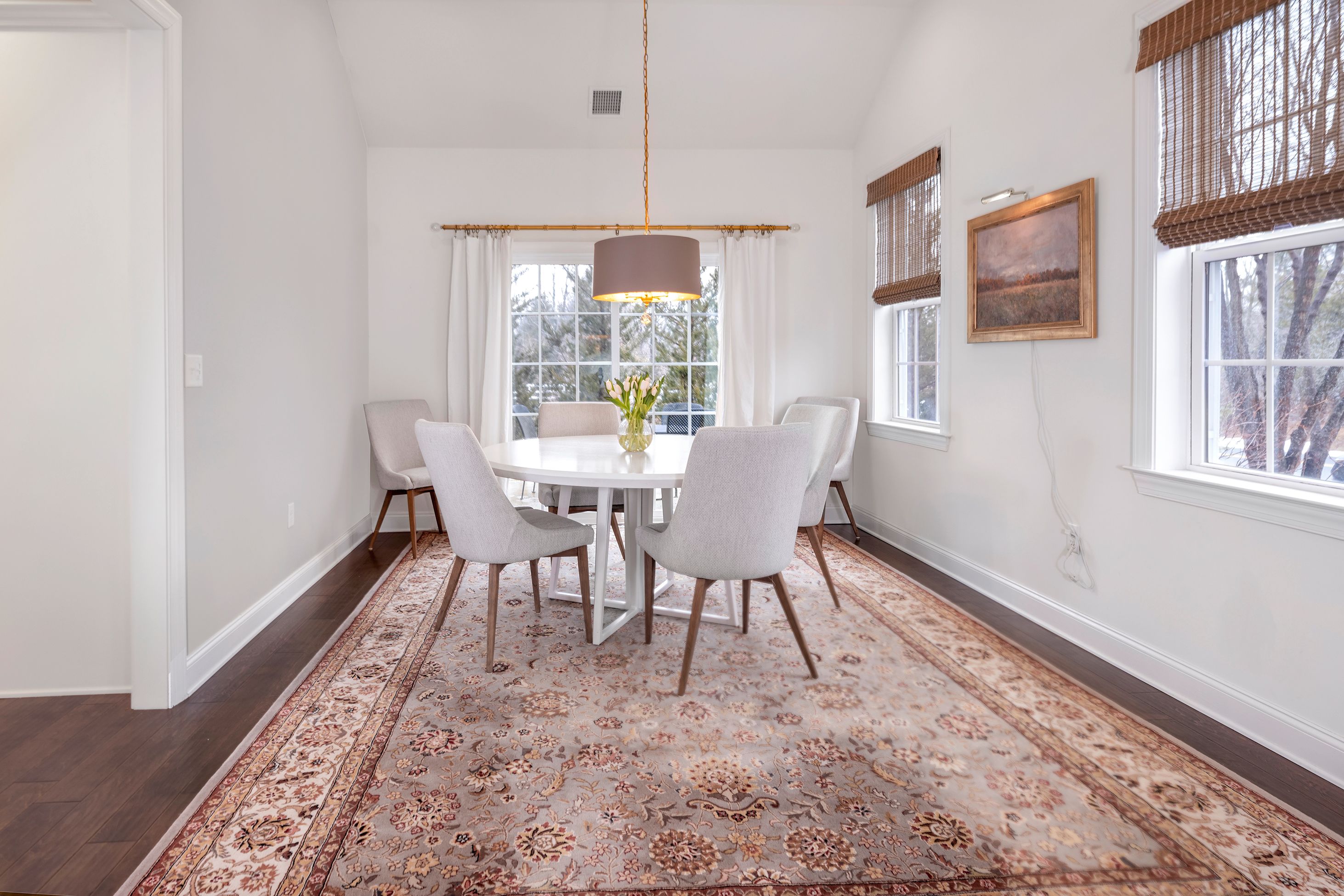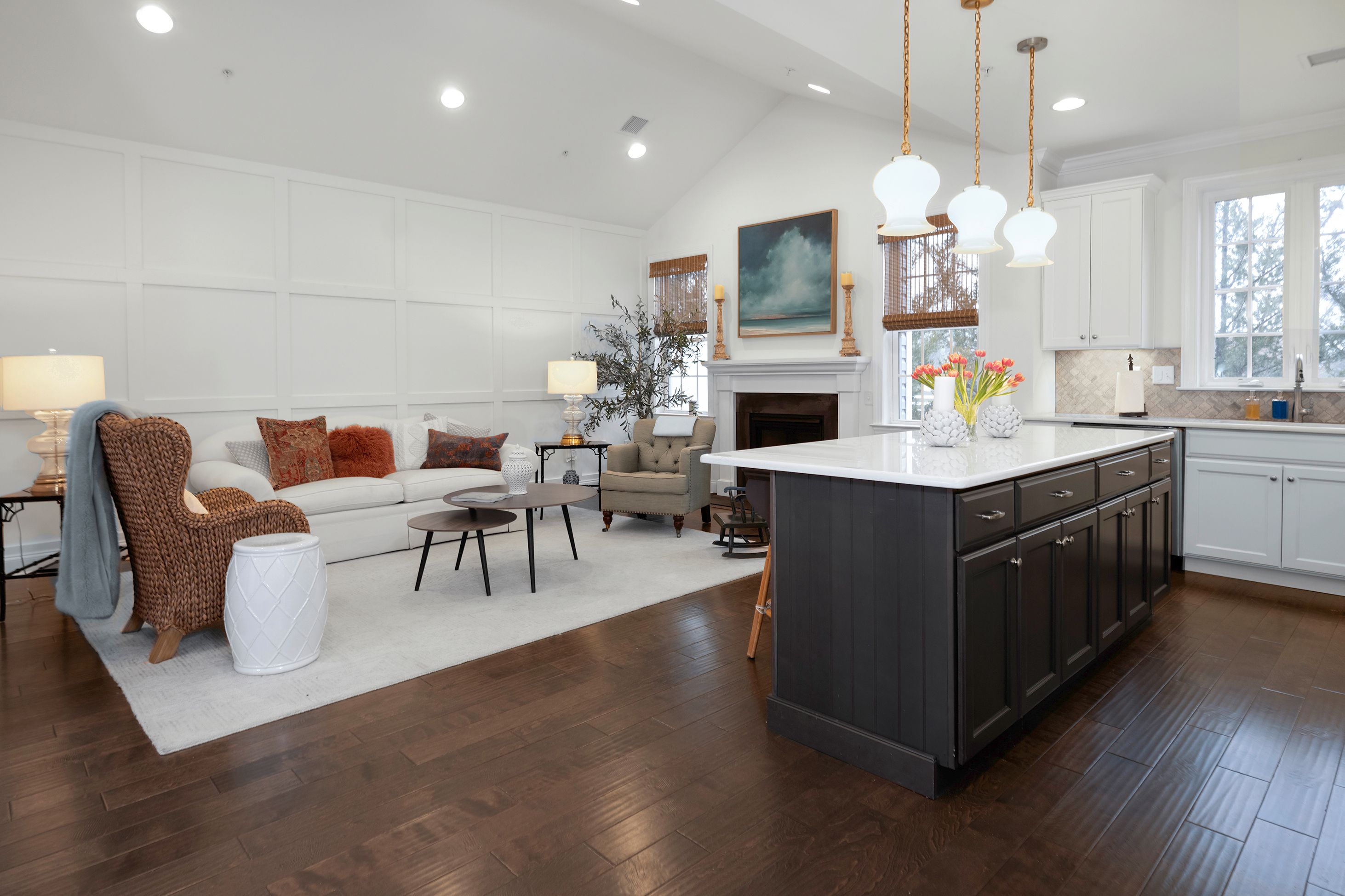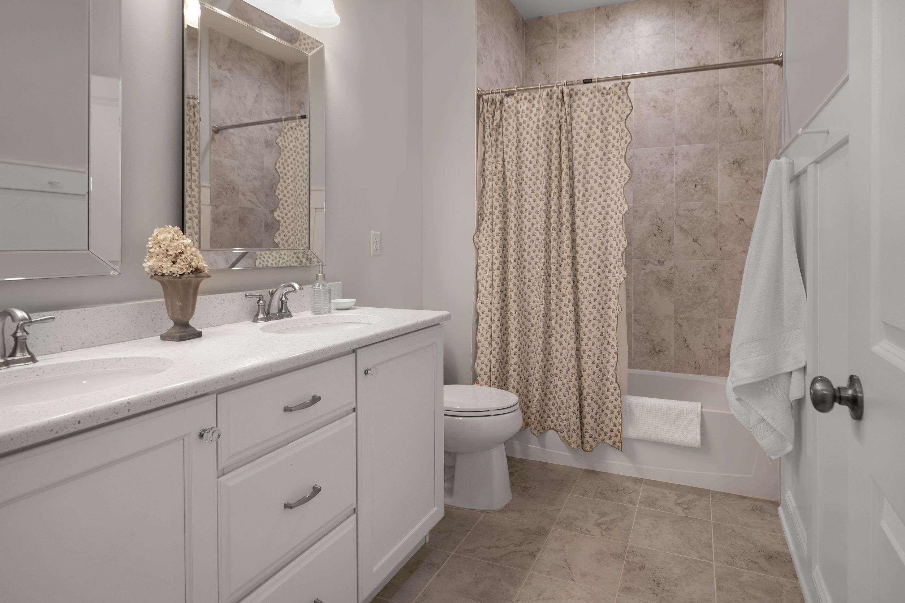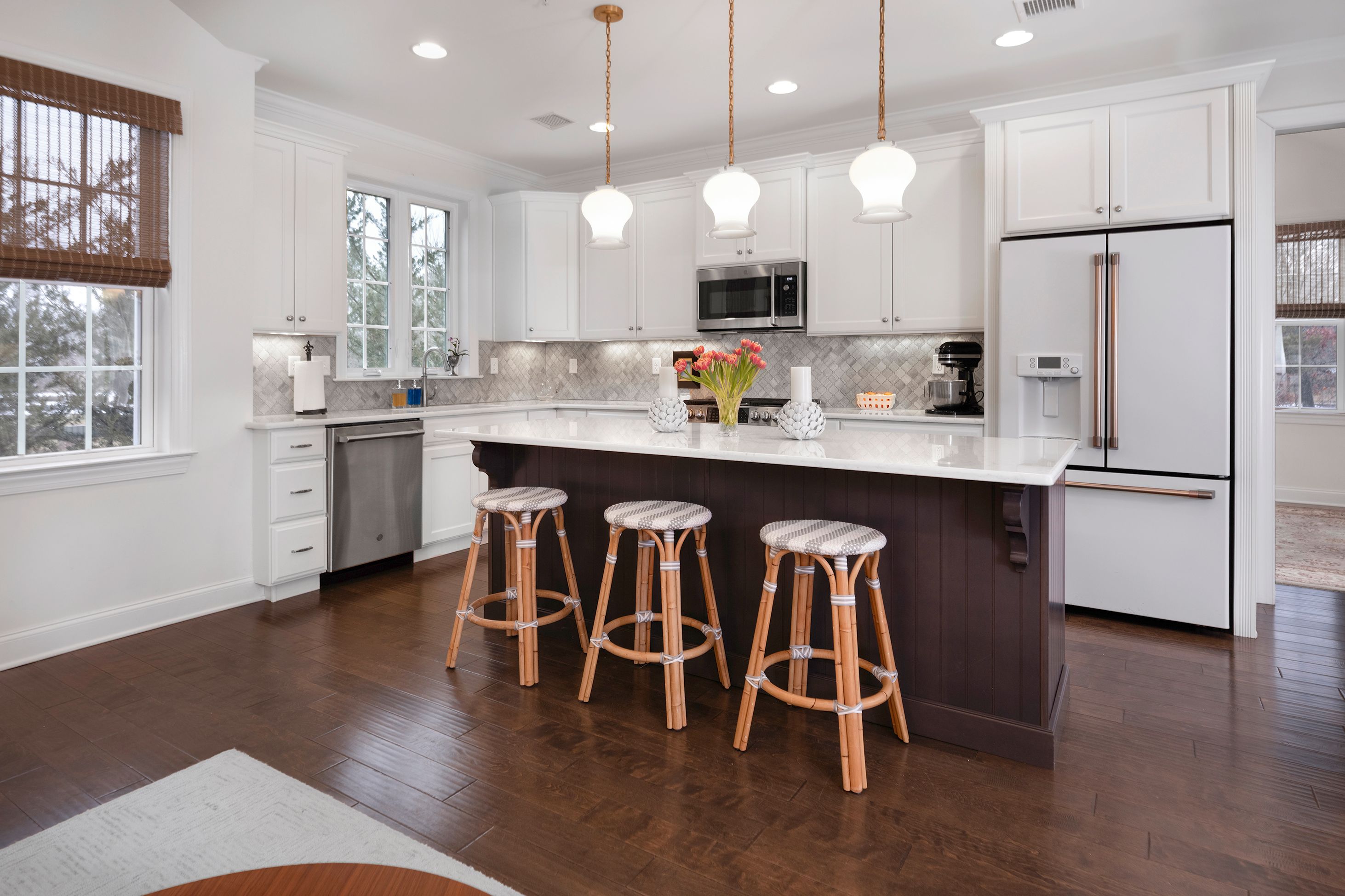 A rare end-unit offering in Heritage at Pennington, this sophisticated townhome pairs refined interiors with open-space views and a sidewalk that leads directly from the front door to Pennington’s beloved shops and cafés. Inside, find a fabulous home that begins with a home office/den behind French doors. The generously scaled dining room is designed for memorable gatherings, with sliding doors that open onto a patio with a dedicated gas line for grilling. The kitchen is urbane and beautifully integrated with the adjoining family room with a gas fireplace, creating a natural space for living and entertaining alike. A substantial quartz peninsula provides seating and prep space, complemented by attractive appliances and a clean, contemporary aesthetic that feels polished and inviting. The first-floor primary suite is enhanced by a striking picture-frame accent wall and an organized walk-in closet. The en suite bath is thoughtfully designed with backlit mirrors, a built-in chest between dual sinks, and an oversized glass shower that adds a spa-like touch. Practical comforts are seamlessly integrated into a laundry room and a powder room along the hallway leading to the insulated two-car garage, a hand-chosen upgrade that’s rare to find in this community. Upstairs, two spacious bedrooms each have a walk-in closet and share a well-appointed hall bathroom. A generous loft expands the living possibilities, easily serving as a media lounge, with storage thoughtfully positioned nearby. Refined, flexible, and ideally situated, this distinctive home offers an elevated lifestyle just under half a mile from Pennington’s heart.