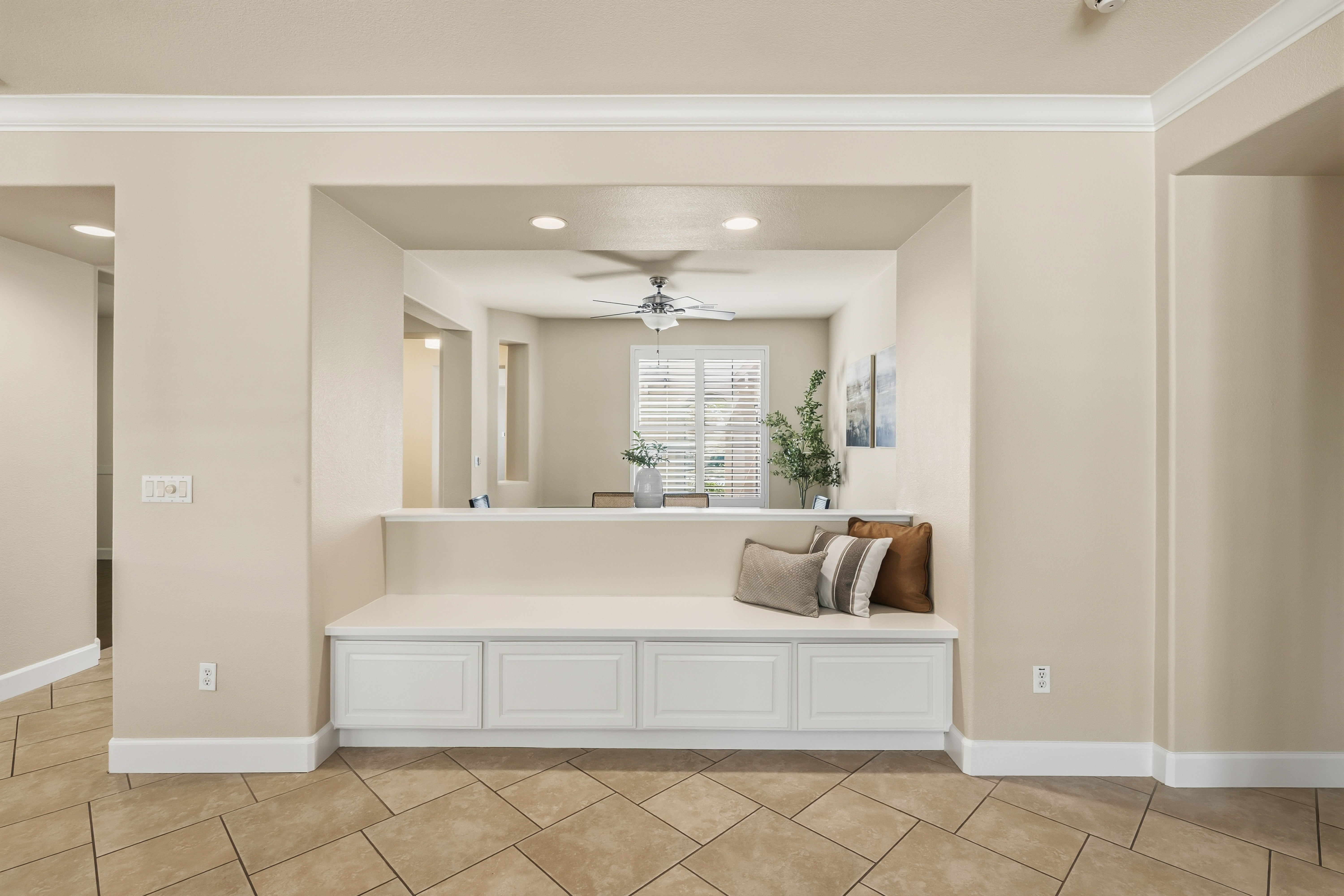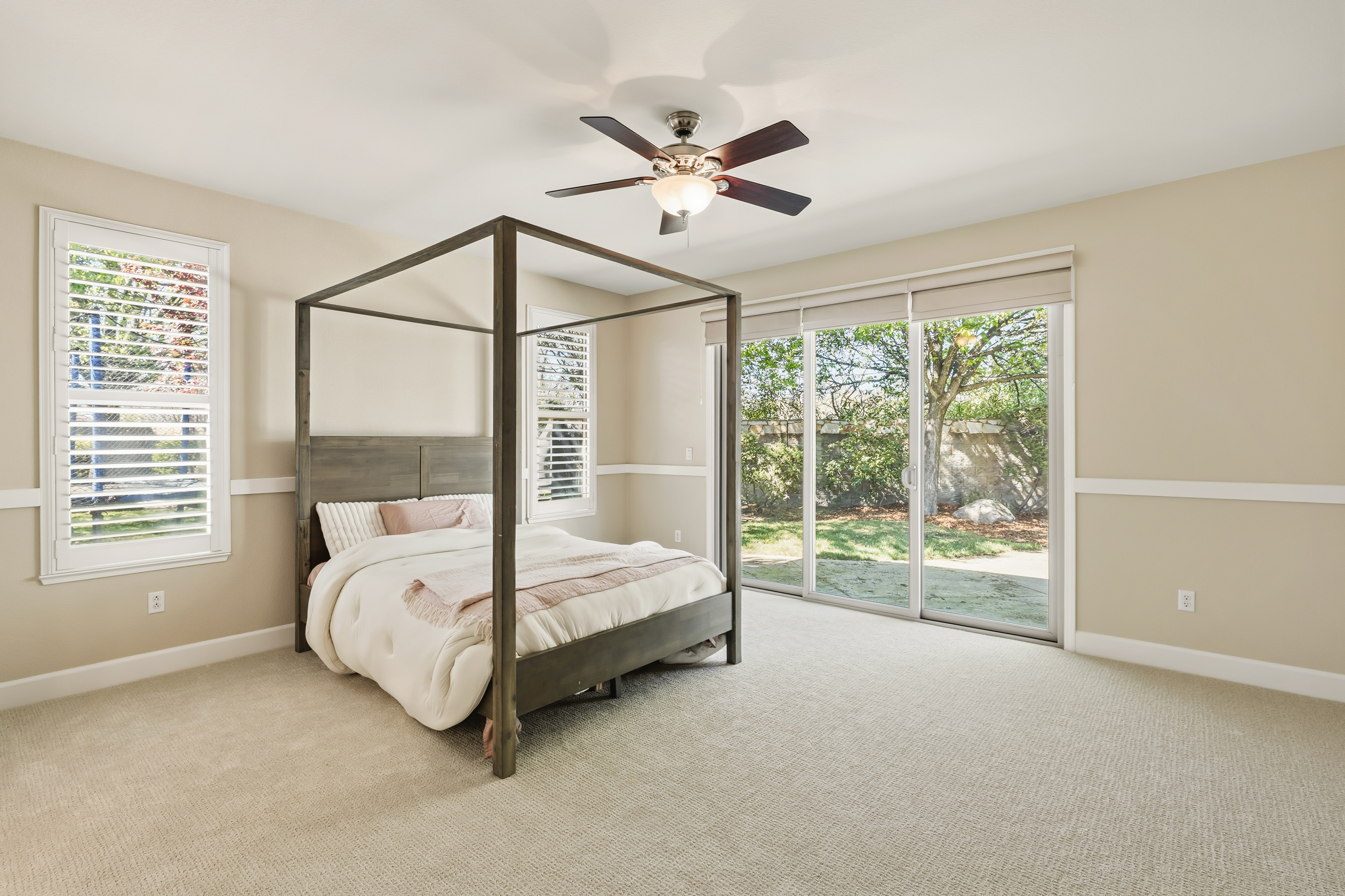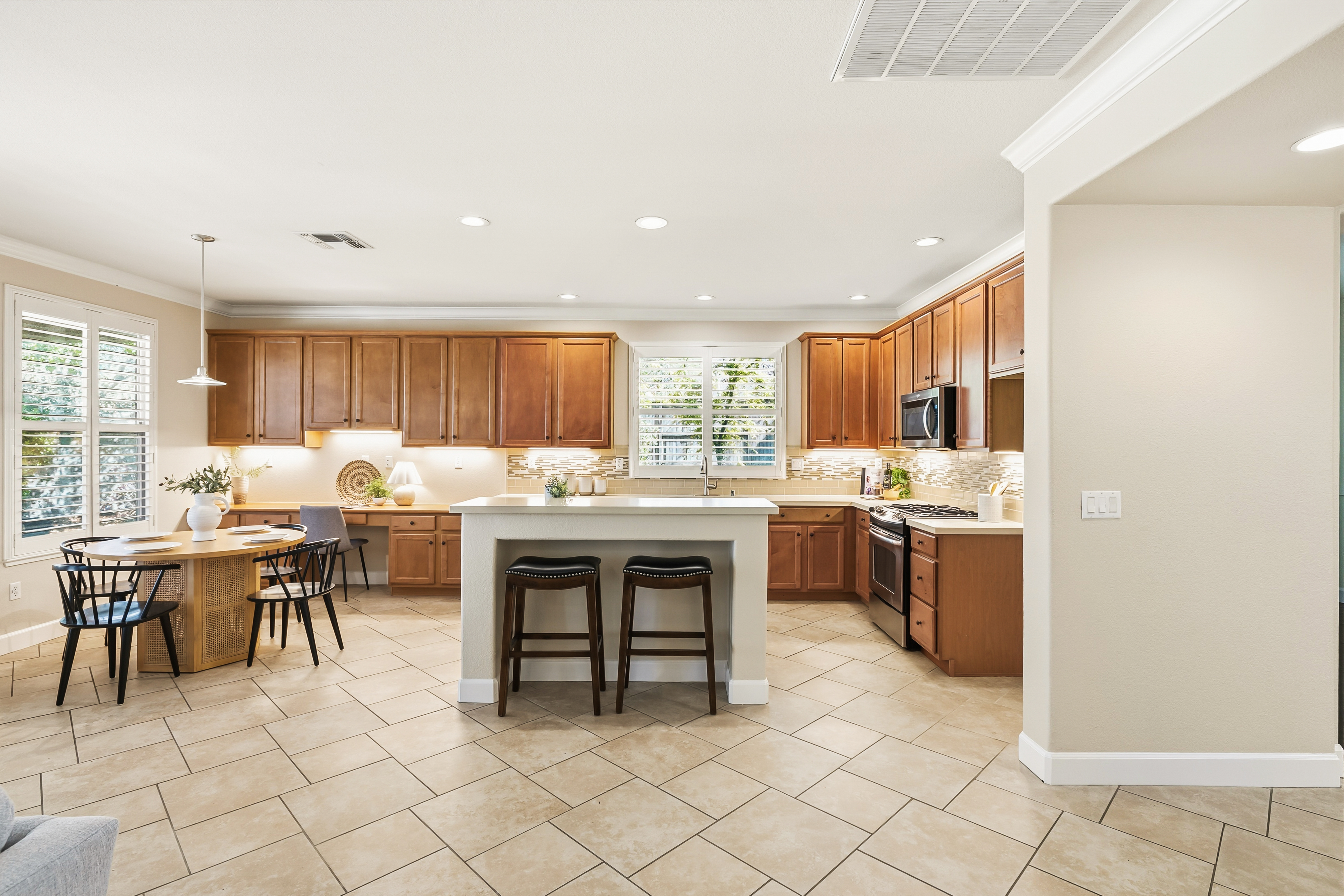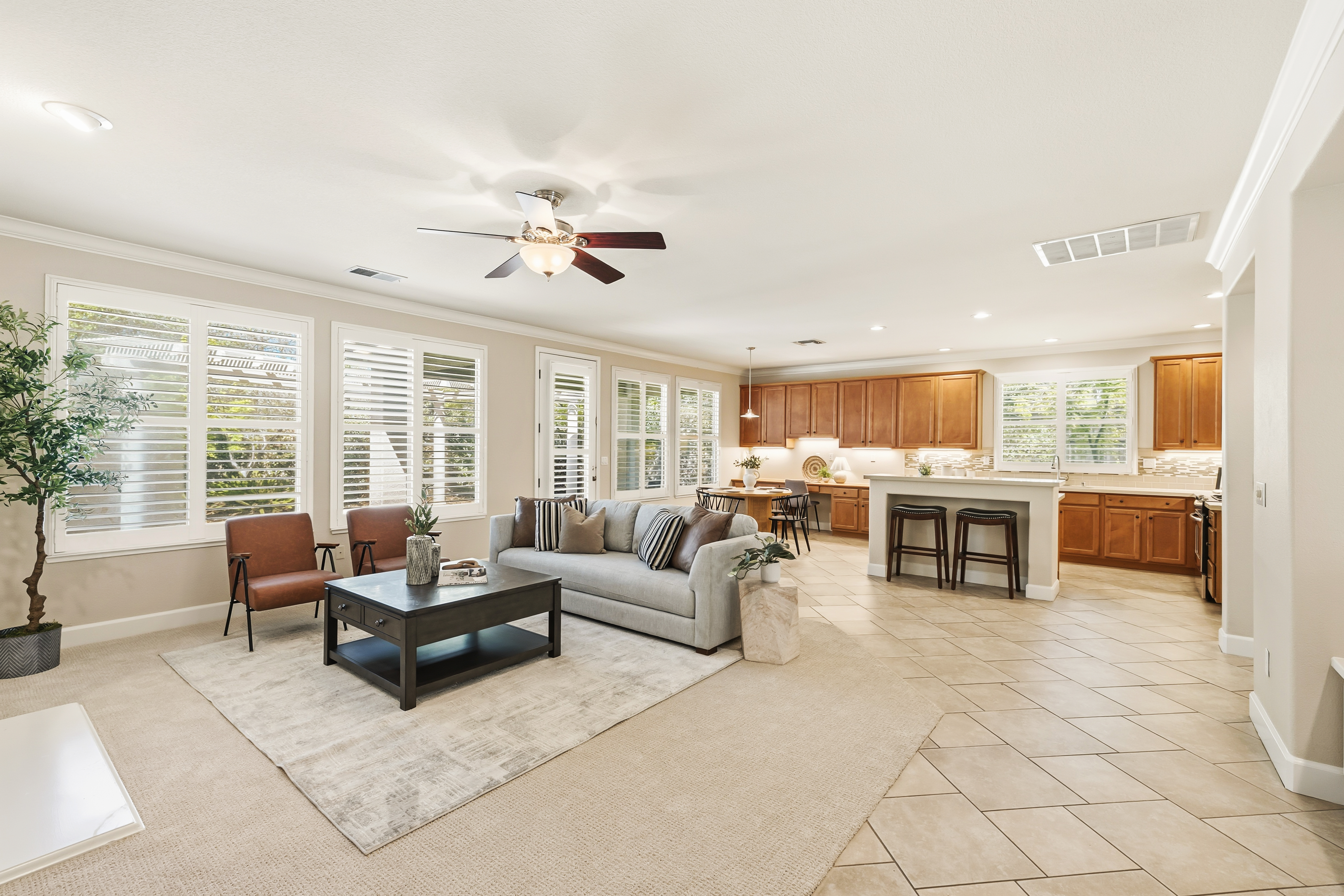 SINGLE STORY with a THREE-CAR garage! Located in the desirable gated community of Serrano, this 4-bedroom, 2.5-bathroom single-story home offers 2,580 square feet on a usable .29-acre lot. The kitchen/family room combination creates an open floor plan which is perfect for entertaining and everyday use. The home includes a spacious primary suite with access to the backyard through a private sliding glass door. The primary bath offers a large walk-in closet, soaking tub, separate shower, double sinks and an attached OFFICE with its own slider leading to the front COURTYARD perfect for a private workspace or retreat. Step outside to enjoy a large backyard with a covered patio and plenty of room for outdoor activities. Welcome home to 5132 Garlenda Drive!