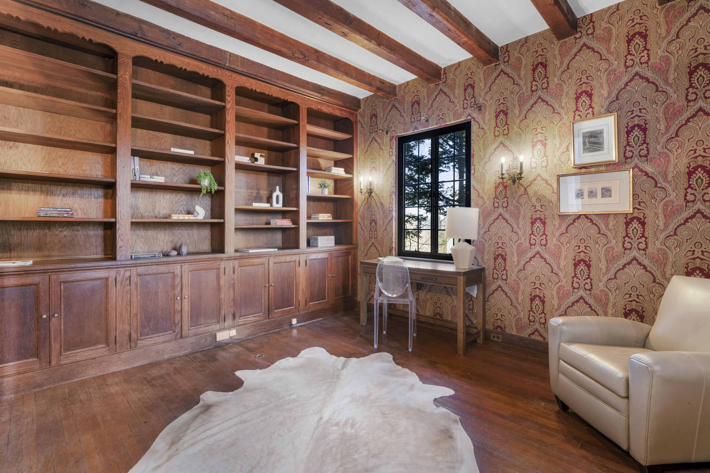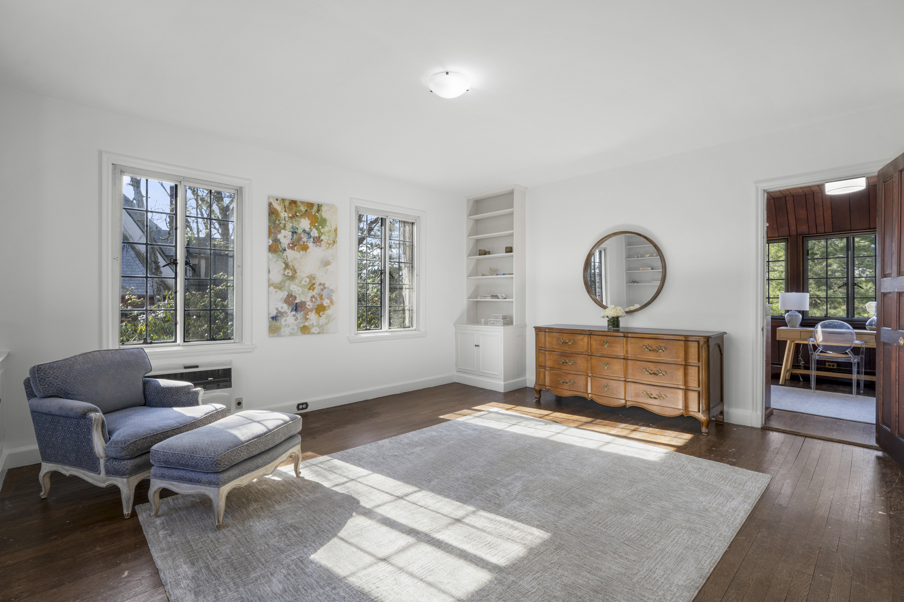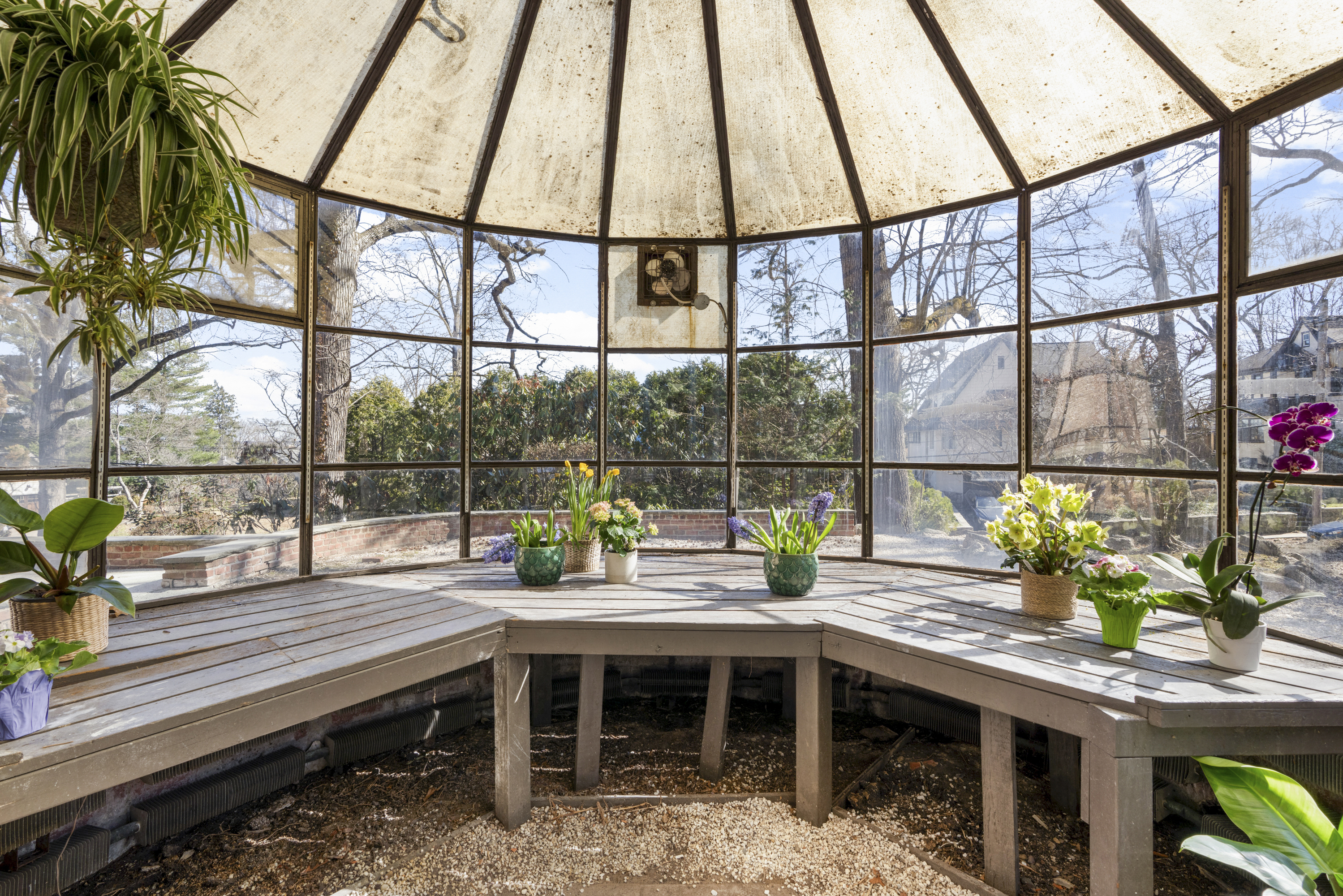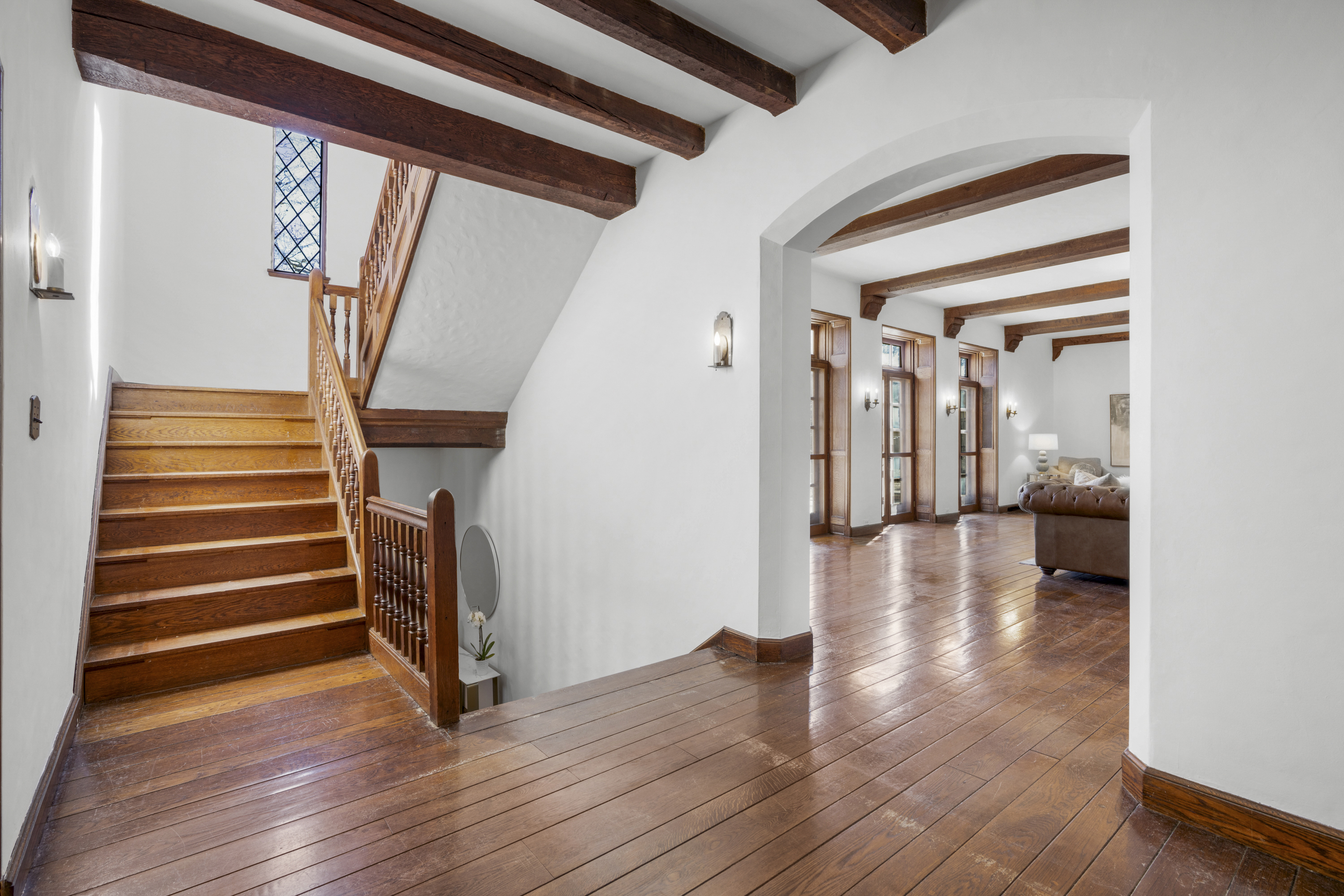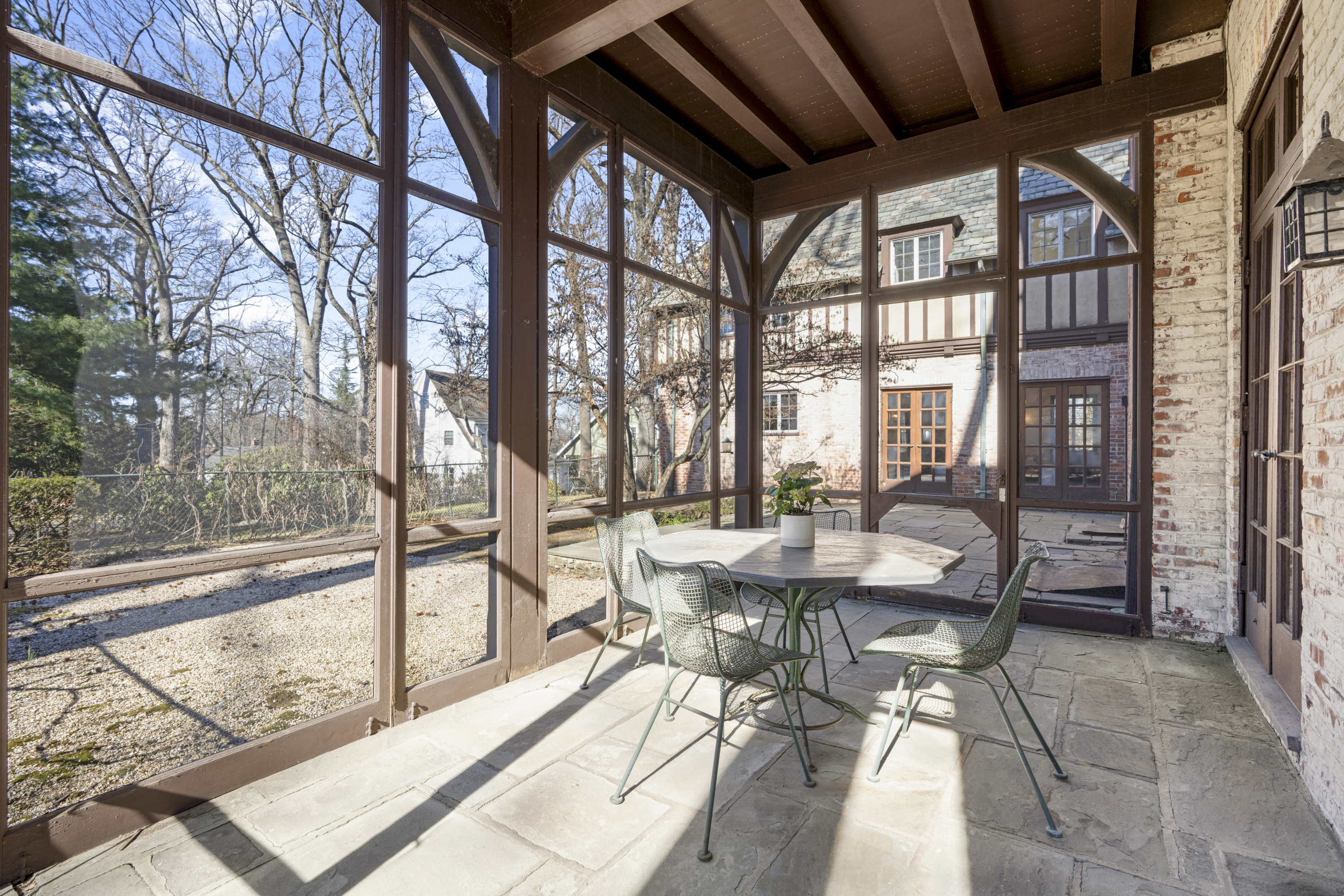 Like a castle on the hill. Embrace the spectacular beauty and incredible style of 60 Wildwood Road. This architectural gem is ideally located on a tree lined street a mere 0.8 miles from Larchmont Village, train station, restaurants, shops and the farmer's market. Enter the grand foyer and wow. As you enter the immense living room, you will be entranced. Be embraced by the amazing light streaming through the French doors open to a patio, an incredible fireplace and beautiful exposed beams. Continue on to the stunning solarium, a truly unique greenhouse and wonderful screened-in porch. Back to the entry foyer, we next enter a cozy library, perfect to cuddle up with your favorite book. We then continue to the huge, sun-drenched dining room. Imagine the parties and gatherings! Continue to the eat-in kitchen, perfectly outfitted and situated. From the kitchen, there is a set of stairs to the garage/driveway and a door to the outside to make unloading a breeze. Continue up the spectacular staircase lit by a spectacularly unique window - the style is unbeatable. The second floor delights. Enter the warm welcoming primary suite, complete with sitting room, walk-in closet, water view and primary en-suite bath. A lovely office space is adjacent to the primary sitting area. There are three additional generous bedrooms and two hall baths. Continue down the hall to a large flexible living space which could be a media room, a playroom, or just a space to hang out. We continue up to the third floor, with a large storage closet, a full bath, and a bedroom with tons of storage space. Two additional rooms complete the third floor. Down to the lower level, we find a light filled room, which could be a second family room or professional office with separate outdoor entrance. A powder room, finished storage and large two-car garage complete this level. And the outdoor is sure to delight - located on two lots, this home has almost an acre of property. It includes an additional taxable lot open all the way to Ridge Road. The plentiful outdoor patios and screened-in porch, the beautiful yard invite you to enjoy the outdoors. Come home to this masterpiece and all its timeless beauty.