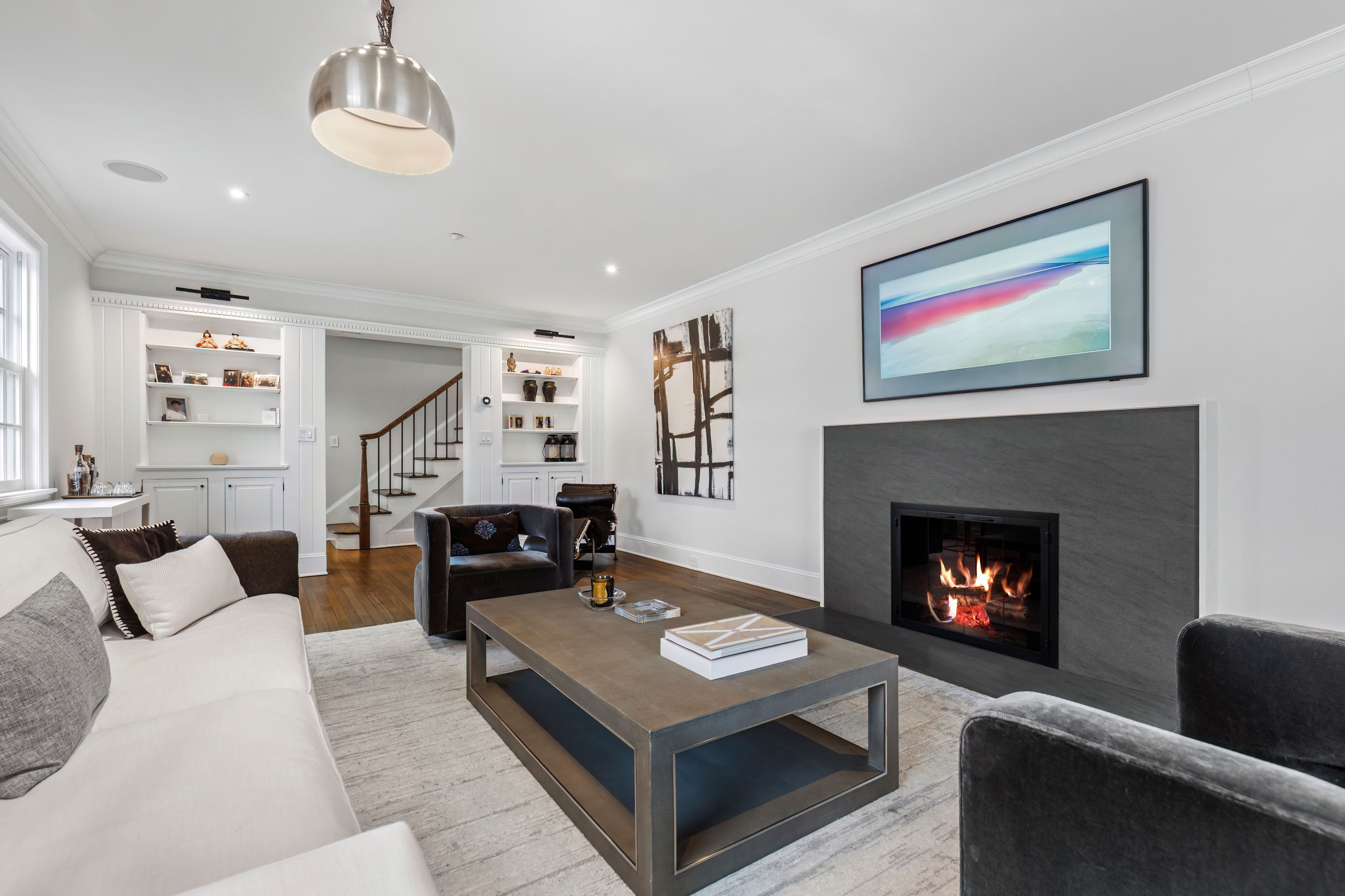 The finished Lower Level provides multiple, versatile spaces and ample storage with access to the 2-car tandem garage with EV charger. A fully fenced backyard features space for entertaining, play, a fire pit area, and a storage shed, all complemented by mature landscaping and a 7-zone irrigation system. Additional highlights include Marvin windows, central vacuum, multi-zone heating and cooling with Nest controls, whole-home surround sound, Lutron lighting and generator hookup.