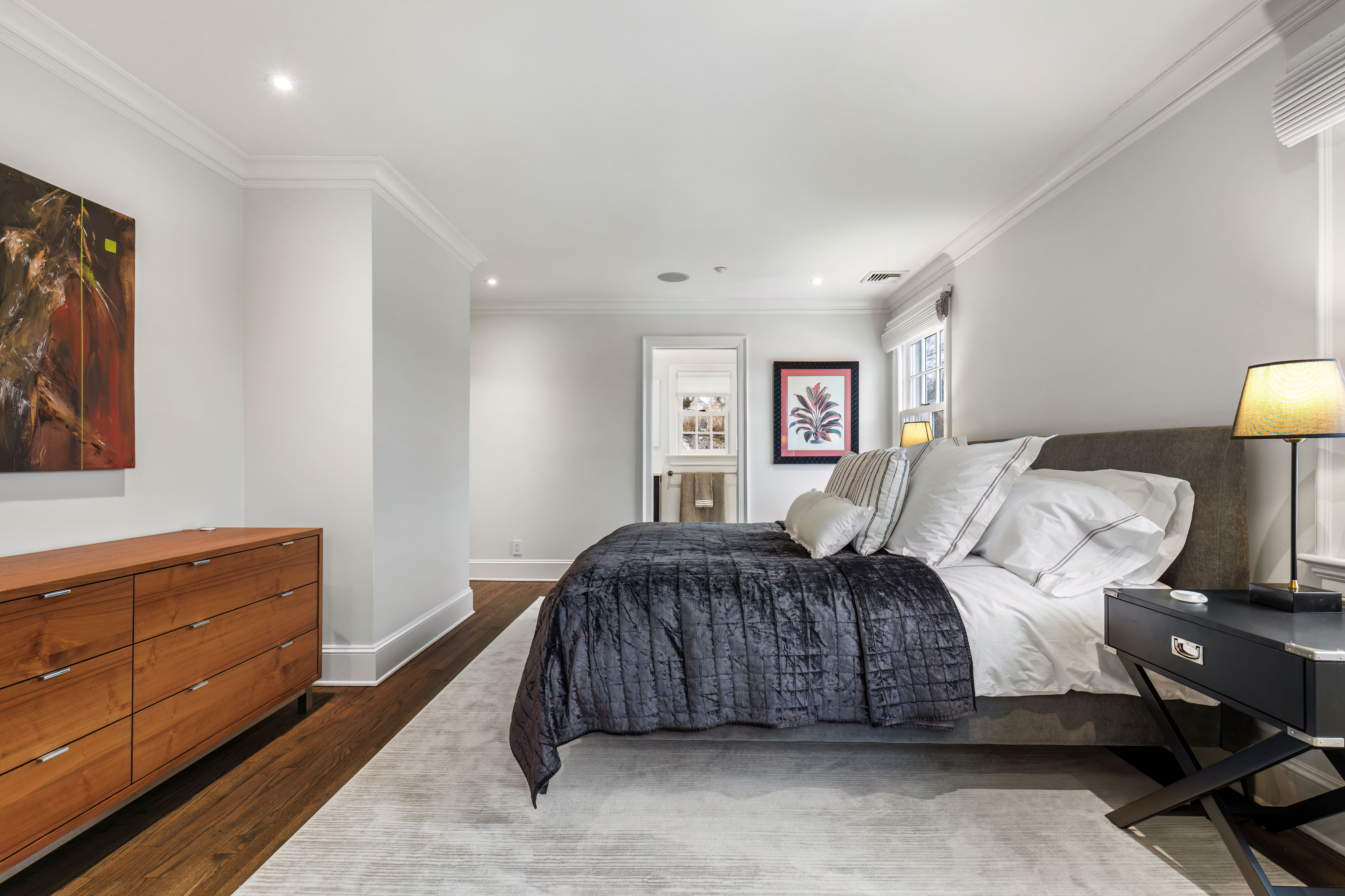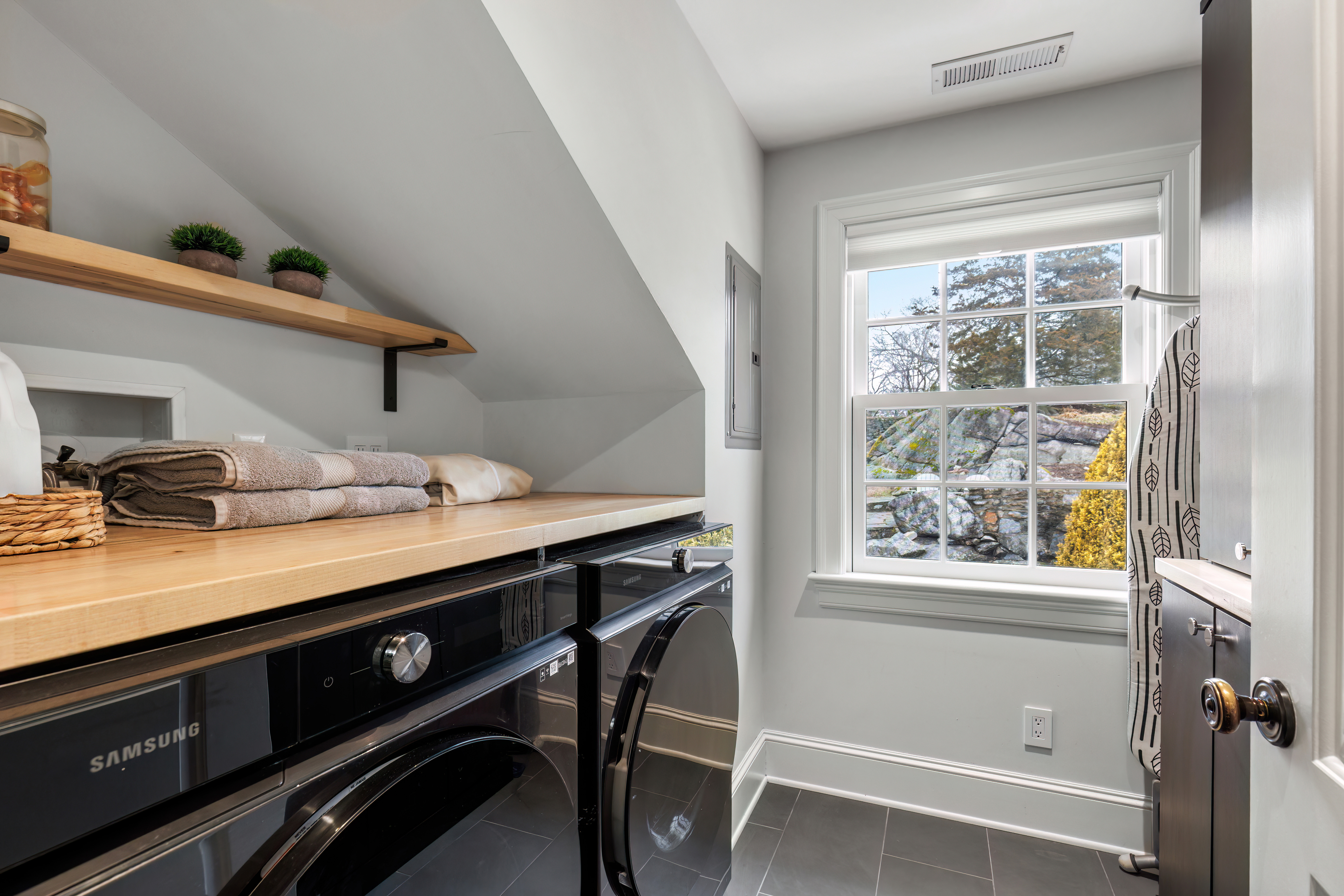 Upstairs, the primary suite offers a peaceful retreat with 2 generous walk-in closets and a well-appointed ensuite bath. Three additional bedrooms provide ample space for family, guests, or work-from-home needs and two renovated hall bathrooms. A well-designed laundry room with counter space, sink & storage complete this level.