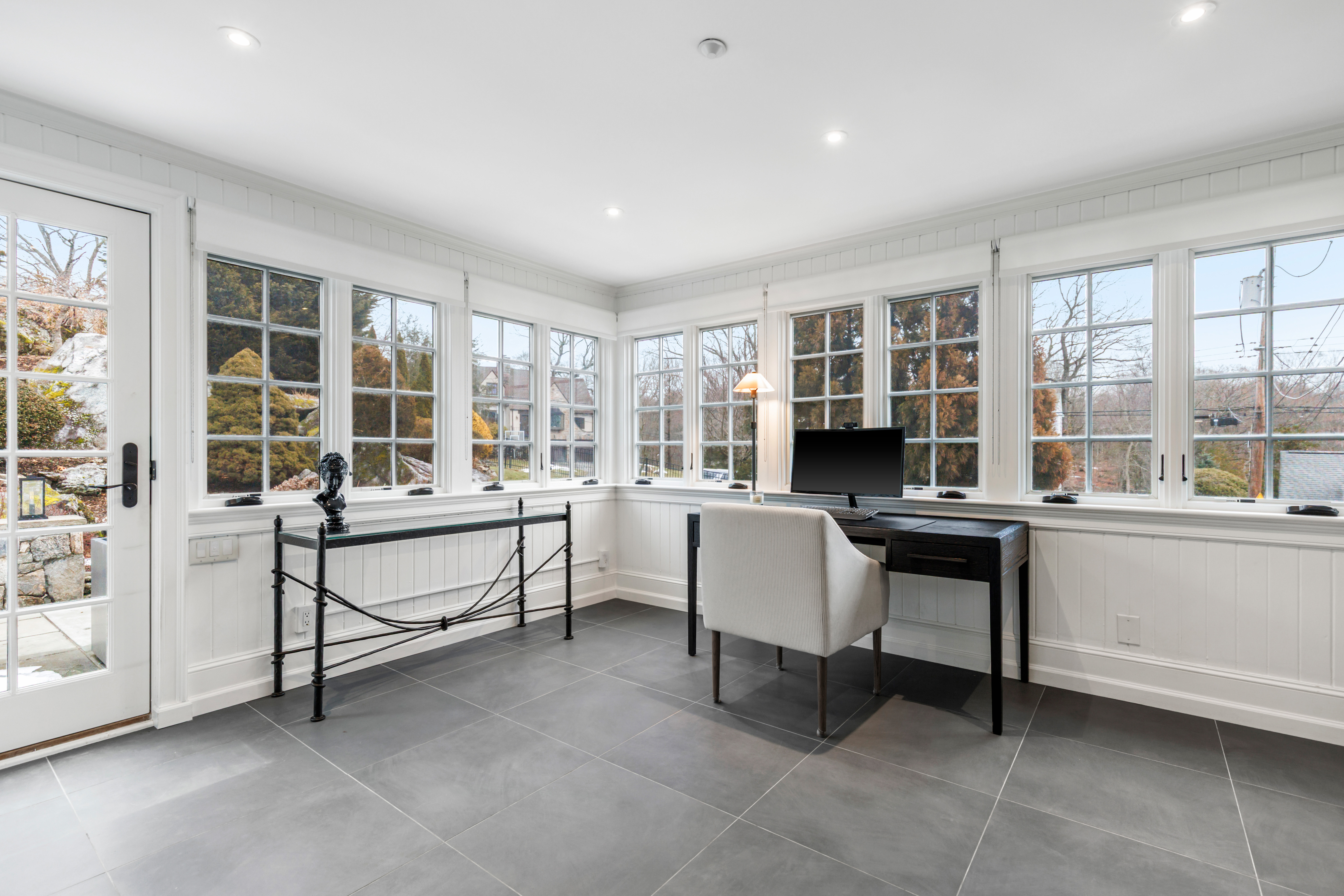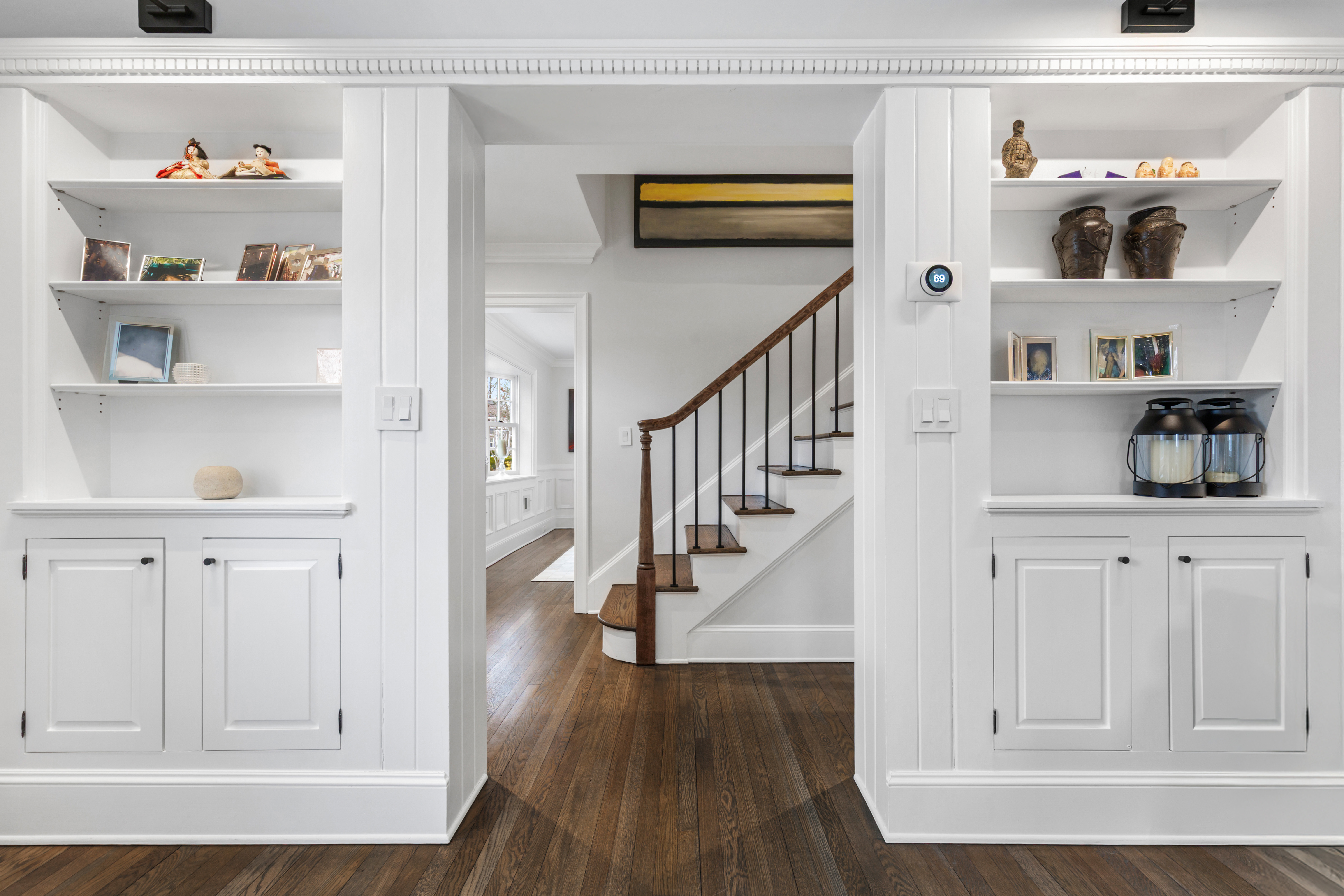 The main level showcases elegant living and dining rooms, a great room with an open concept spacious renovated chef's kitchen with high-end appliances, large center island with counter seating & living/breakfast area with french door access to the backyard & bluestone patio complete with a built-in grill and gas line. A versatile & sun-filled den/playroom, office with built-in desks & cabinetry, powder room and mudroom area/storage complete this level.