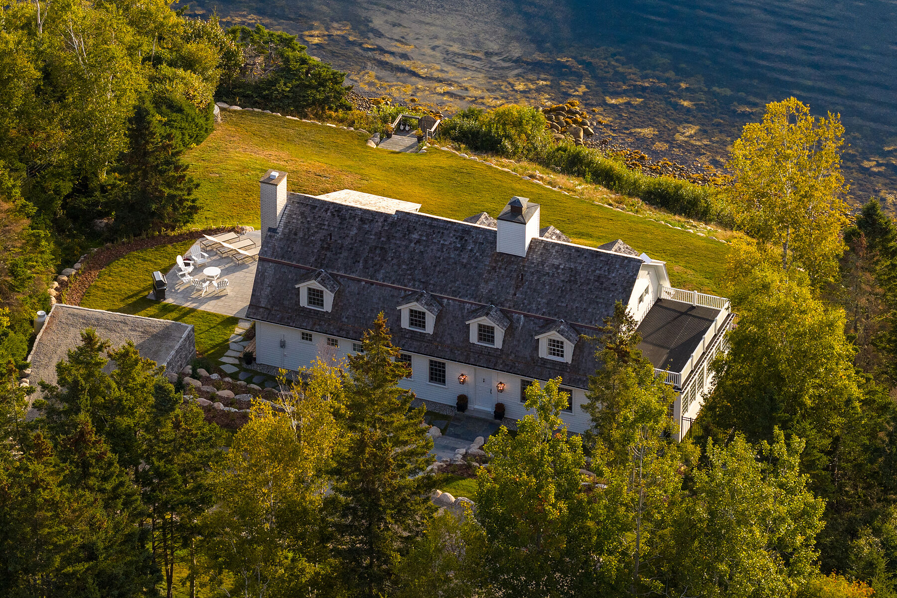15 Fredas Point is more than a residence, it is an embodiment of coastal craftsmanship, elevated living, and timeless design. Perched on 1.2 acres above Chester’s Front Harbour, this private, gated estate offers 150 feet of direct ocean frontage and sweeping views of Quaker, Meisner’s, and Saddle Islands. A true Chester original, the home has been thoughtfully restored, seamlessly blending heritage charm with modern sophistication. A three-car garage with a roughed-in suite crowns the property, while a winding driveway passes through illuminated, manicured grounds that create a tranquil, resort-like ambience. Near the water, a private seating area invites quiet reflection, flowing naturally to a shared wharf that offers effortless harbour access. Inside, exposed beams, softwood floors, and wrought iron accents honour the home’s 19th-century origins, complemented by a new cedar roof, designer lighting, and fully renovated baths. The kitchen’s custom cabinetry conceals integrated appliances for a refined, cohesive aesthetic, while the primary suite captures sweeping harbour views, offering a luxurious ensuite and a serene sitting area. A property of rare distinction, 15 Fredas Point stands as a testament to Chester’s enduring beauty and the art of coastal living.