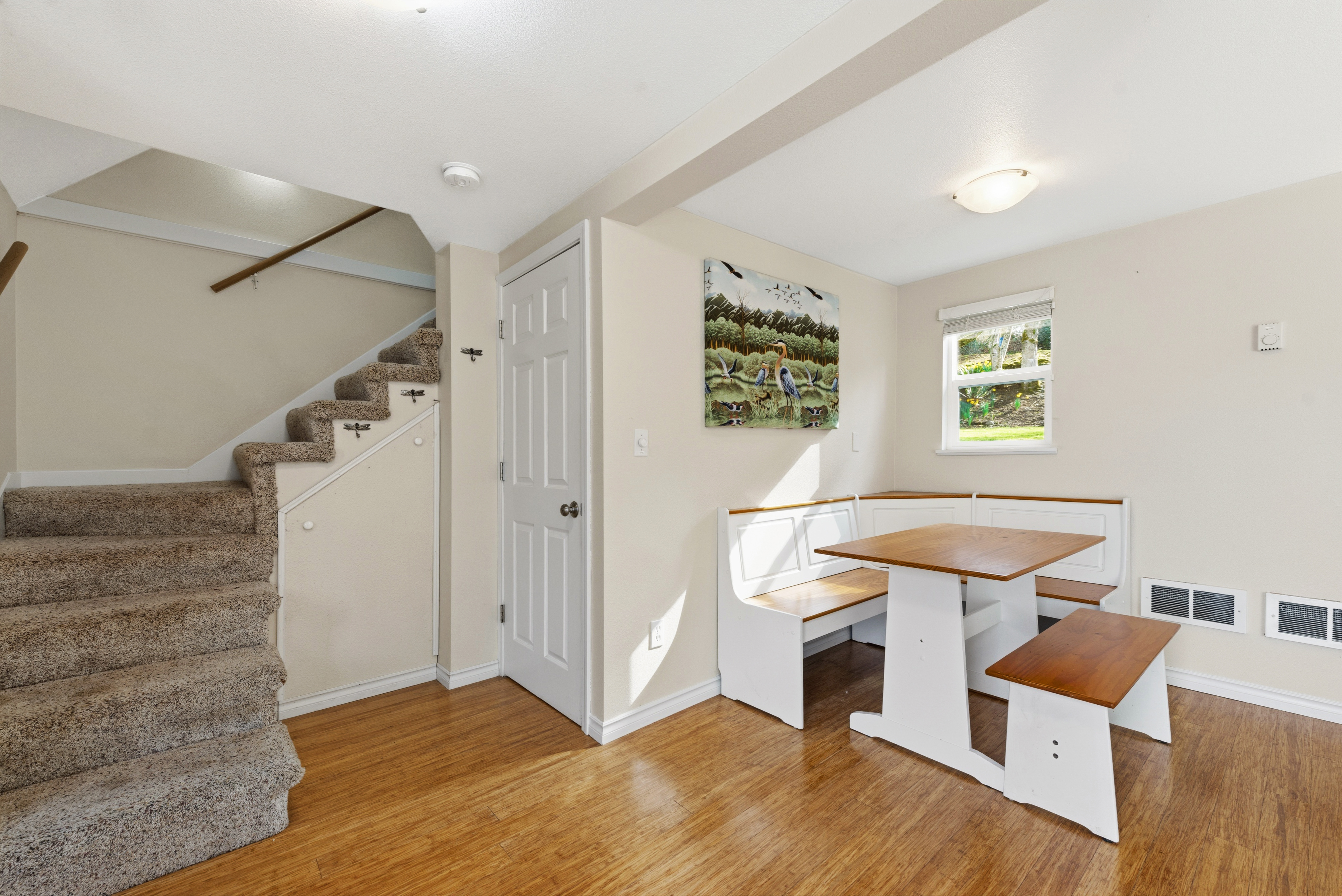 Discover the perfect west-side Vashon Island getaway in this charming 1-bedroom waterfront cabin, set on 90 feet of coveted Colvos Passage shoreline. Enjoy a true maritime lifestyle with your own davit, moorage, and endless opportunities for boating, crabbing, fishing, and beachcombing right from your front yard. This home features bamboo flooring, heated bathroom floors, newer appliances, Hardi-plank siding, and a durable metal roof. The airy upper-level bedroom offers cooling A/C and serene views, while the expansive wraparound deck provides exceptional outdoor living and space to gather. An additional bunkhouse and an outbuilding with a workbench create flexibility for guests, hobbies, and storage. Whether you're seeking a weekend retreat or a simple island escape, this is your chance to experience the magic of Colvos Passage—quiet mornings, sparkling sunsets, and the peaceful rhythm of the Sound. Come make this your waterfront sanctuary.